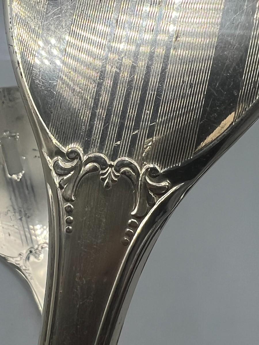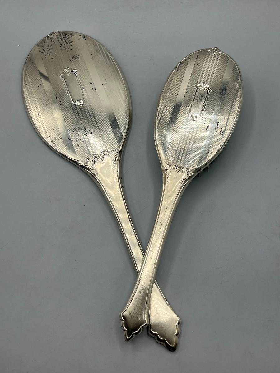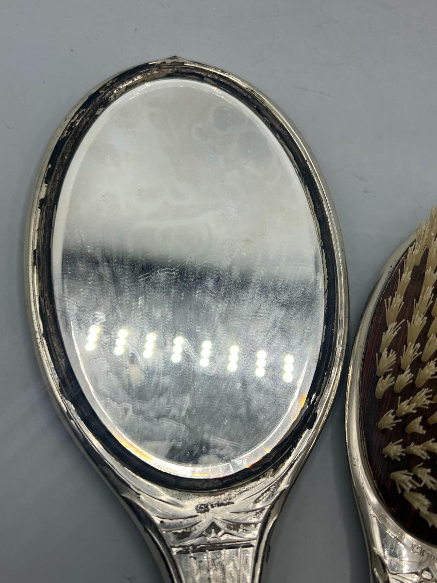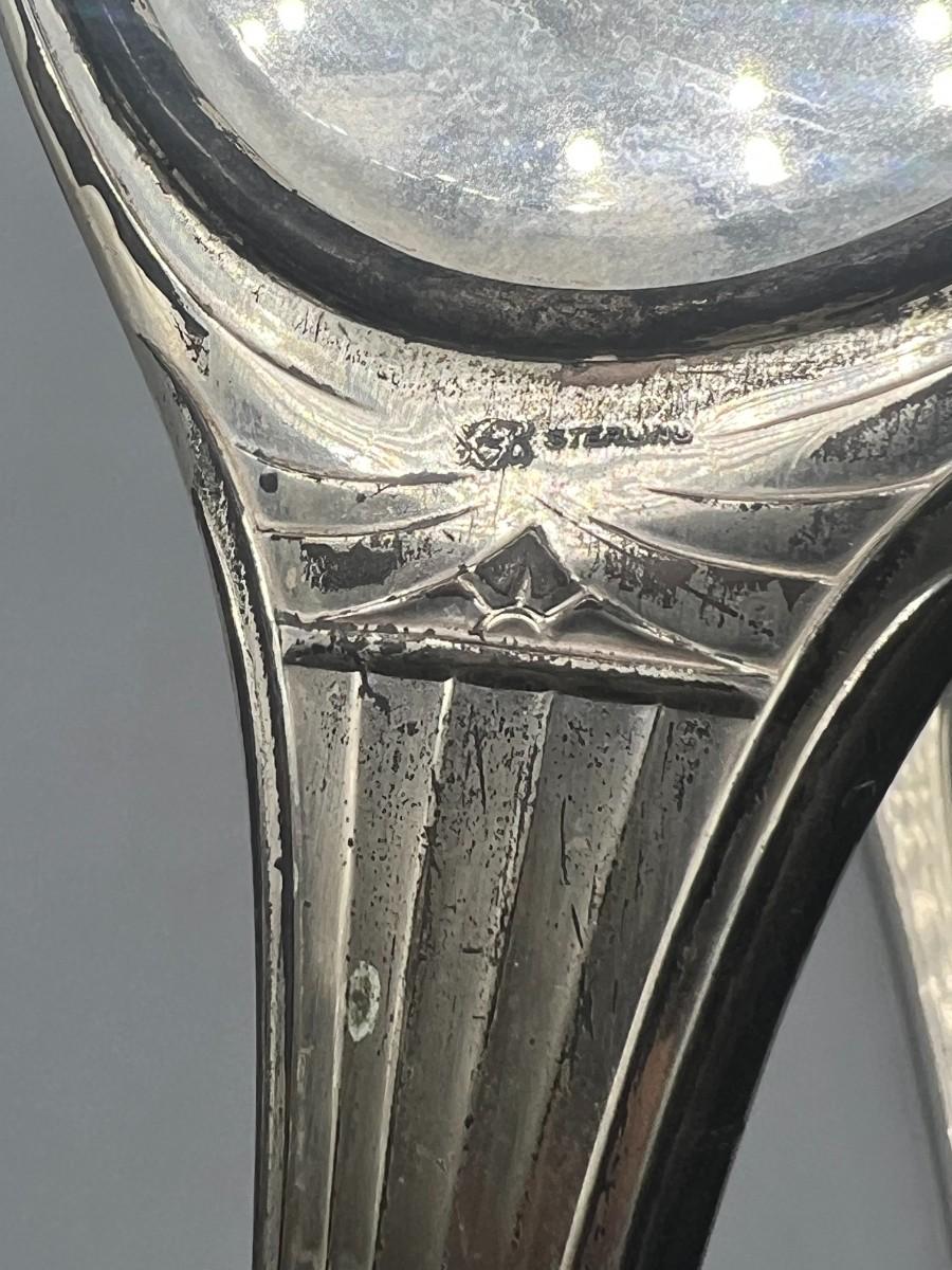 Vintage SLB Sterling Silver Art Deco Mid Century Makeup Hand Mirror & Brush