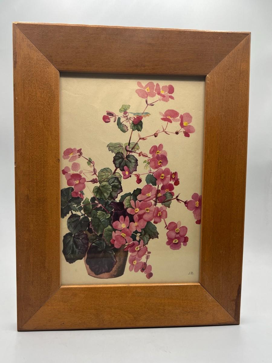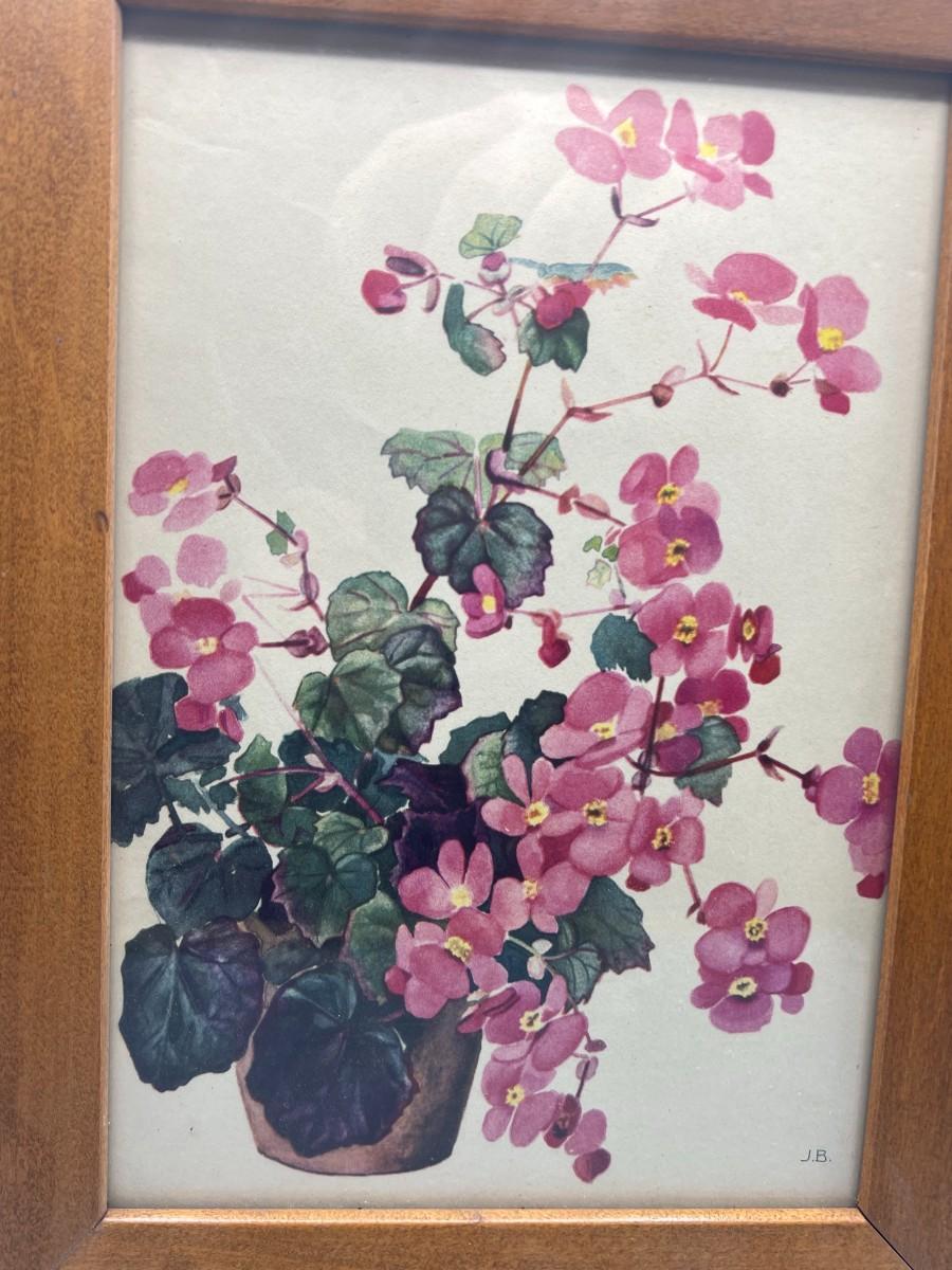 Vintage Framed Botanical Print Begonia Hybr. Mrs. J.A. Peterson
