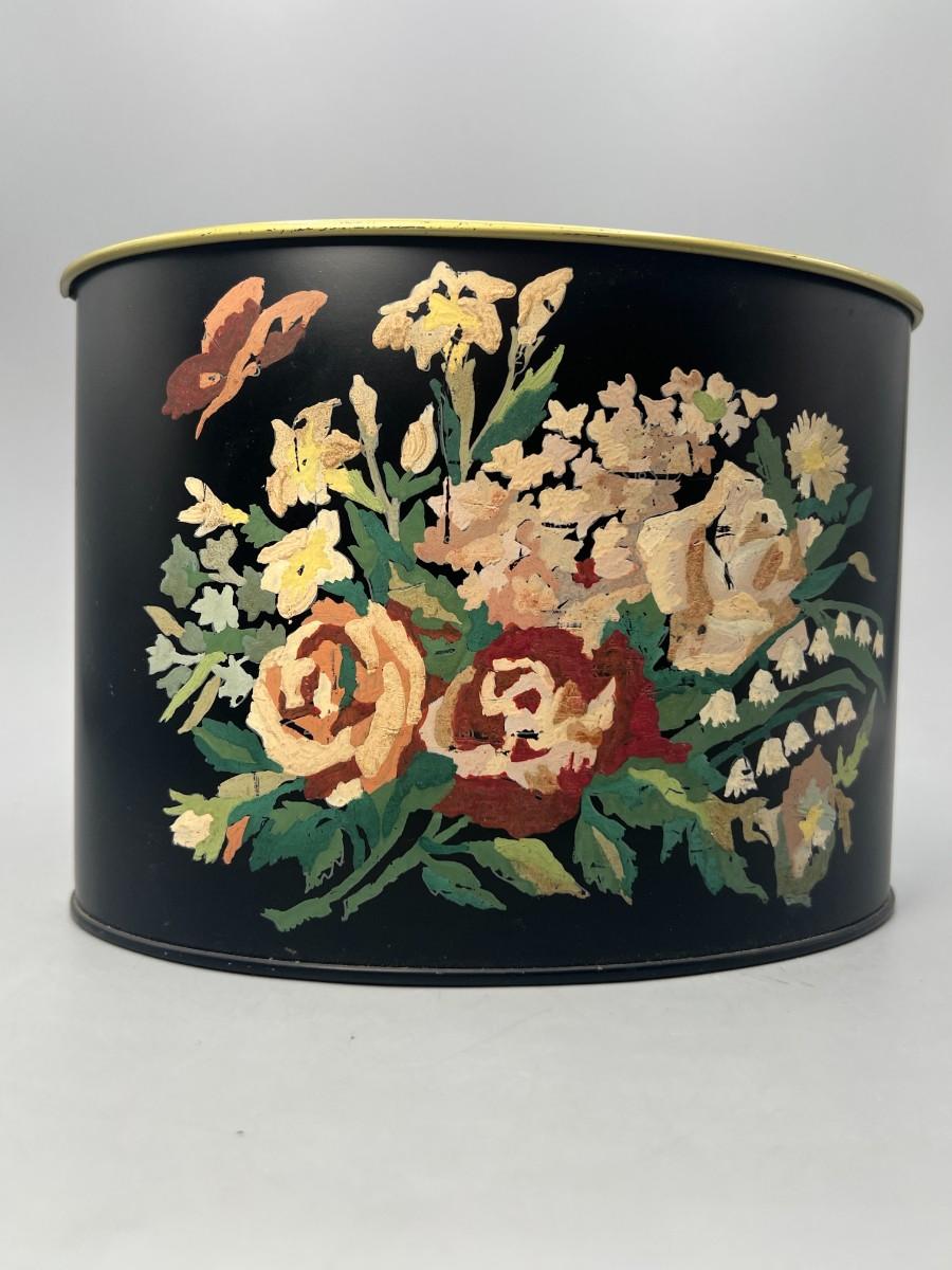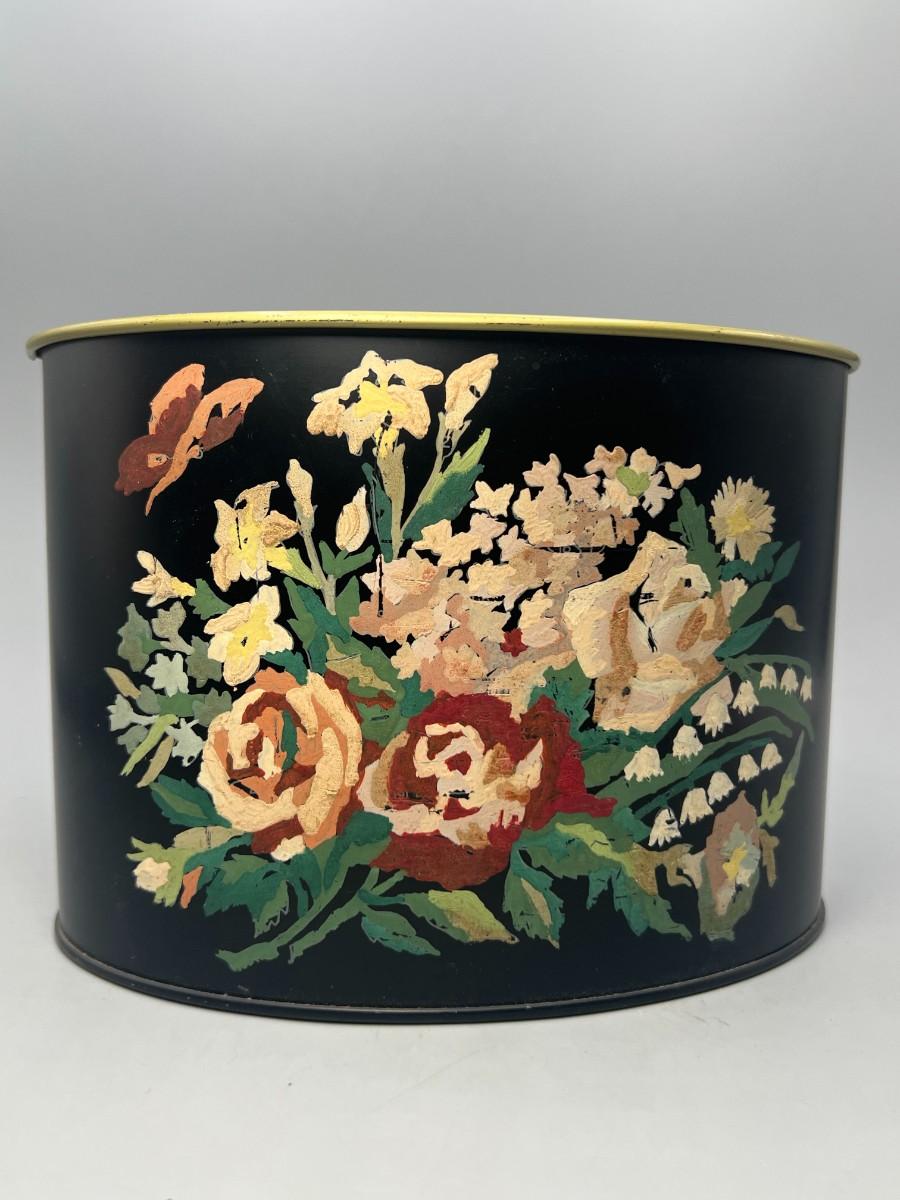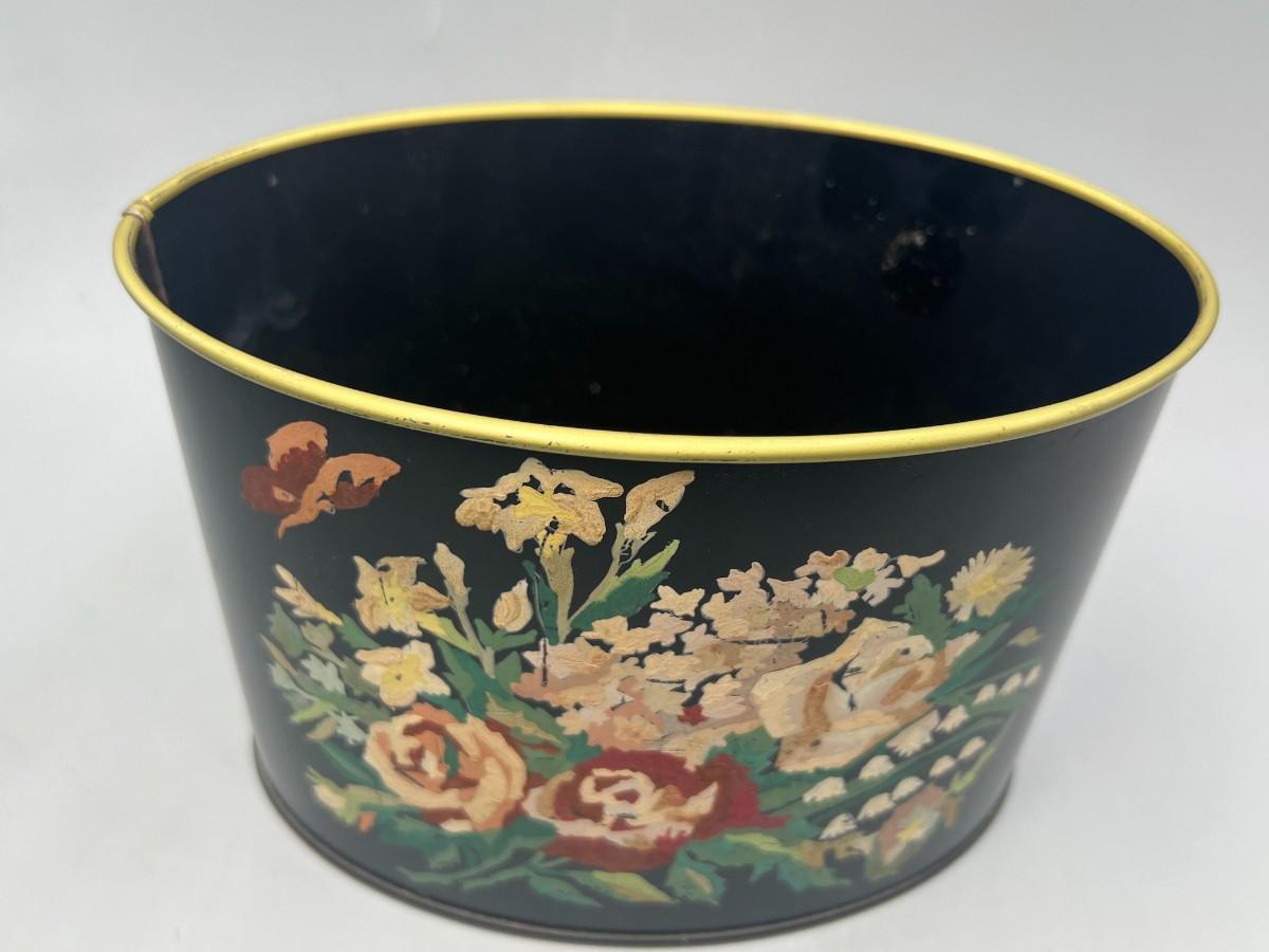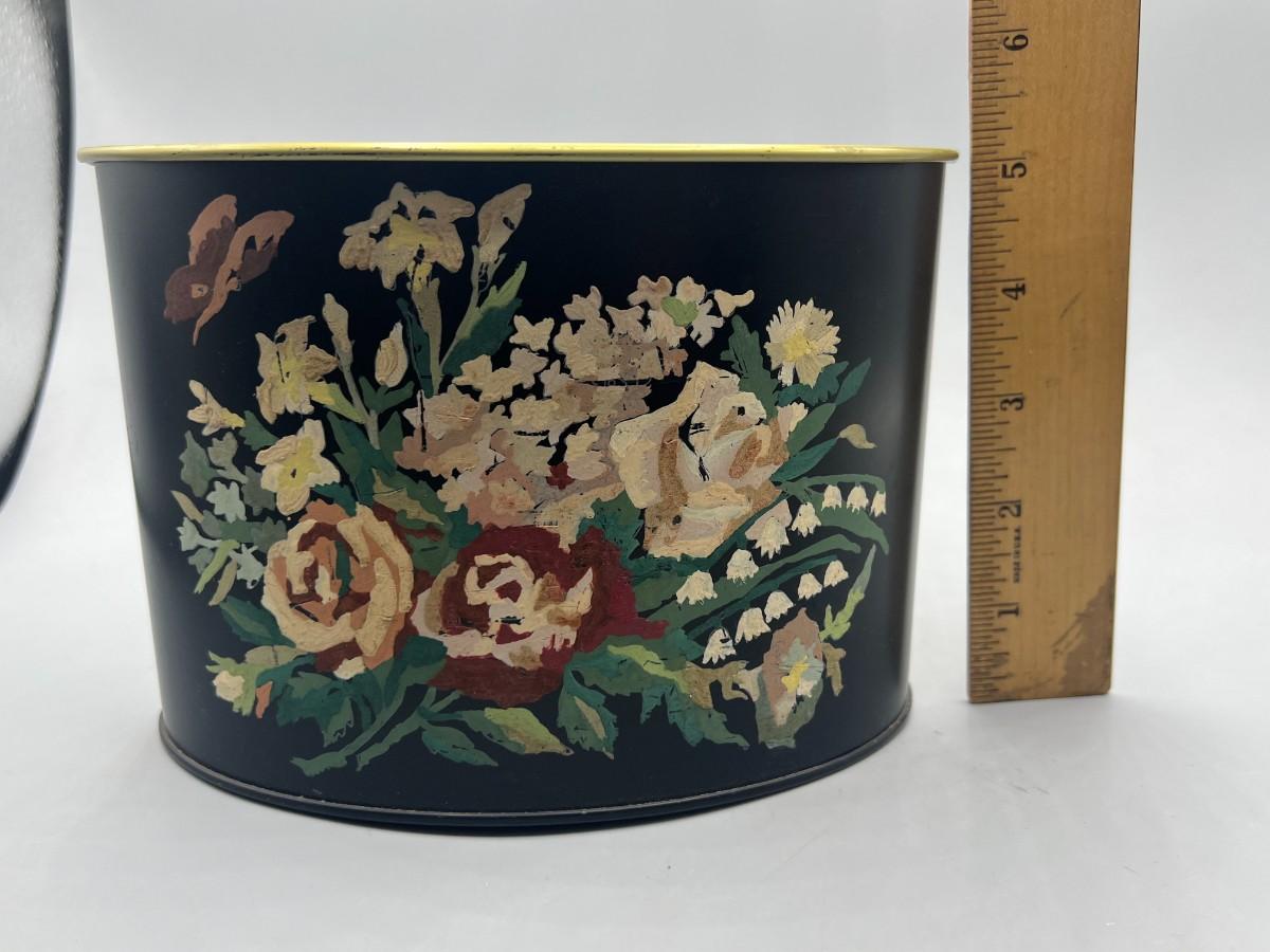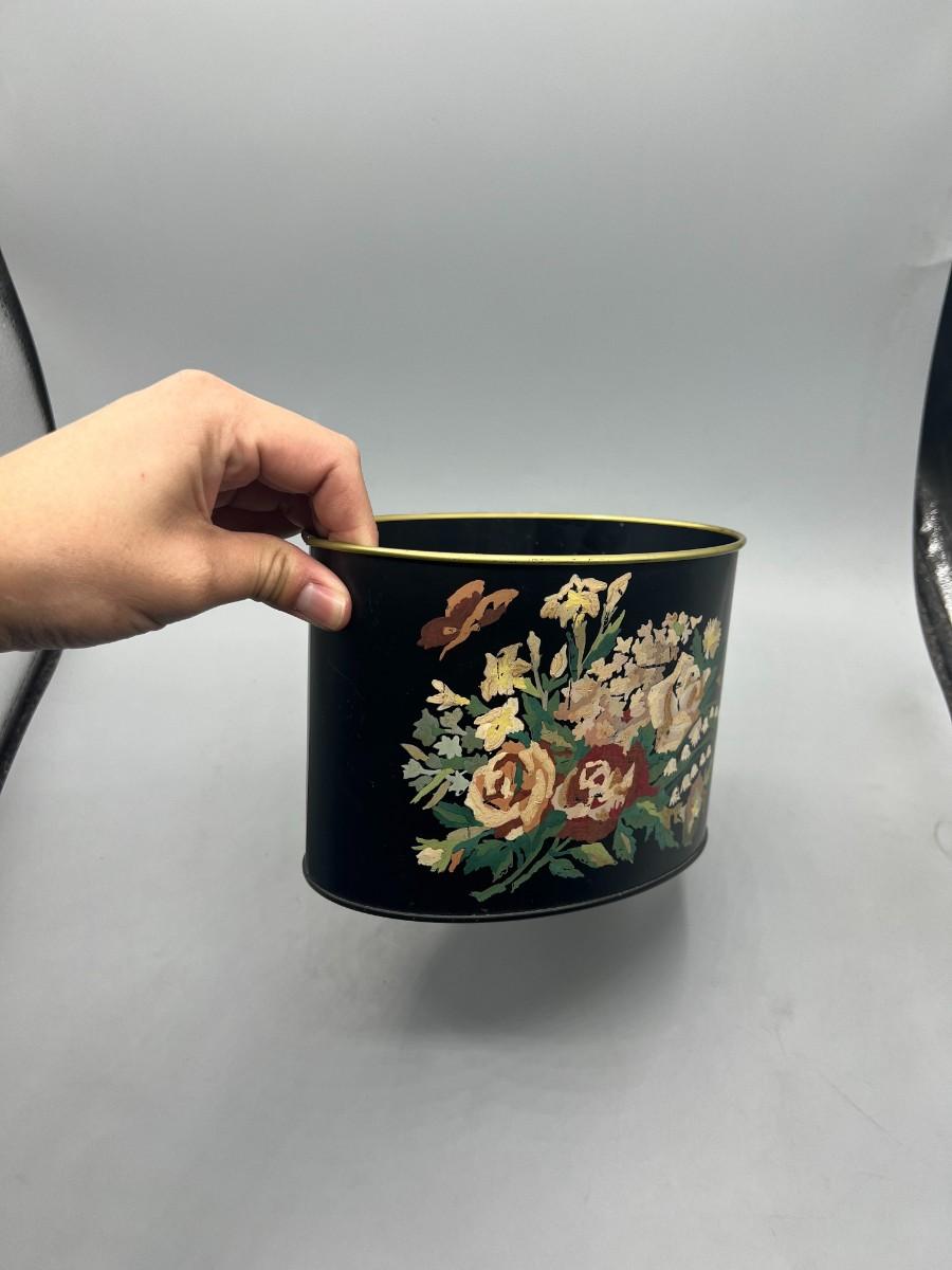 Vintage Toleware Metal Desk Top Impressionist Flower Design Waste Bin