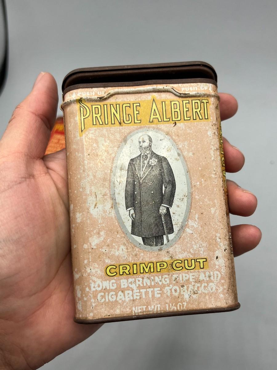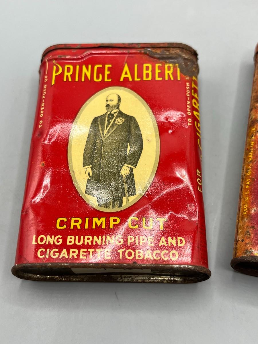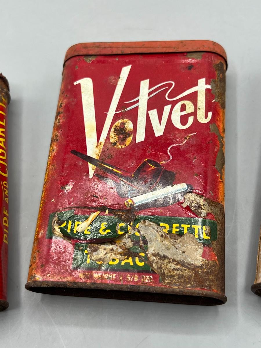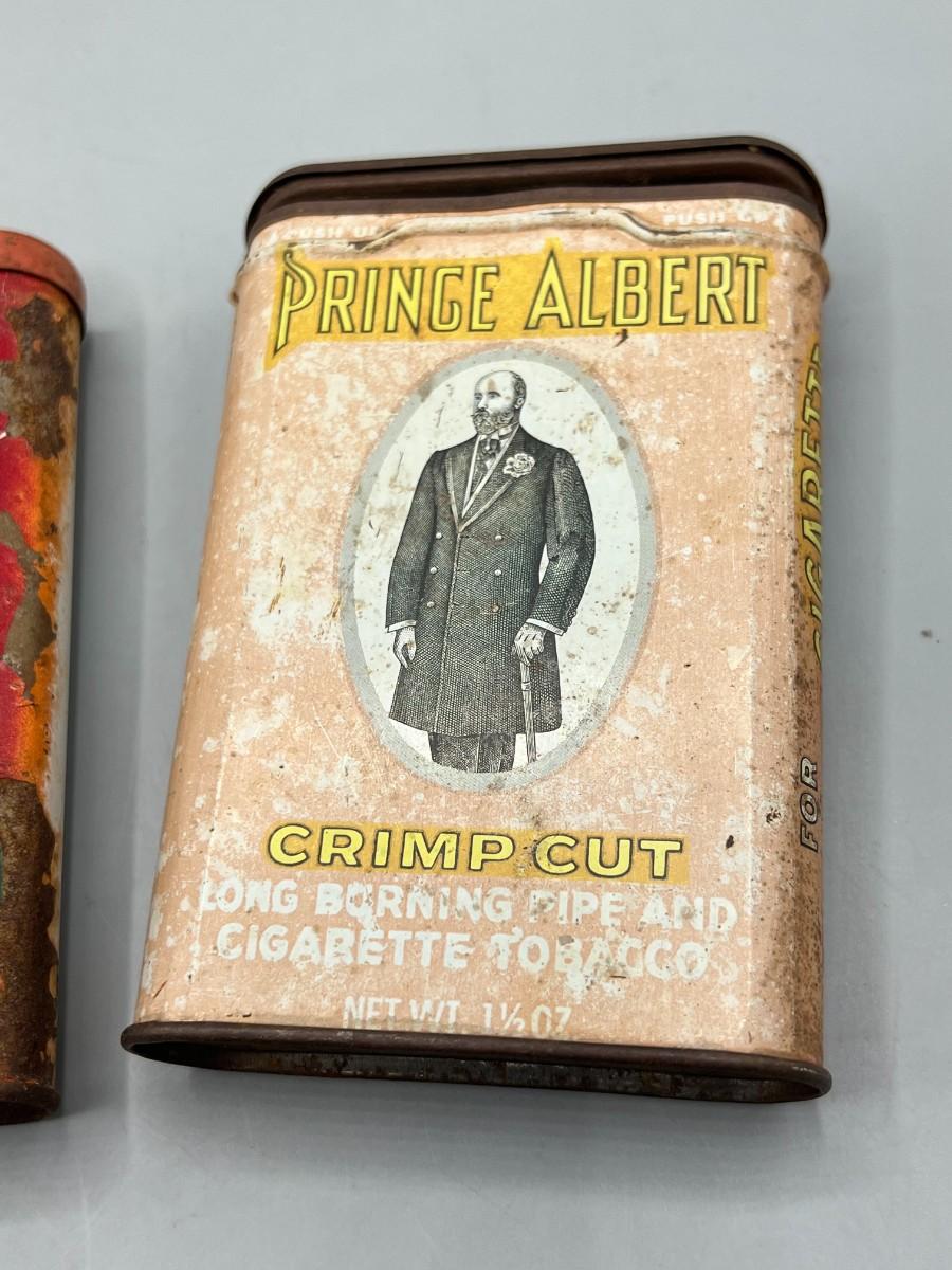 Vintage Lot of Metal Cigarette Tins Prince Albert Crimp Cut Tobacco & Velvet Tobacco