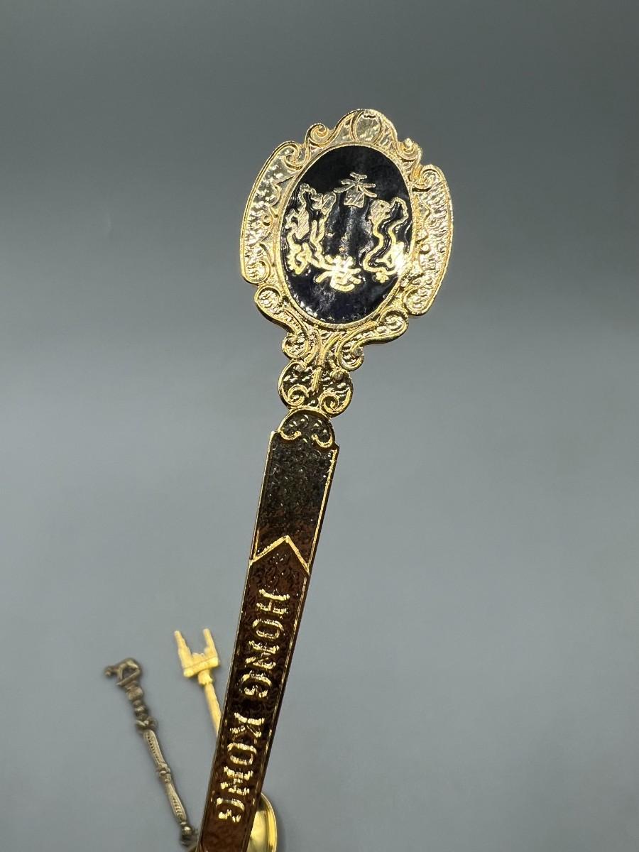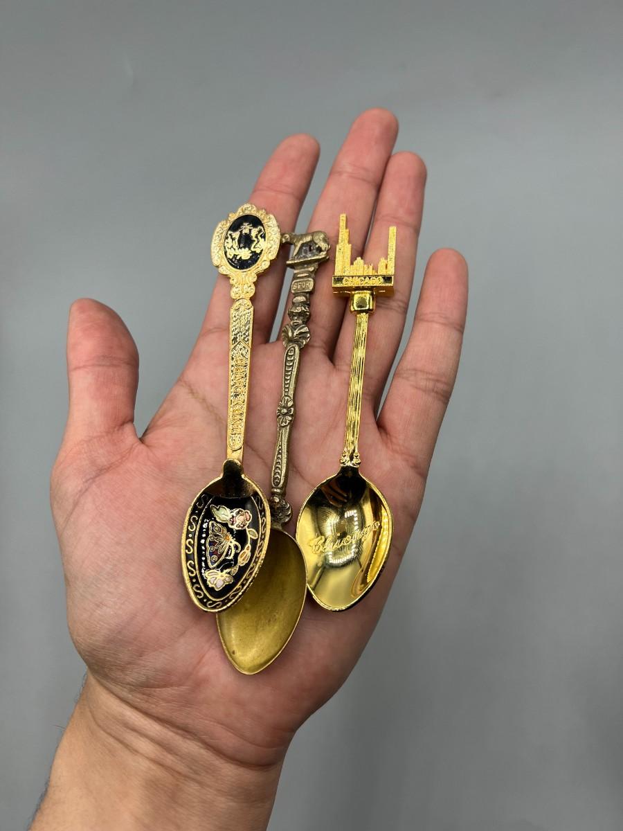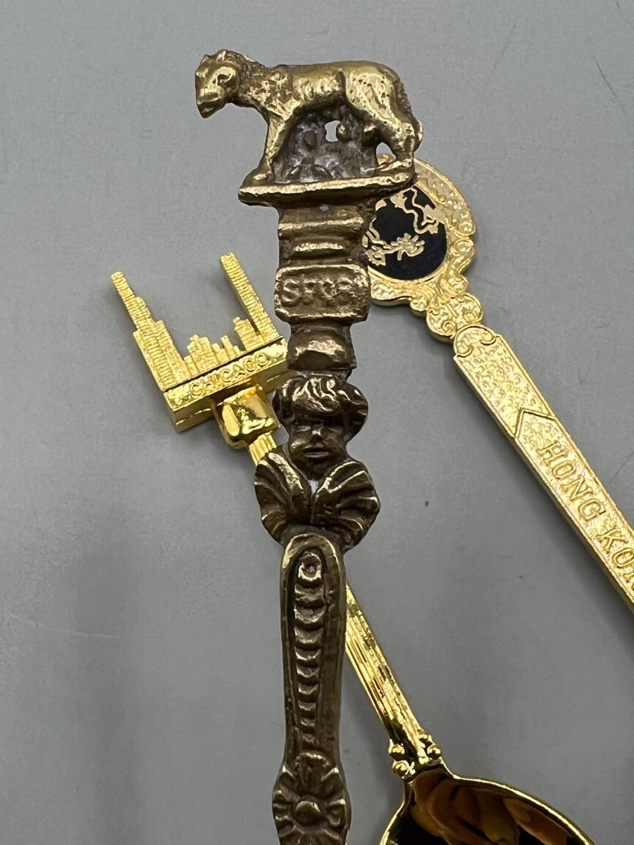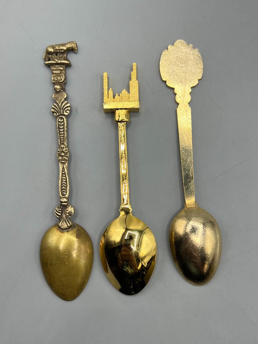 Lot of Vintage Retro Collector Souvenir Spoons 22ct Gold Plated Finish Hong Kong, Chicago, & Rome Italy