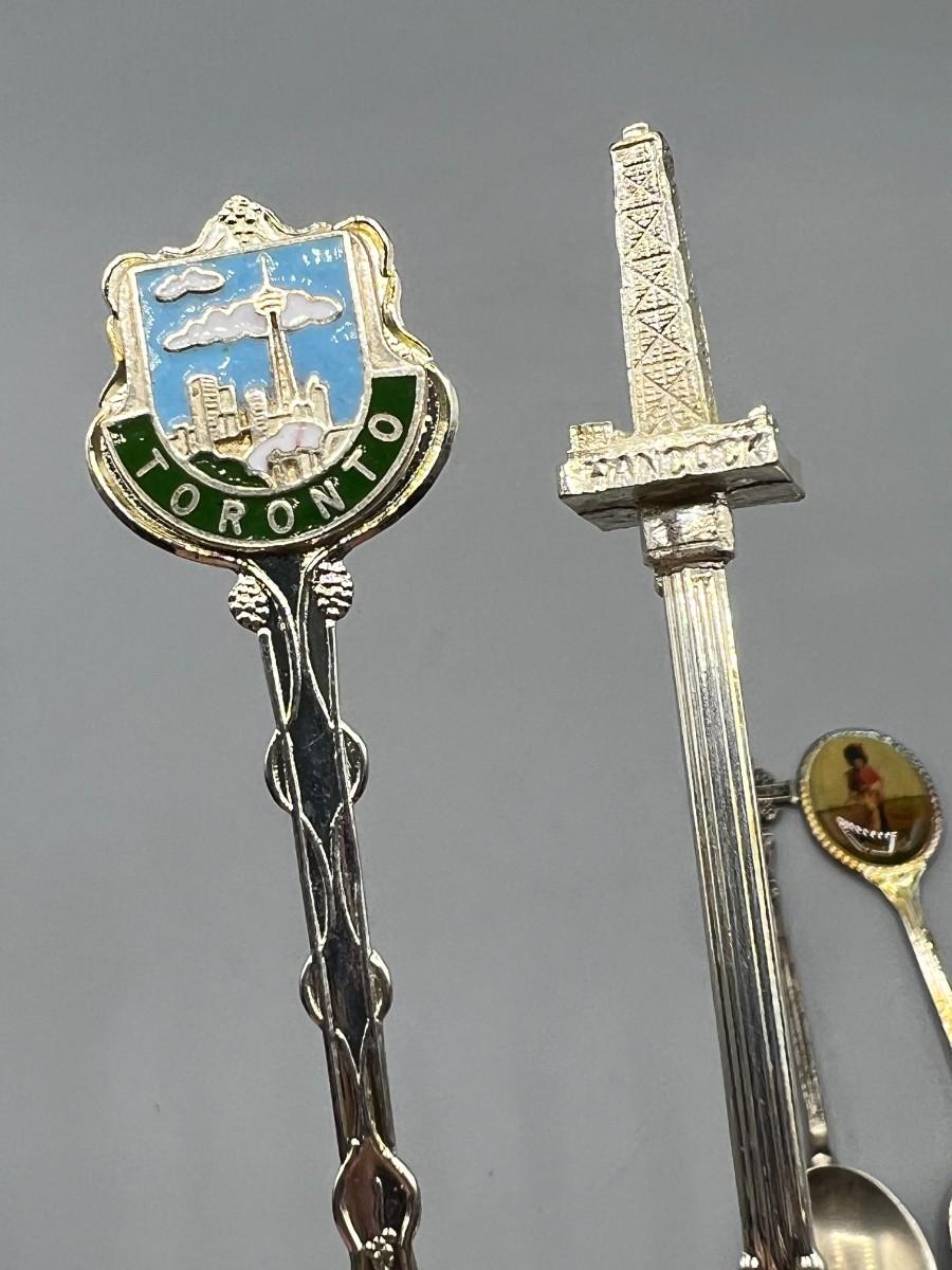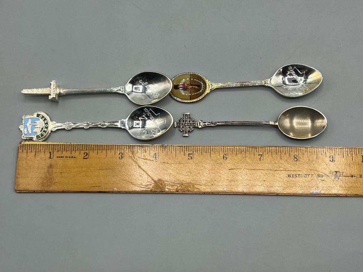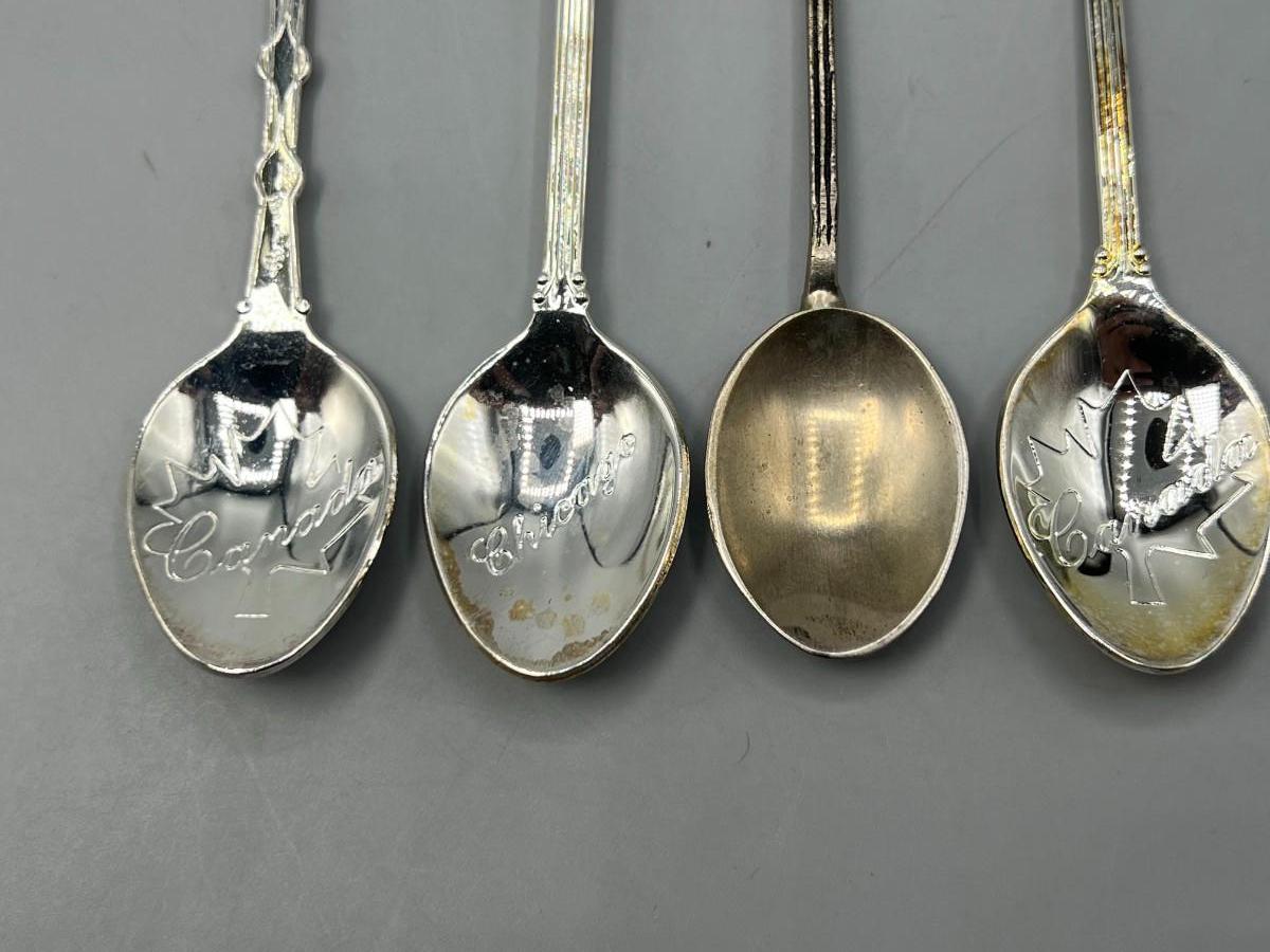 Lot of Vintage Retro Steel Silver Plated Souvenir Collector Spoons Canada, Jerusalem, & Chicago