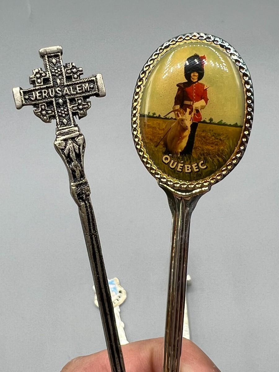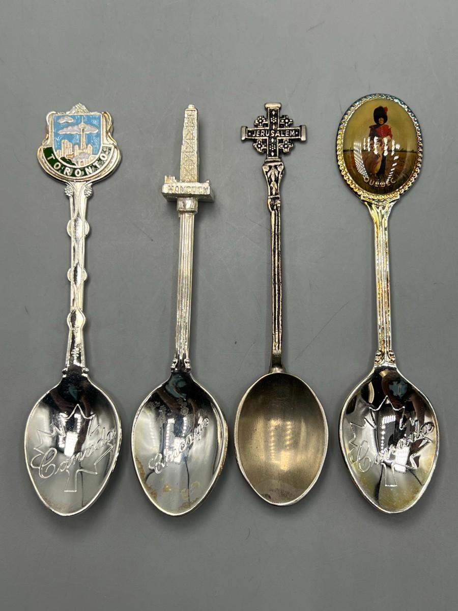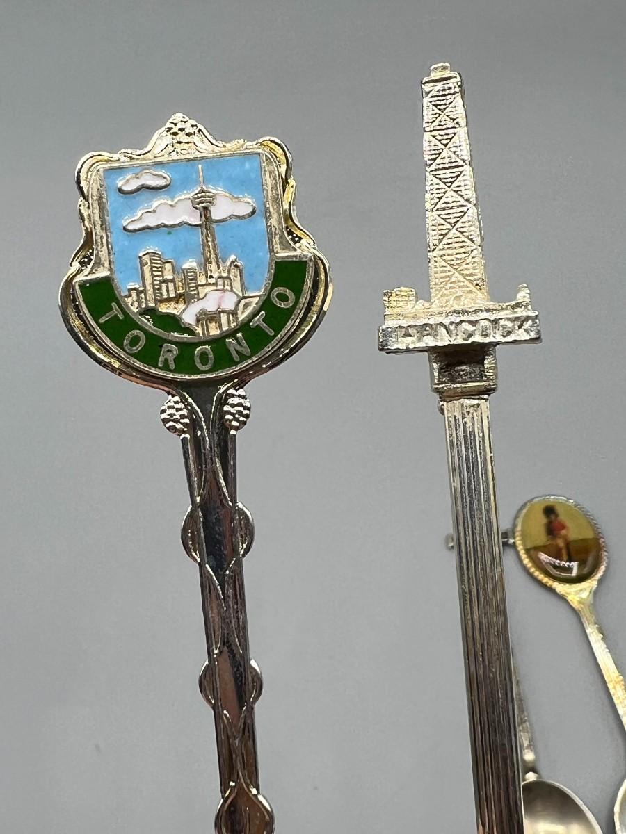 Lot of Vintage Retro Steel Silver Plated Souvenir Collector Spoons Canada, Jerusalem, & Chicago