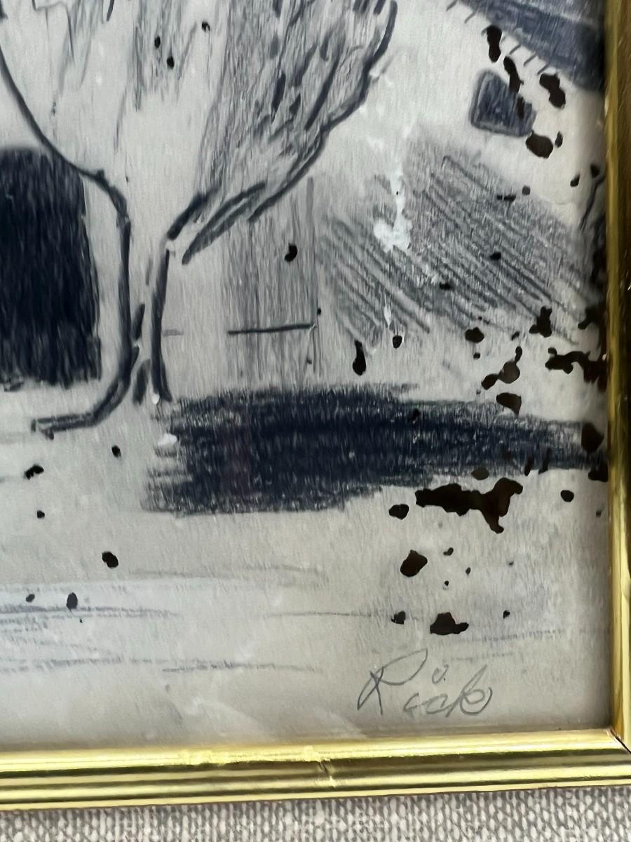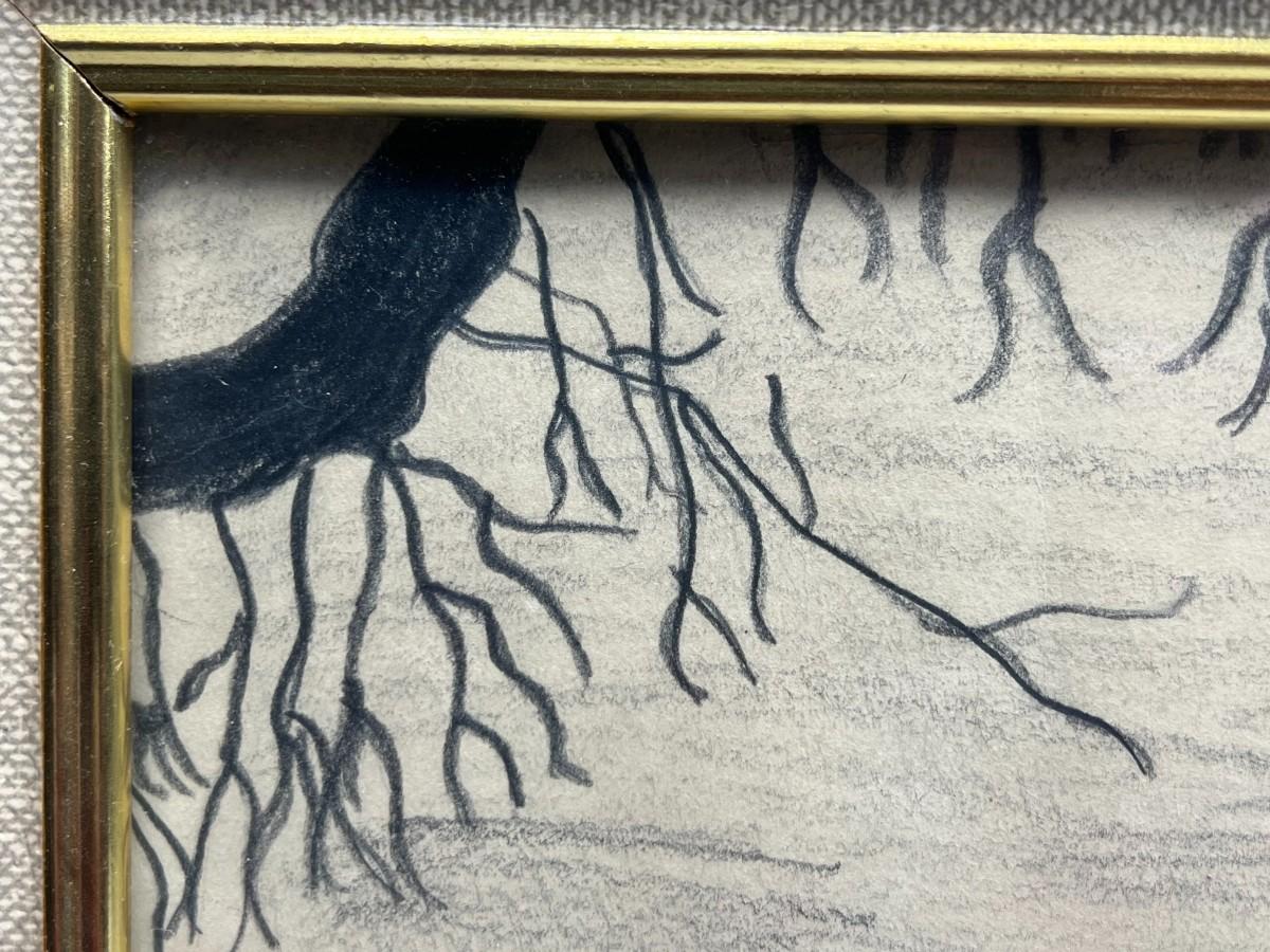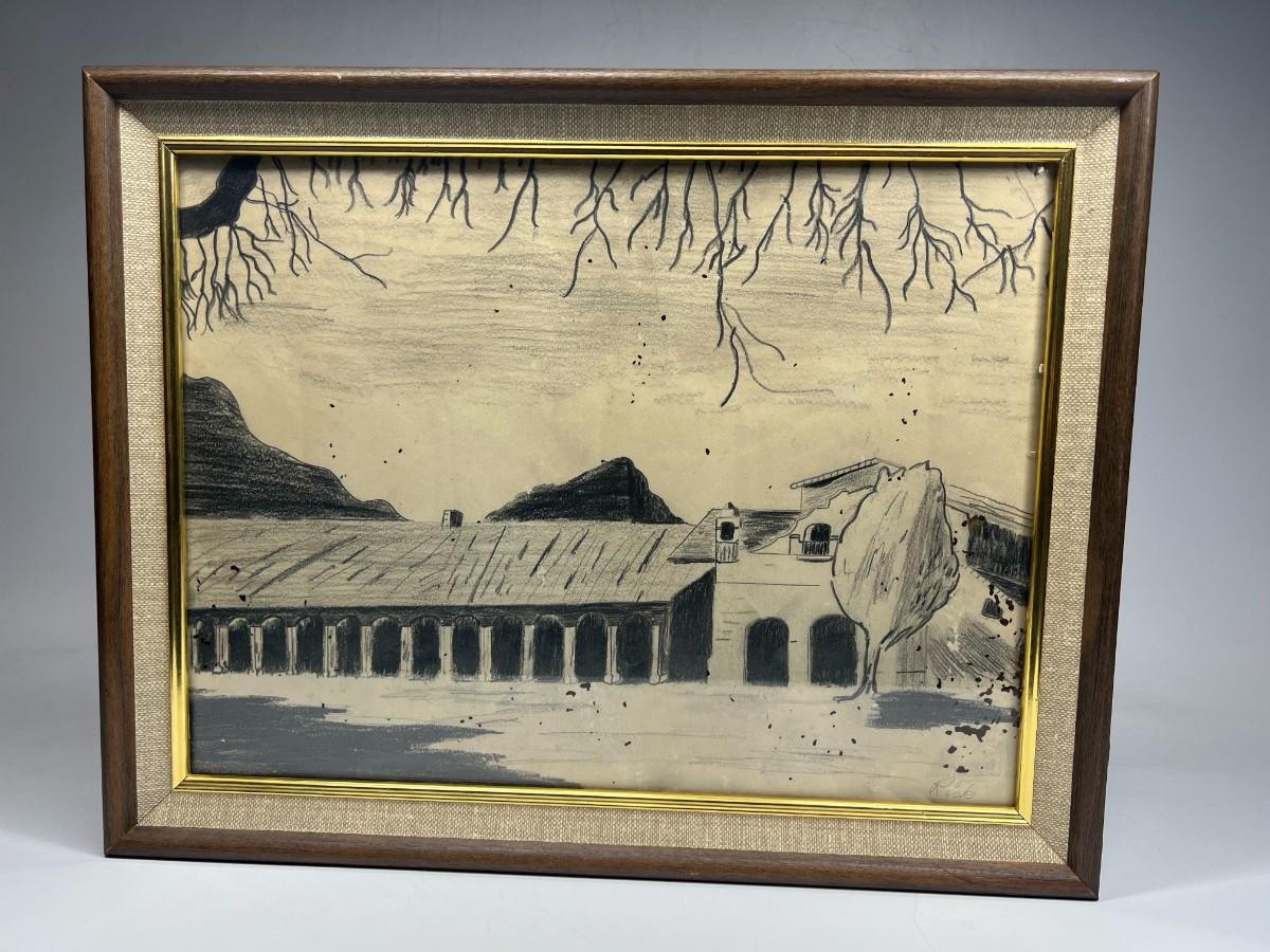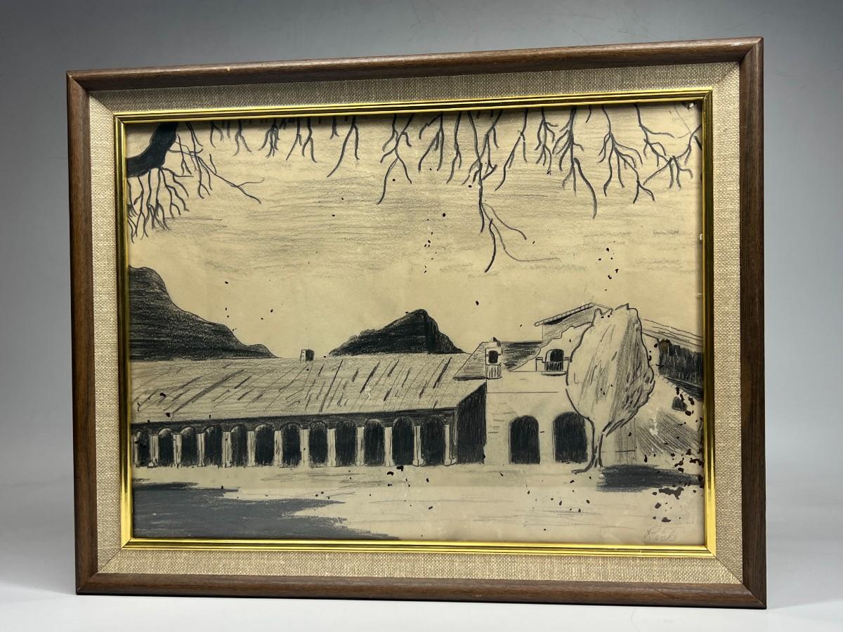 Vintage Amateur Artist Pencil California Mission Building Sketch Drawing Framed Art