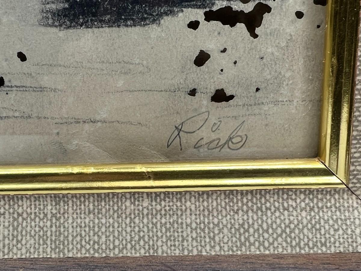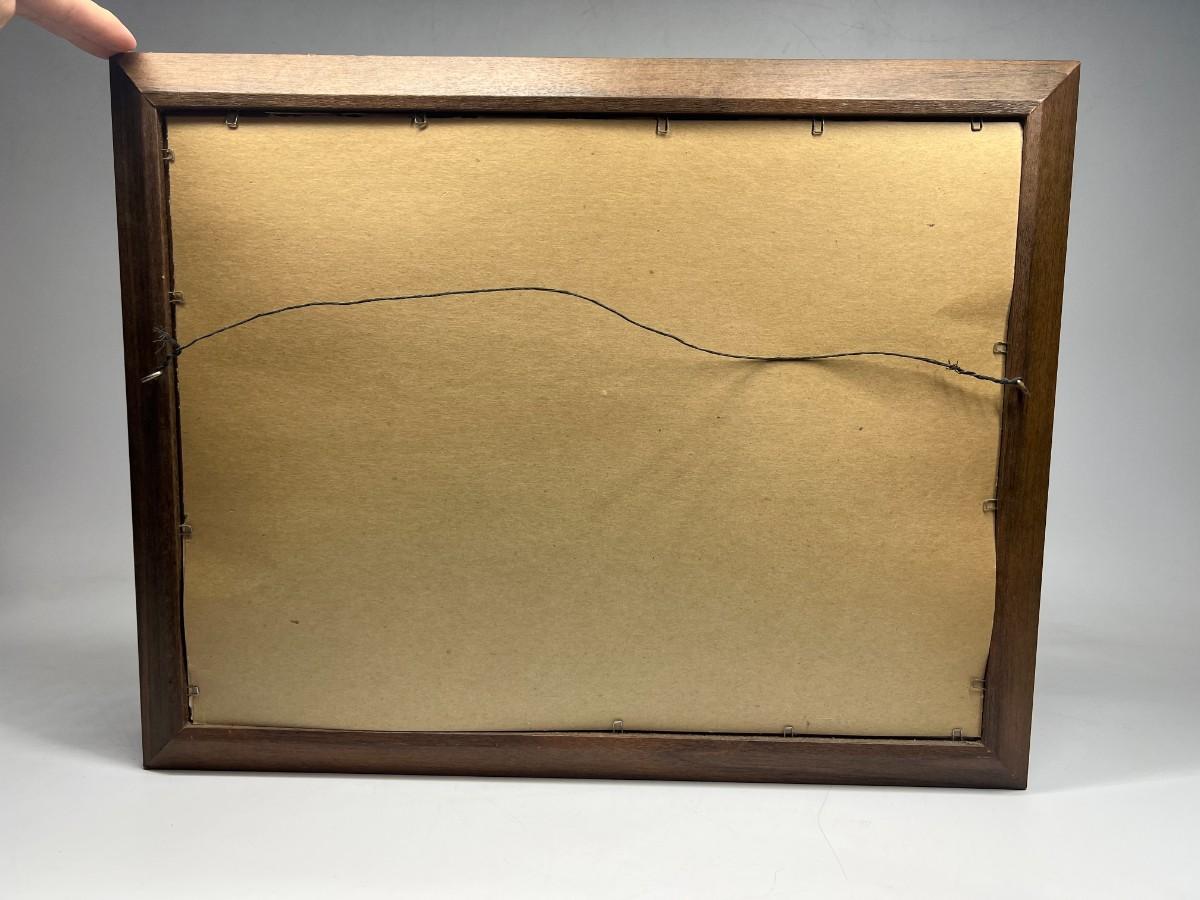 There is some vintage wear to the paper inside the frame, but there is no significant damage and is in overall good collectible or displayable condition. Check pictures for more details and for sizing.