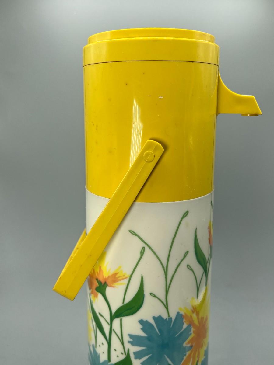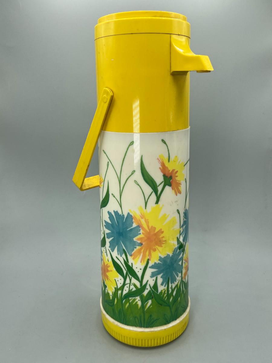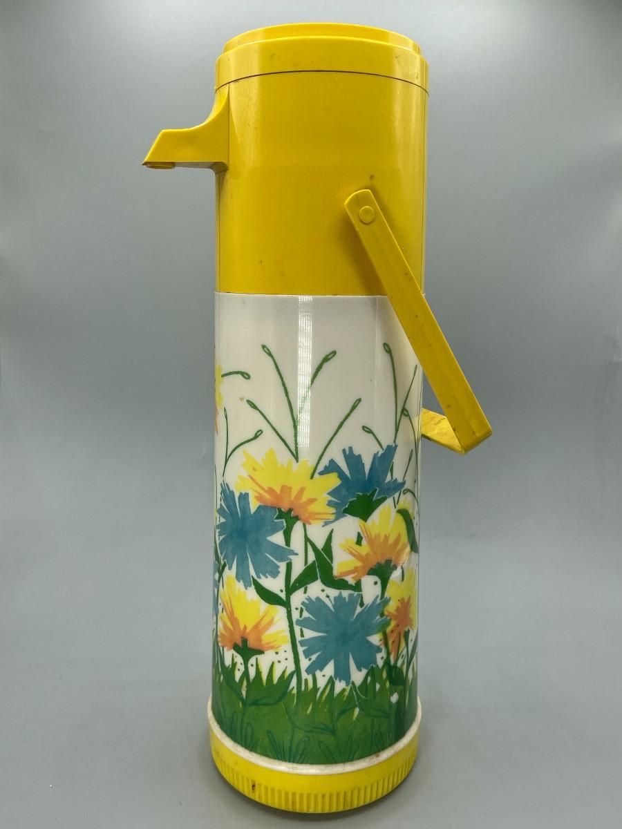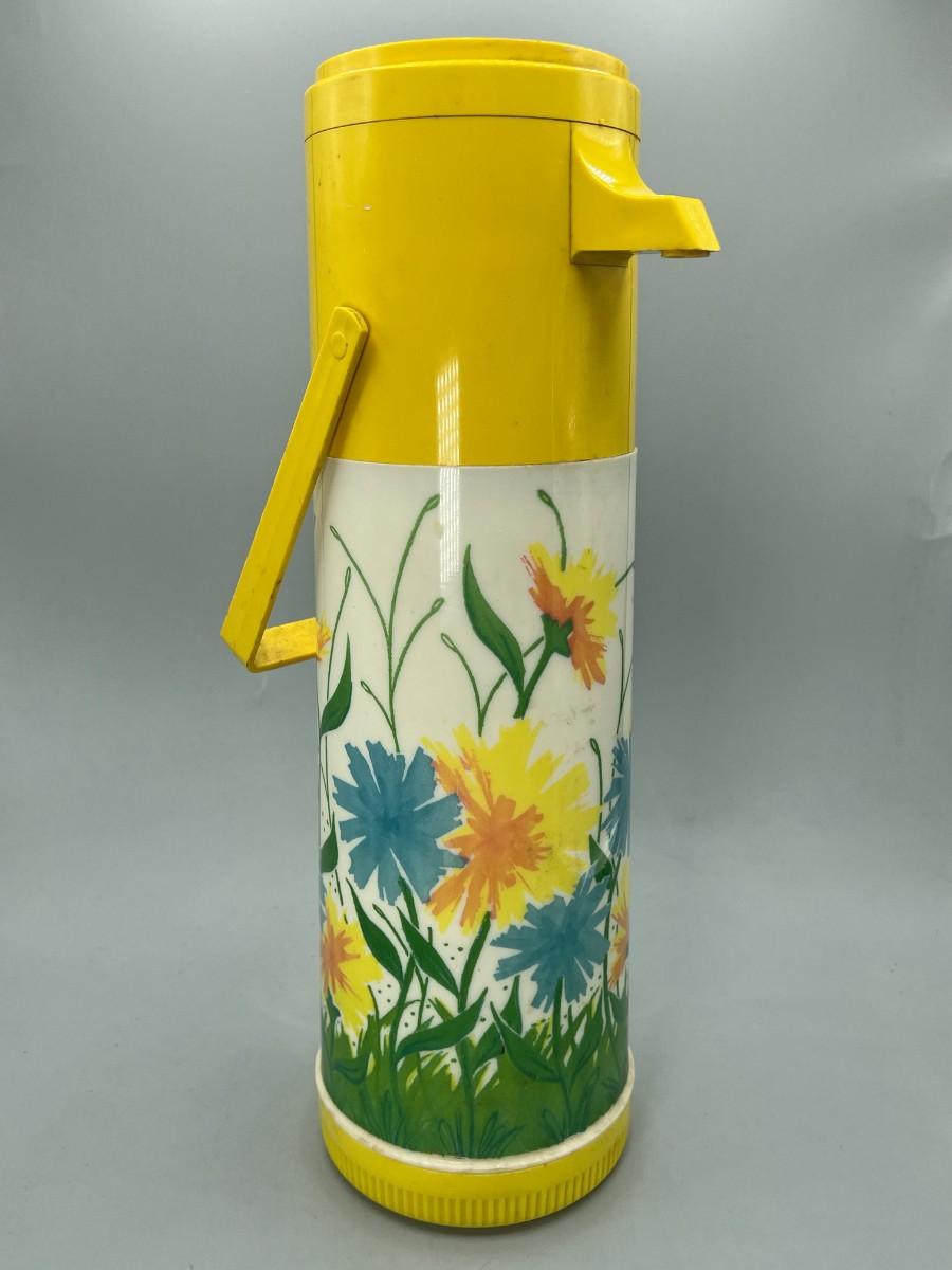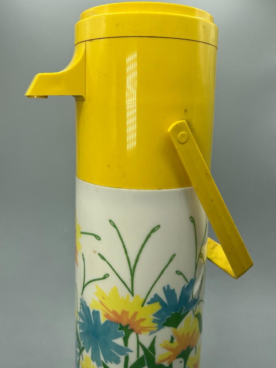Vintage Aladdin Thermos Pump-a-Drink Floral design Yellow Blue