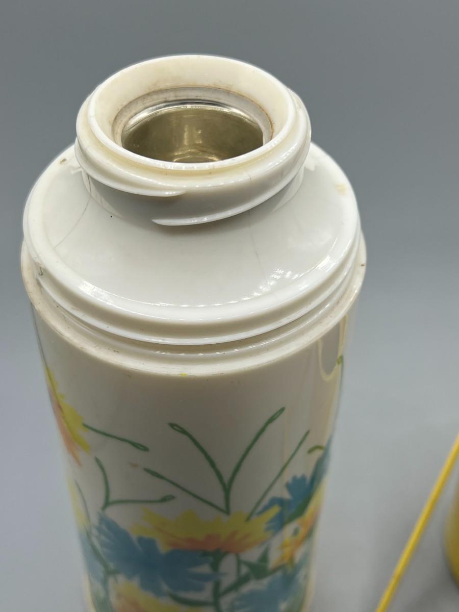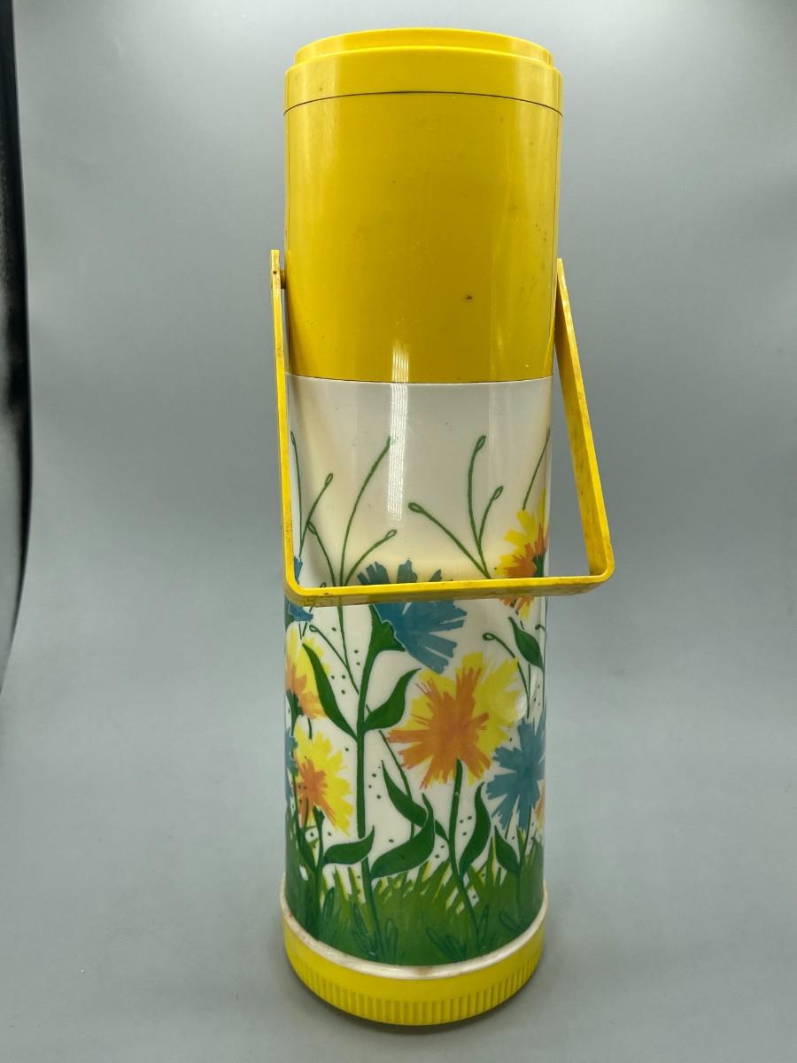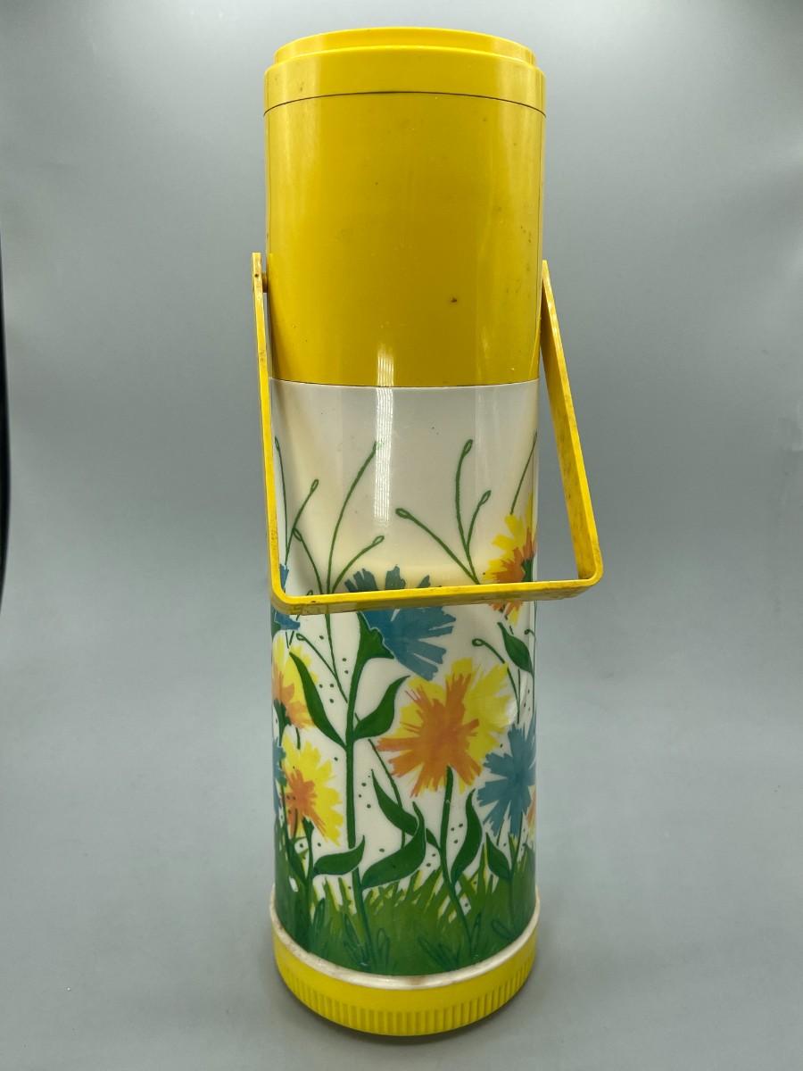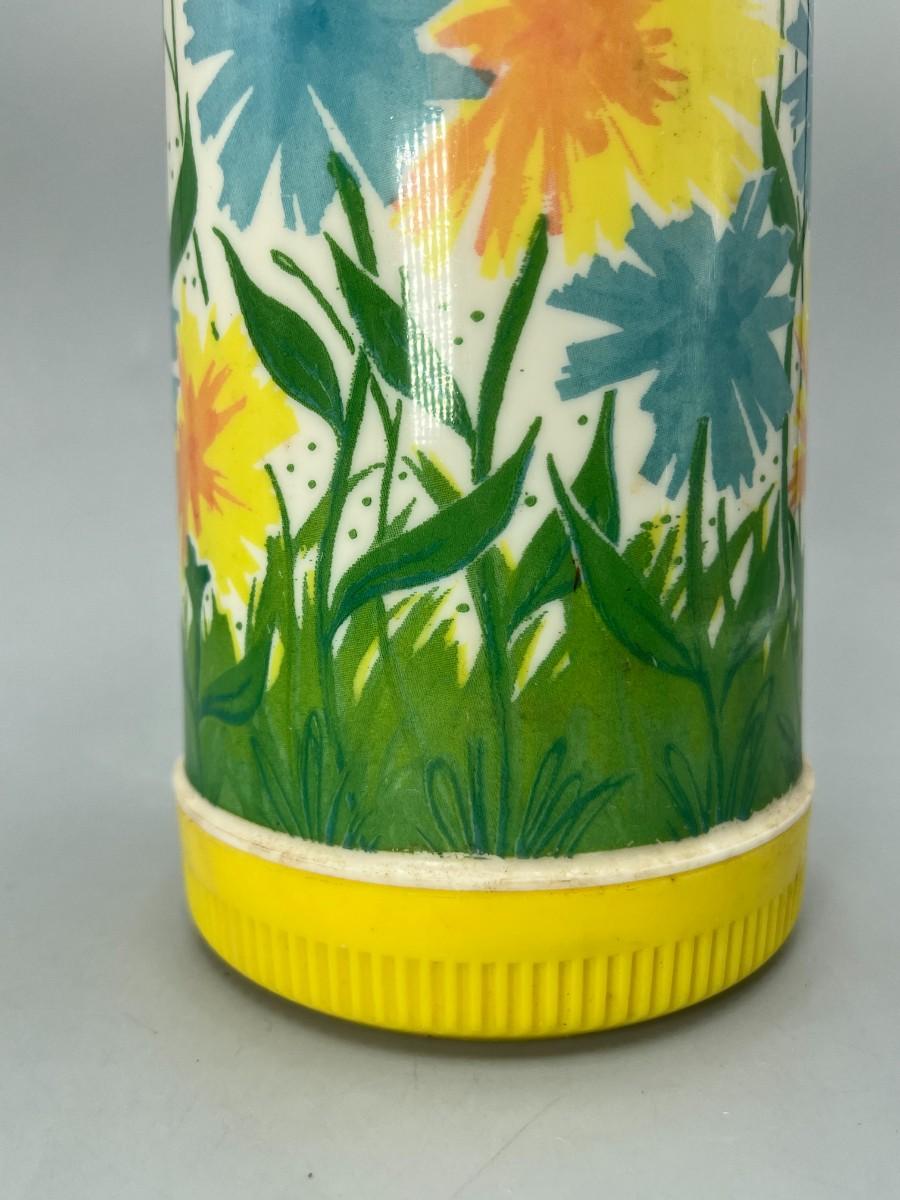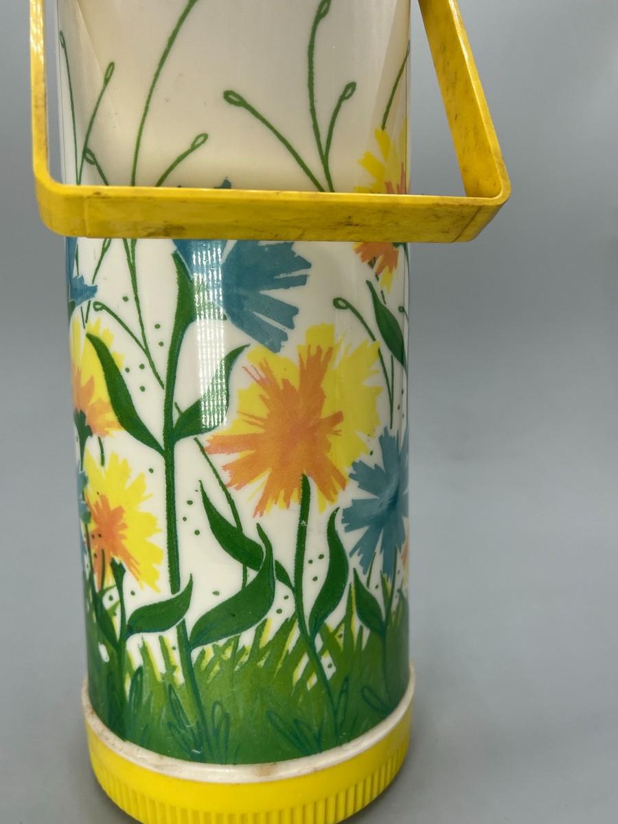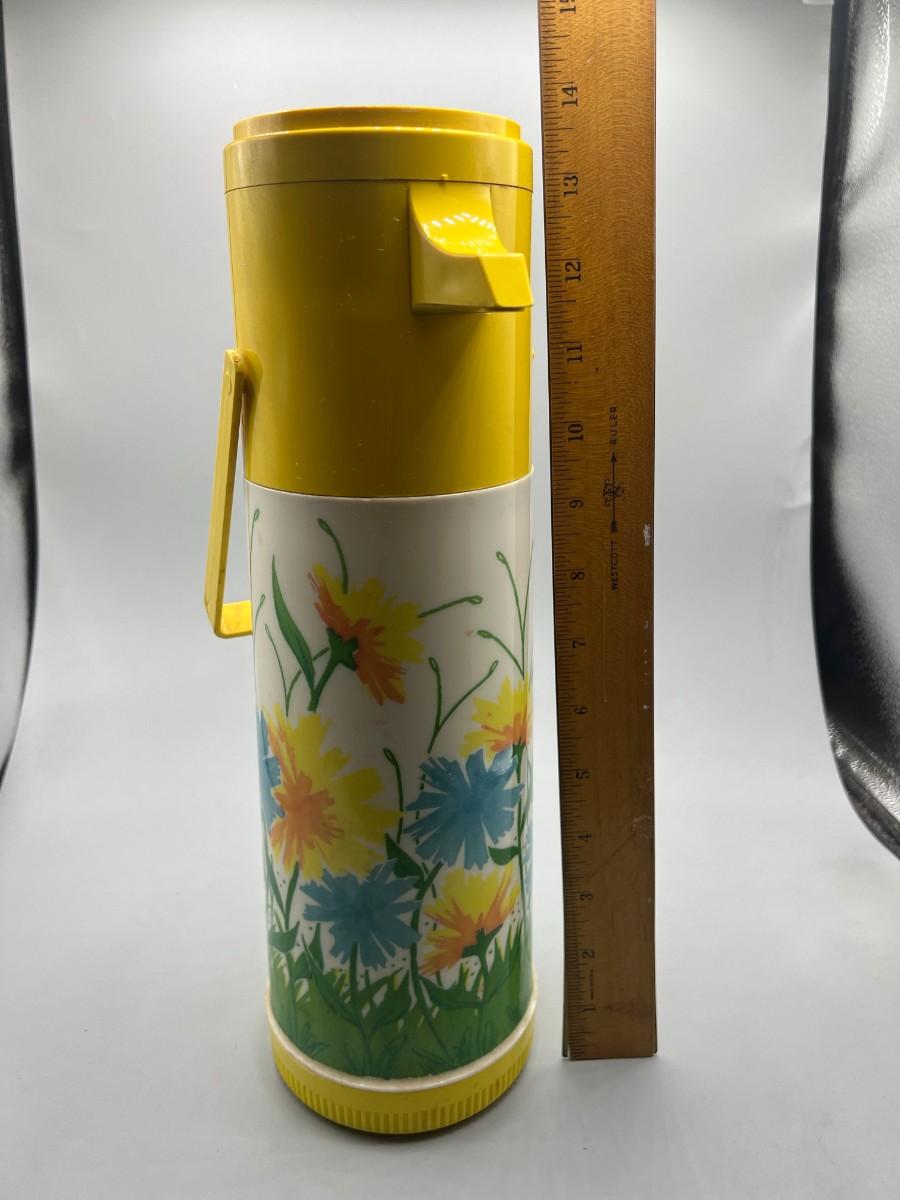 Vintage Aladdin Thermos Pump-a-Drink Floral design Yellow Blue