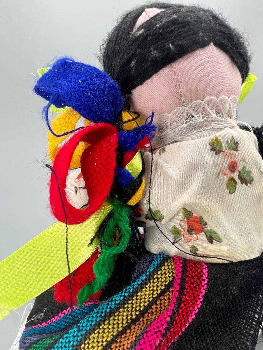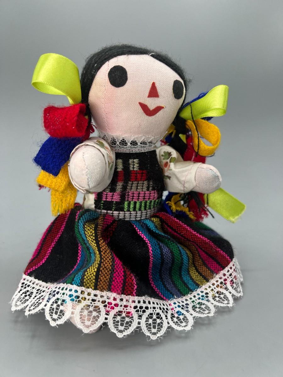 Handmade Mexican Rag Doll w/ Ribbon Bows in hair