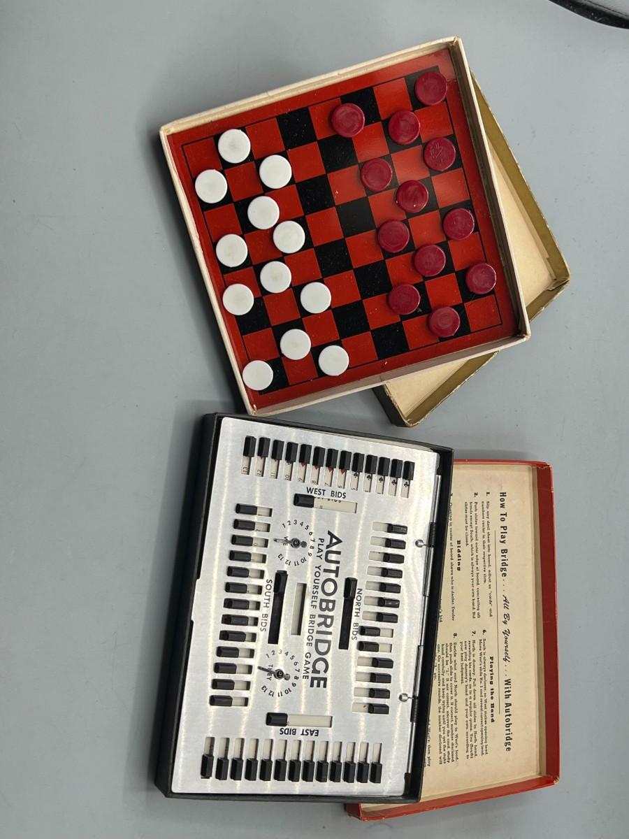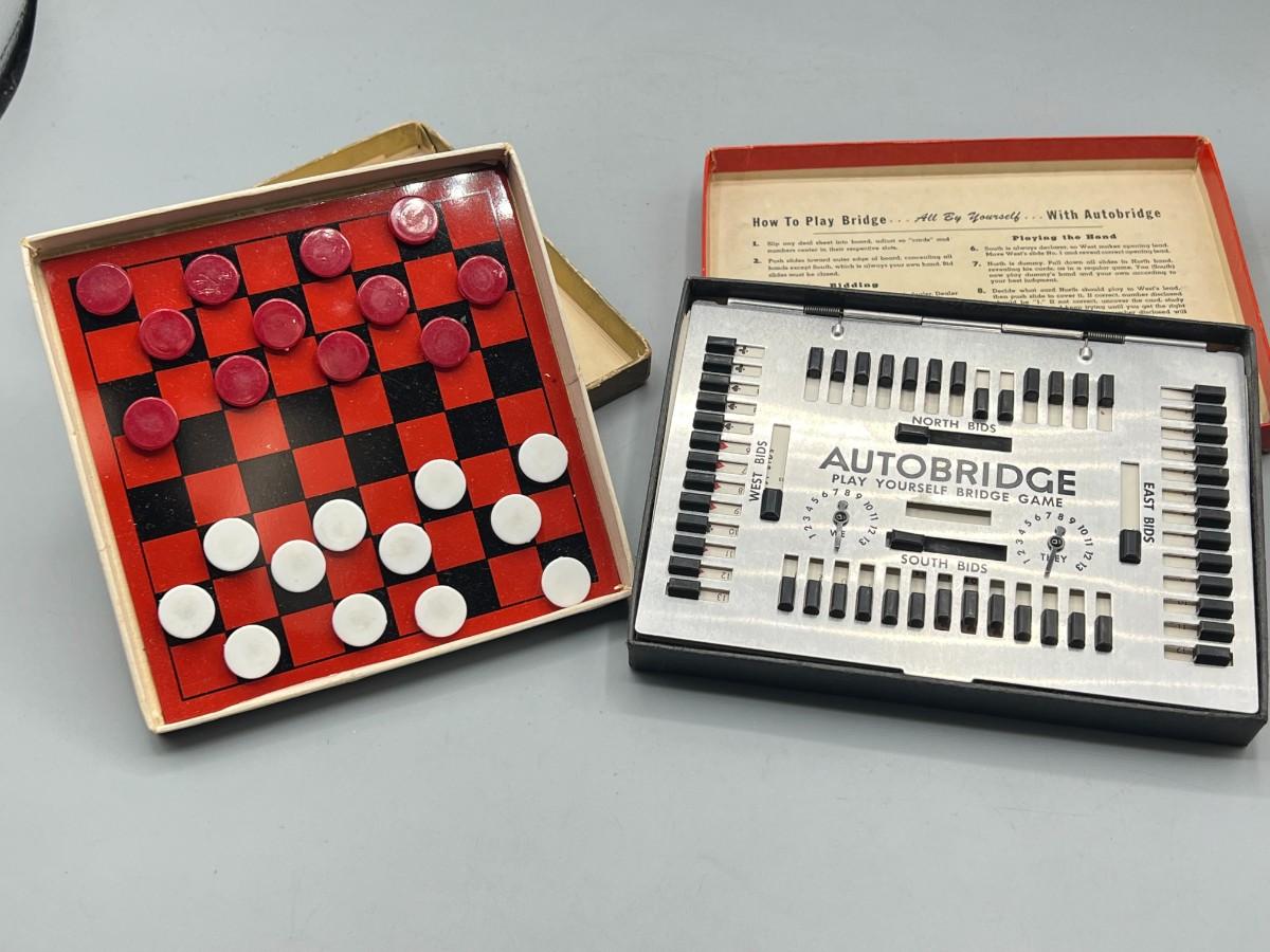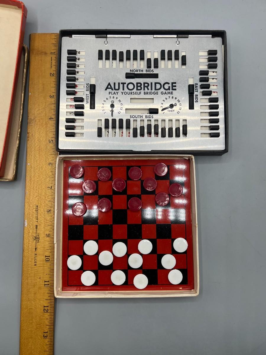 Autobridge Vintage Bridge Game Solitaire Card Deluxe Pocket Model plus small magnetic checkers game