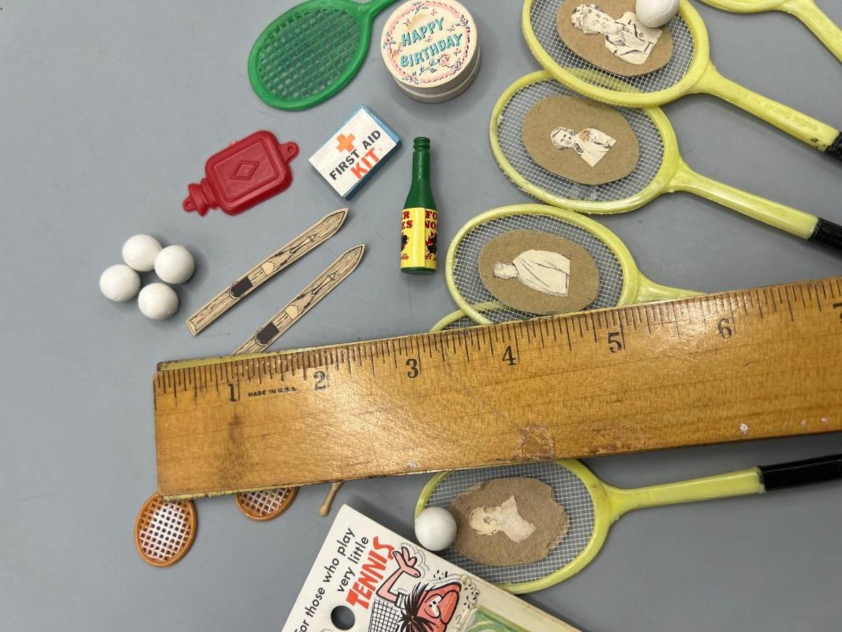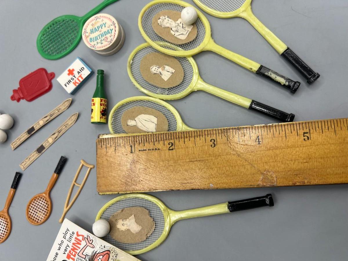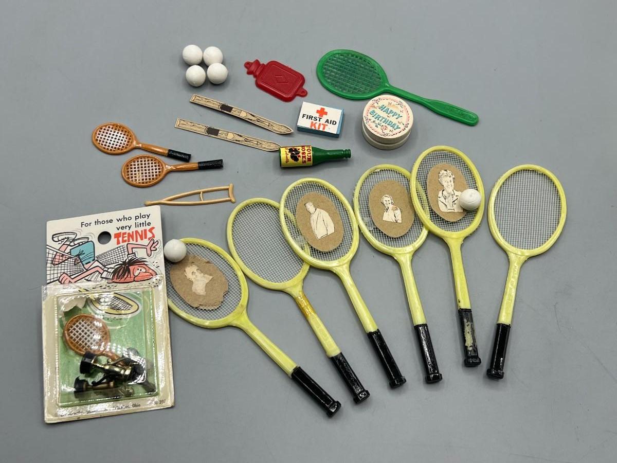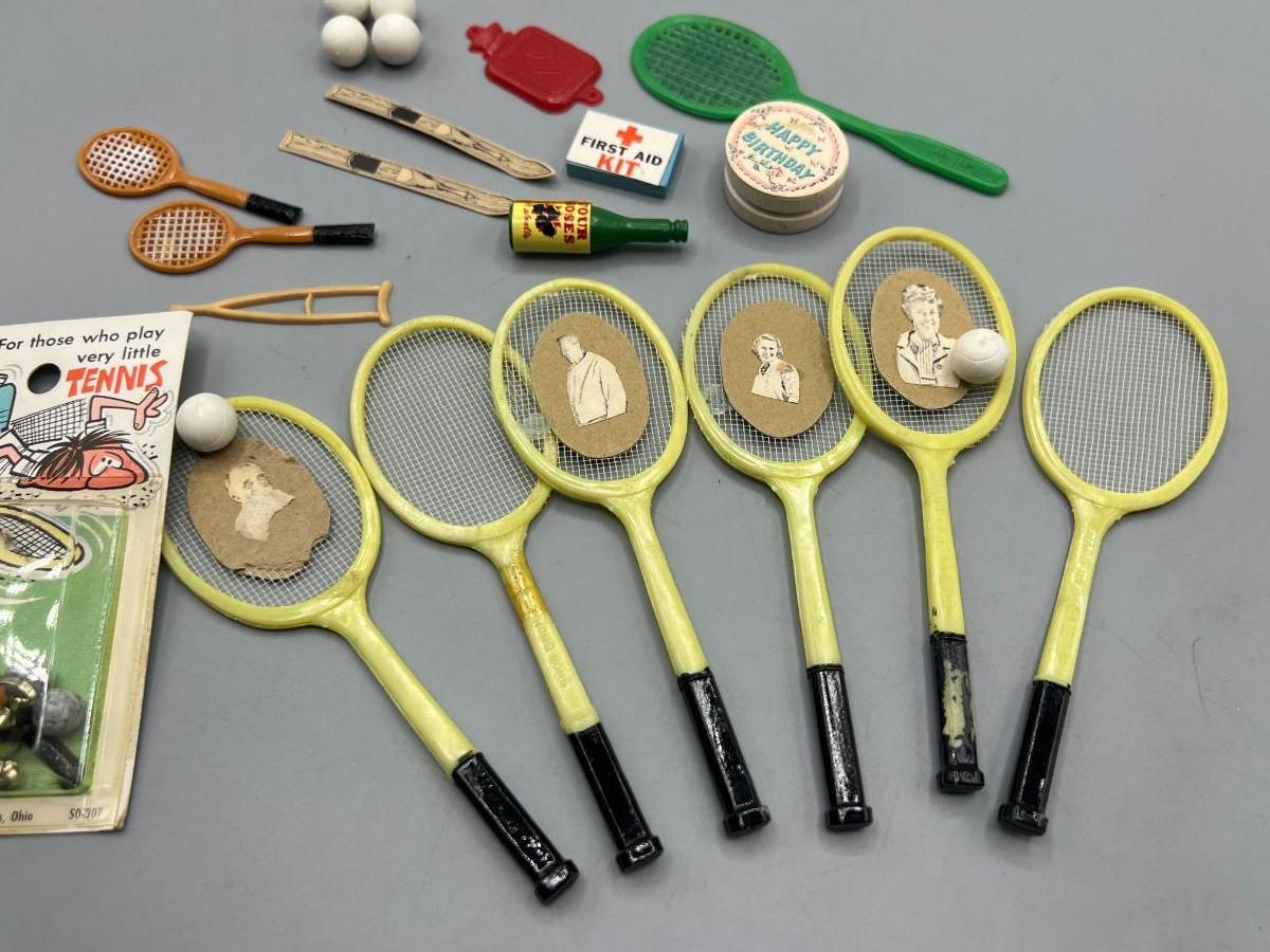 Vintage Lot of Plastic Miniatures Tennis Rackets & More