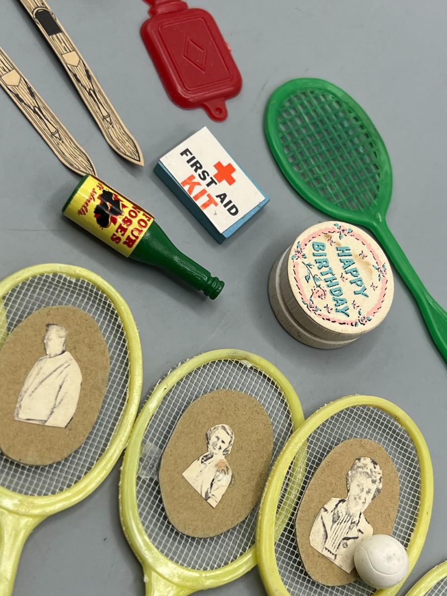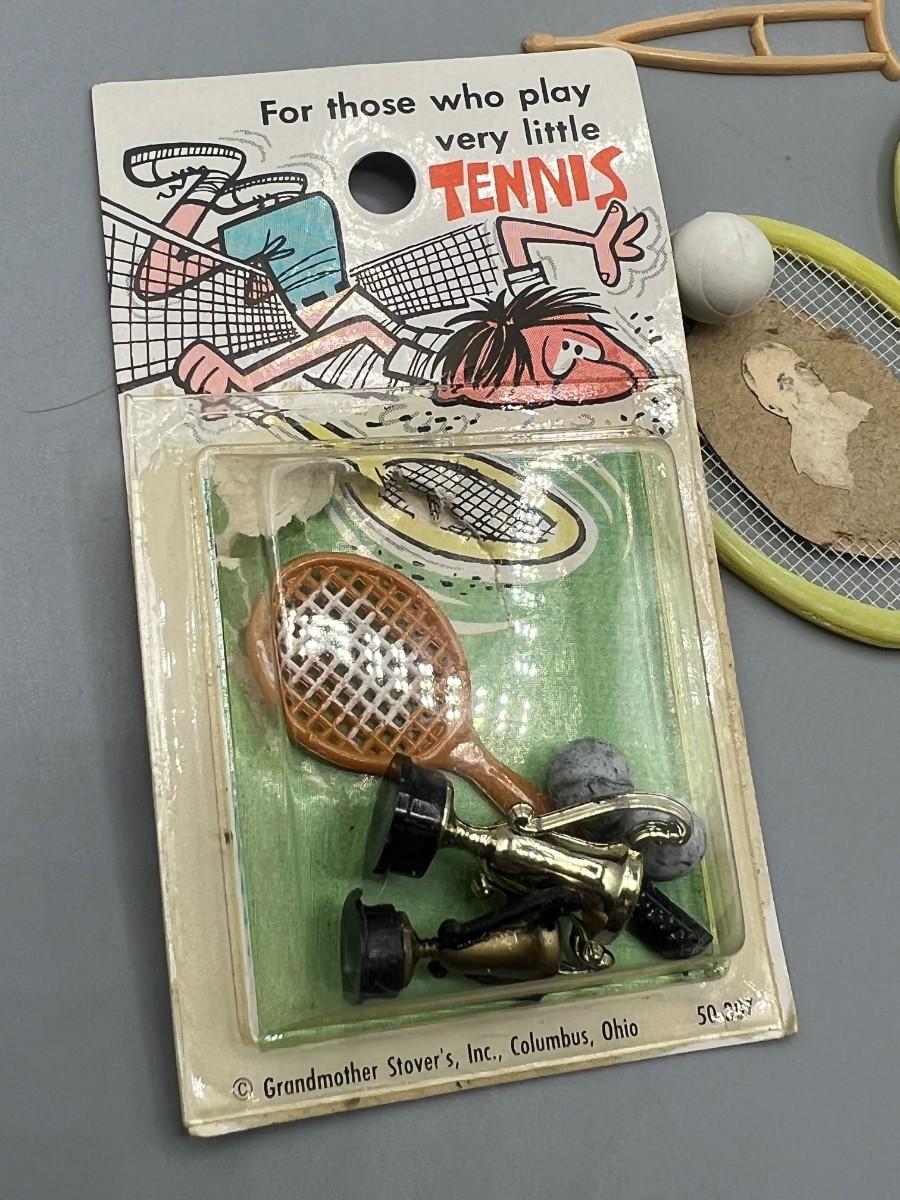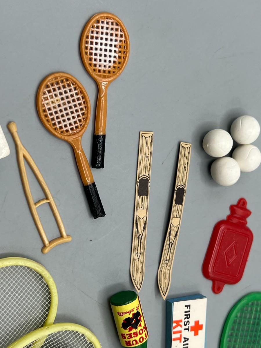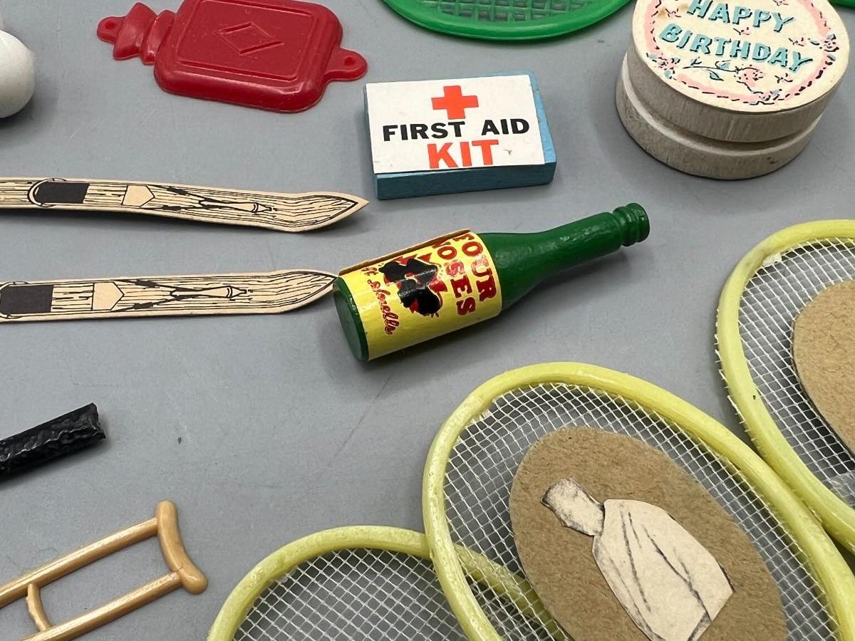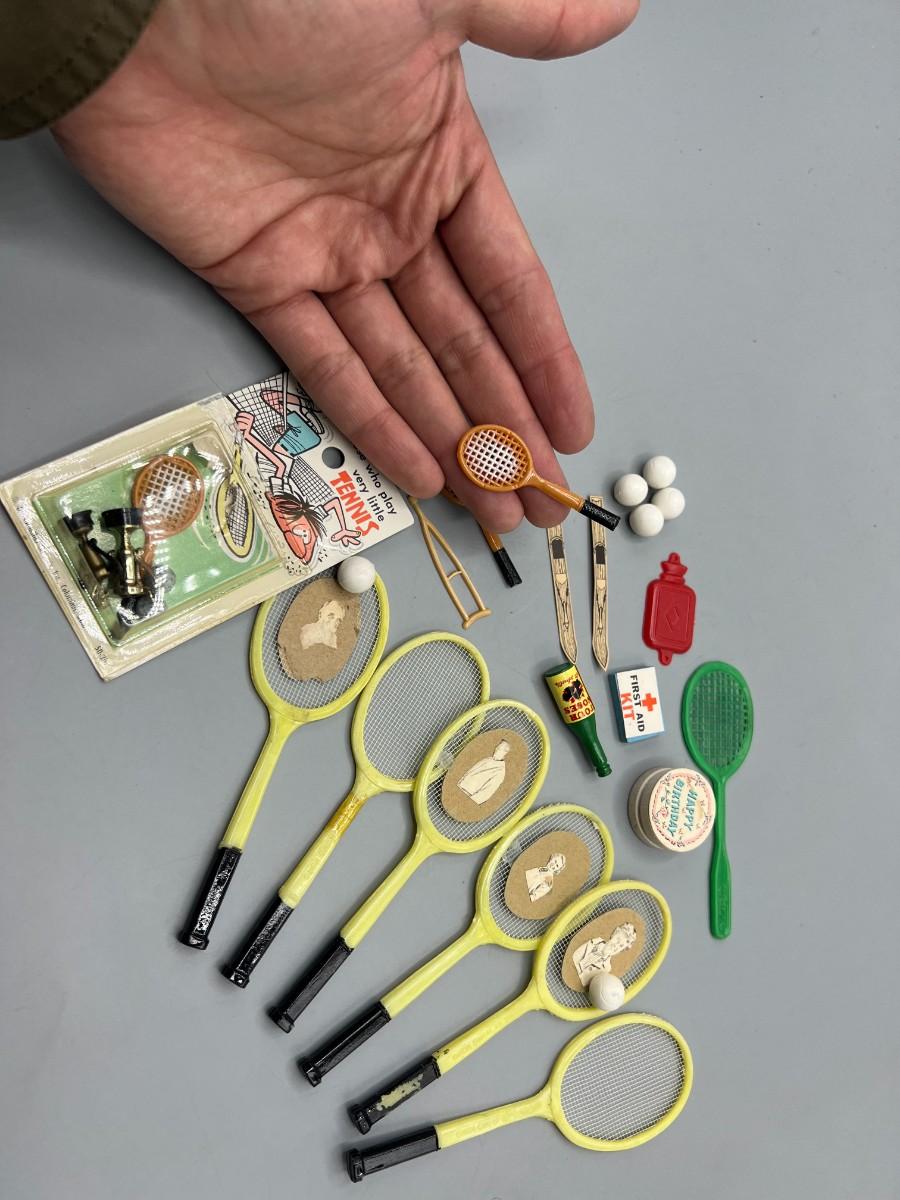 Vintage Lot of Plastic Miniatures Tennis Rackets & More