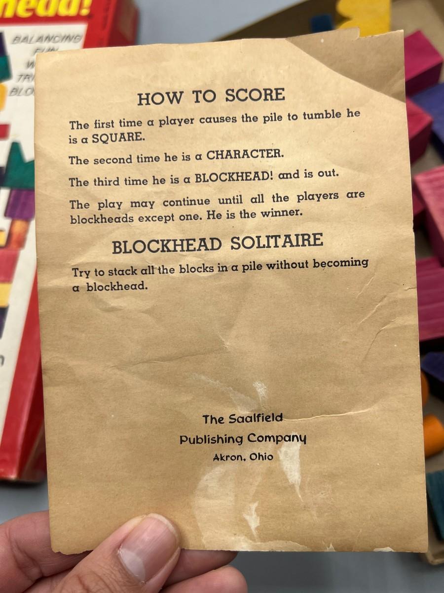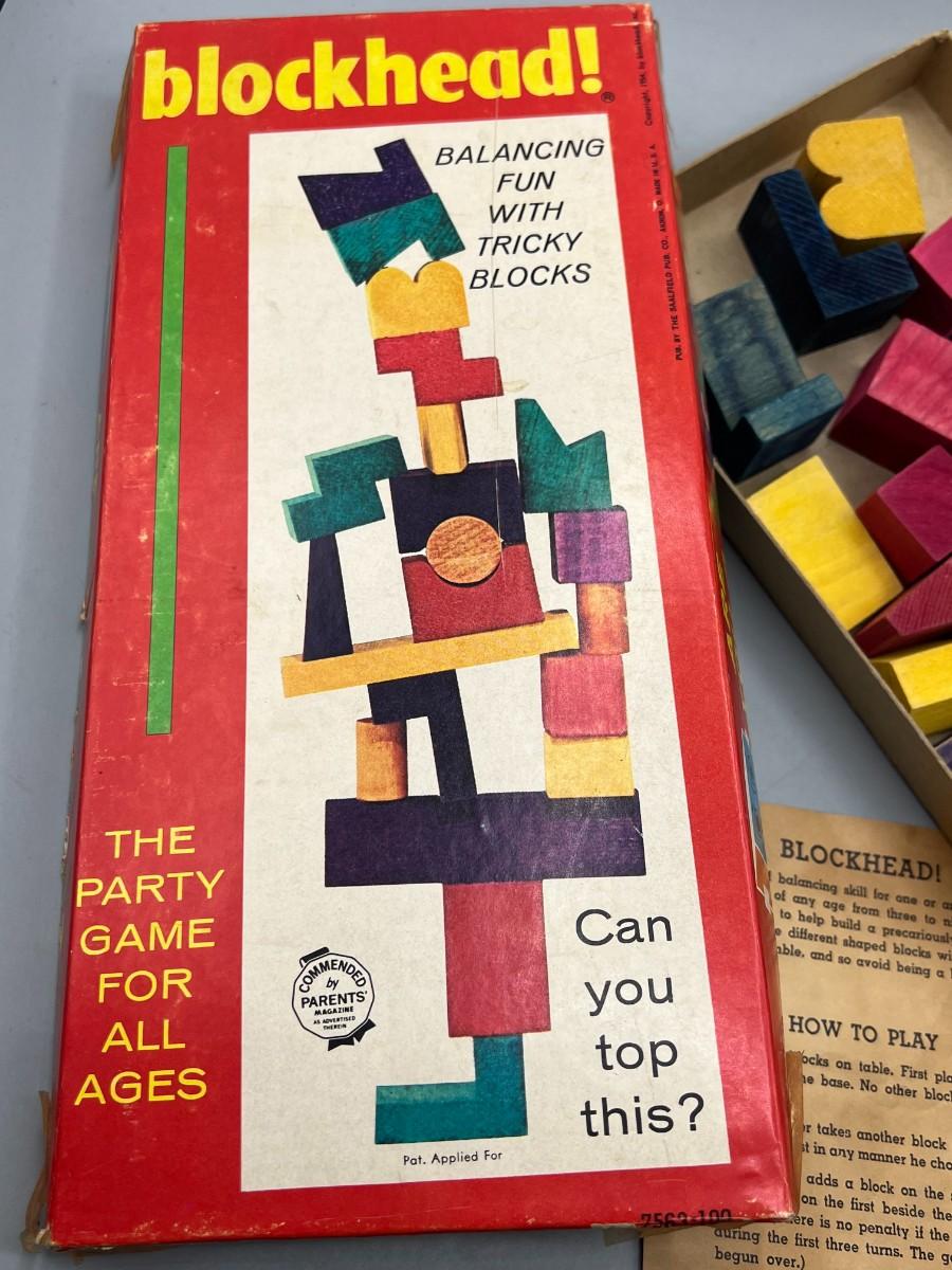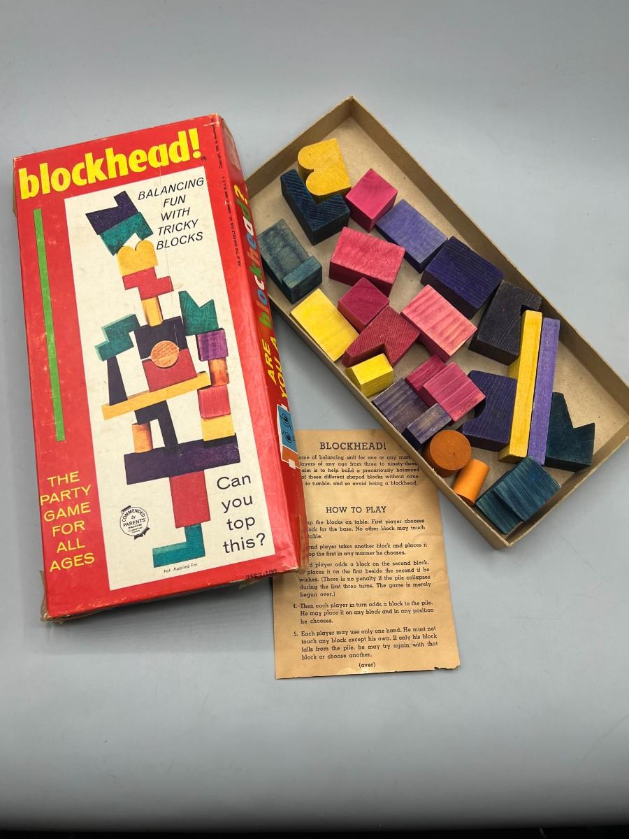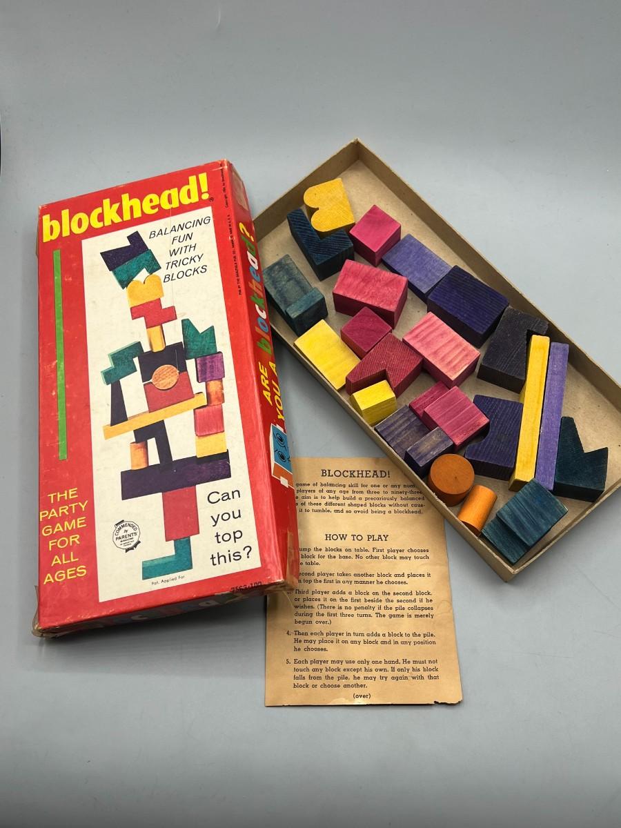Vintage Blockhead Board Game 1954 Party Wood block