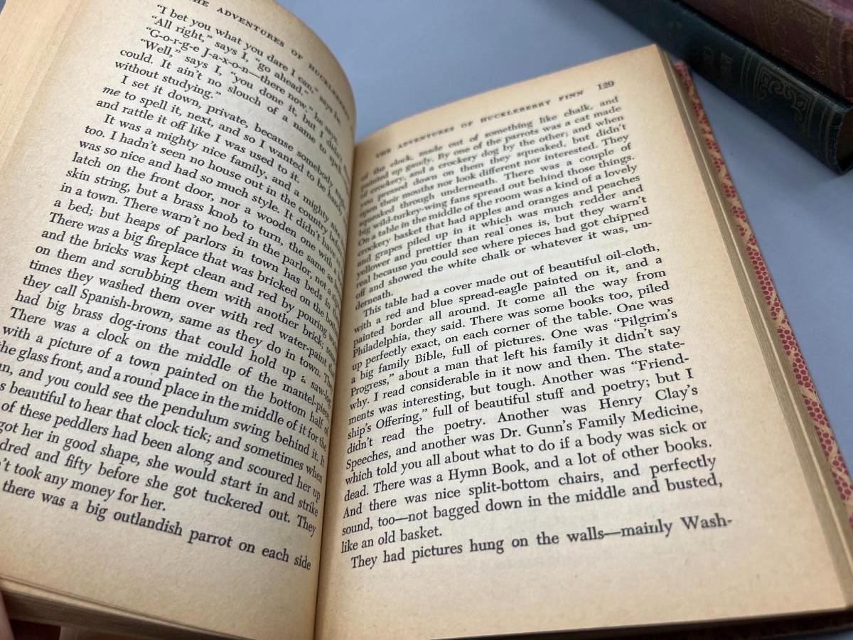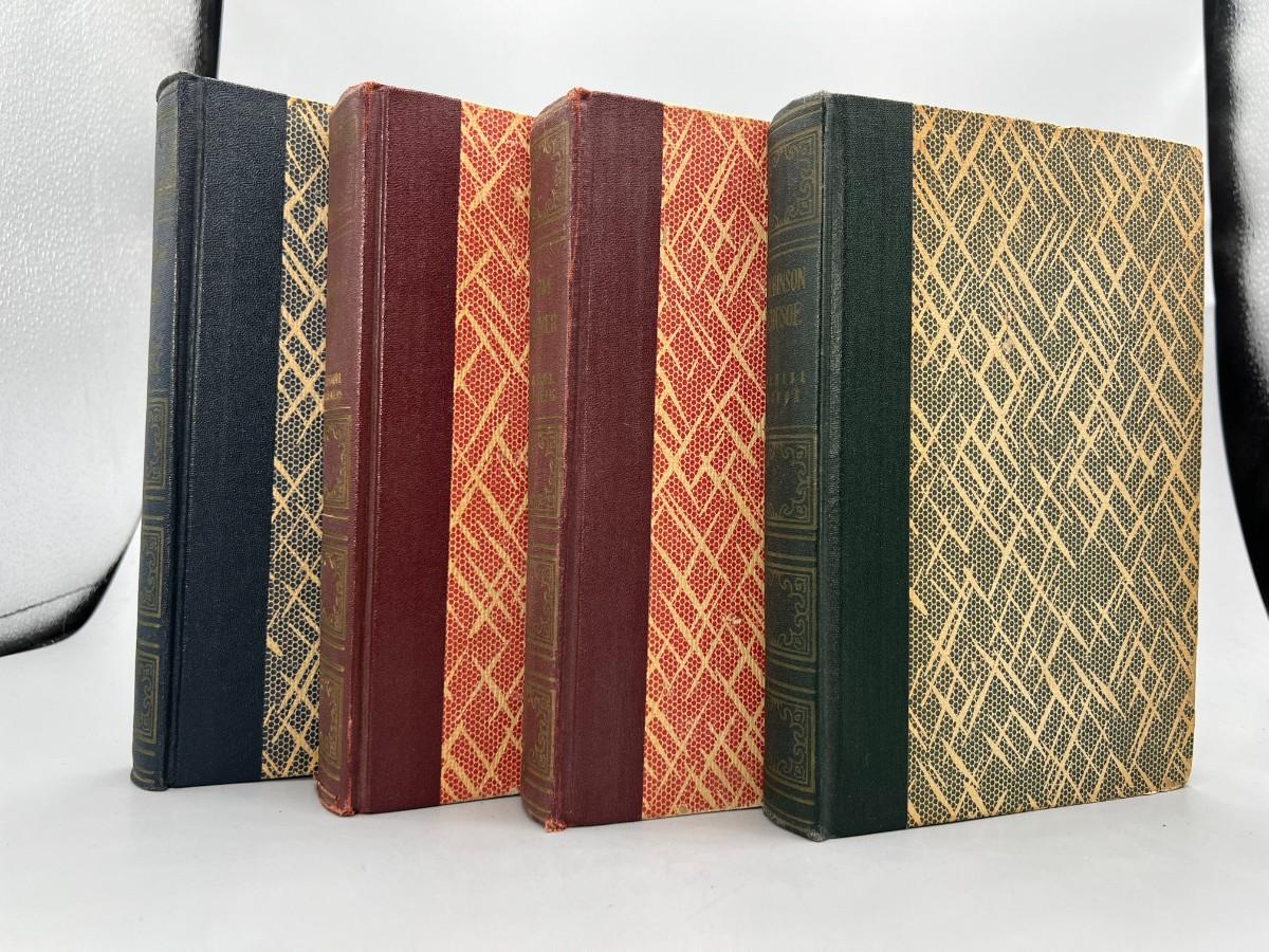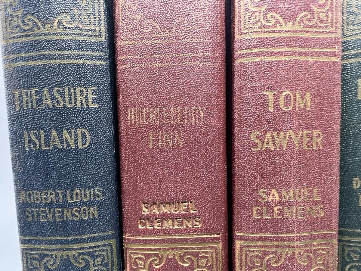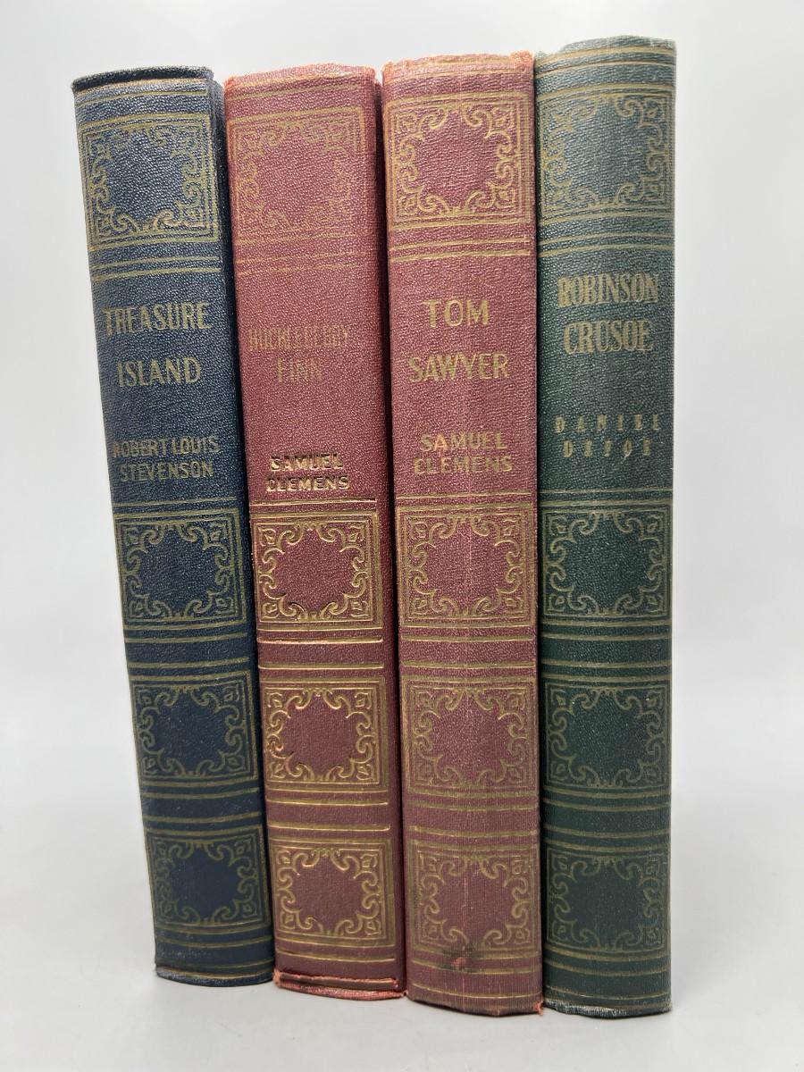 Vintage Book Set of American Classics Treasure Island, Tom Sawyer, Robinson Crusoe, & Huckleberry Finn