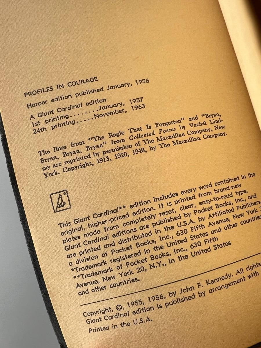 Vintage Political History Book Profiles in Courage by John F. Kennedy Giant Cardinal Pocket Book Edition
