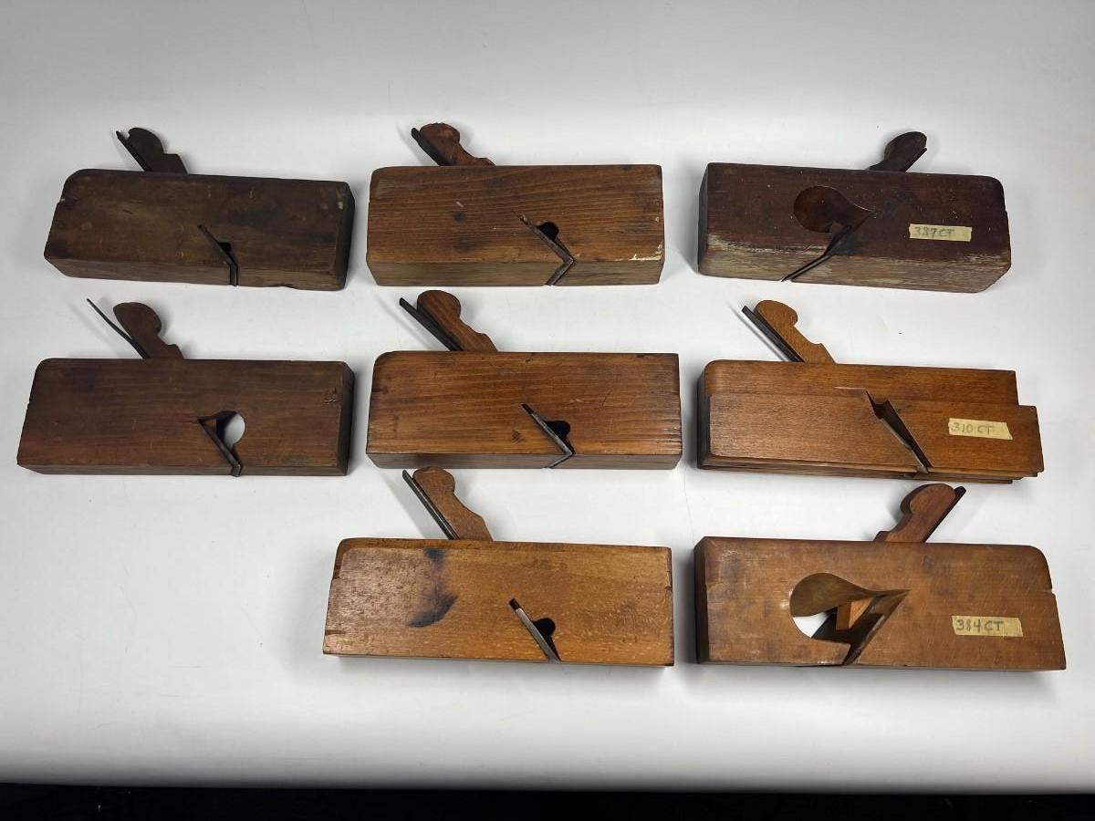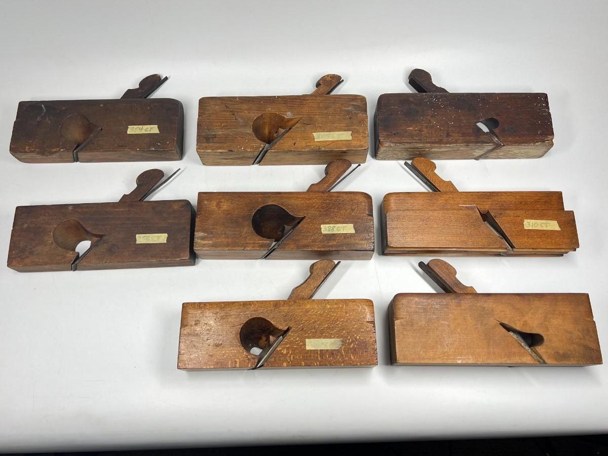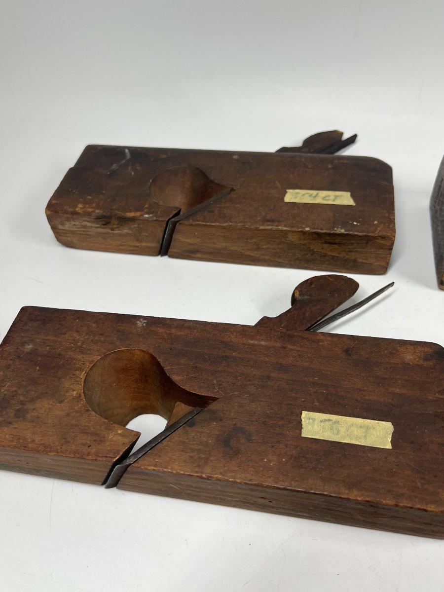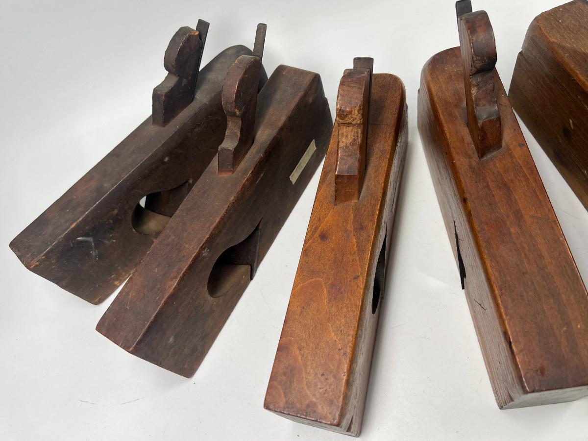 Antique Lot Thick Short Woodworking Tools Jack Block Wooden Hand Grater Marked Planes