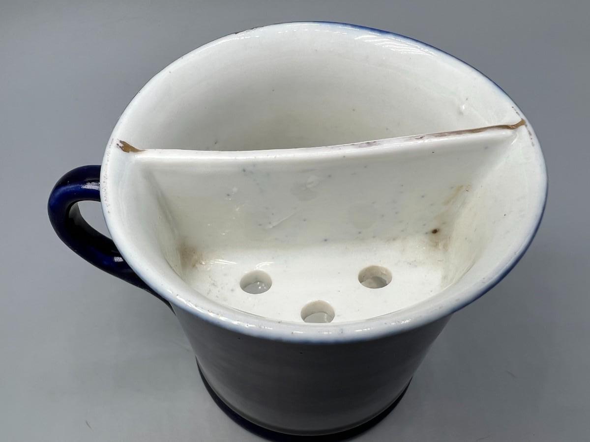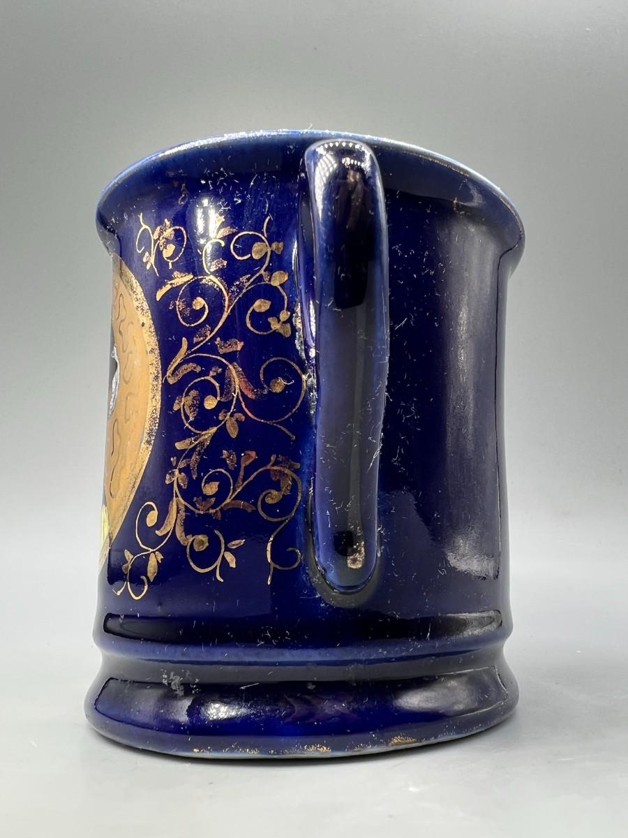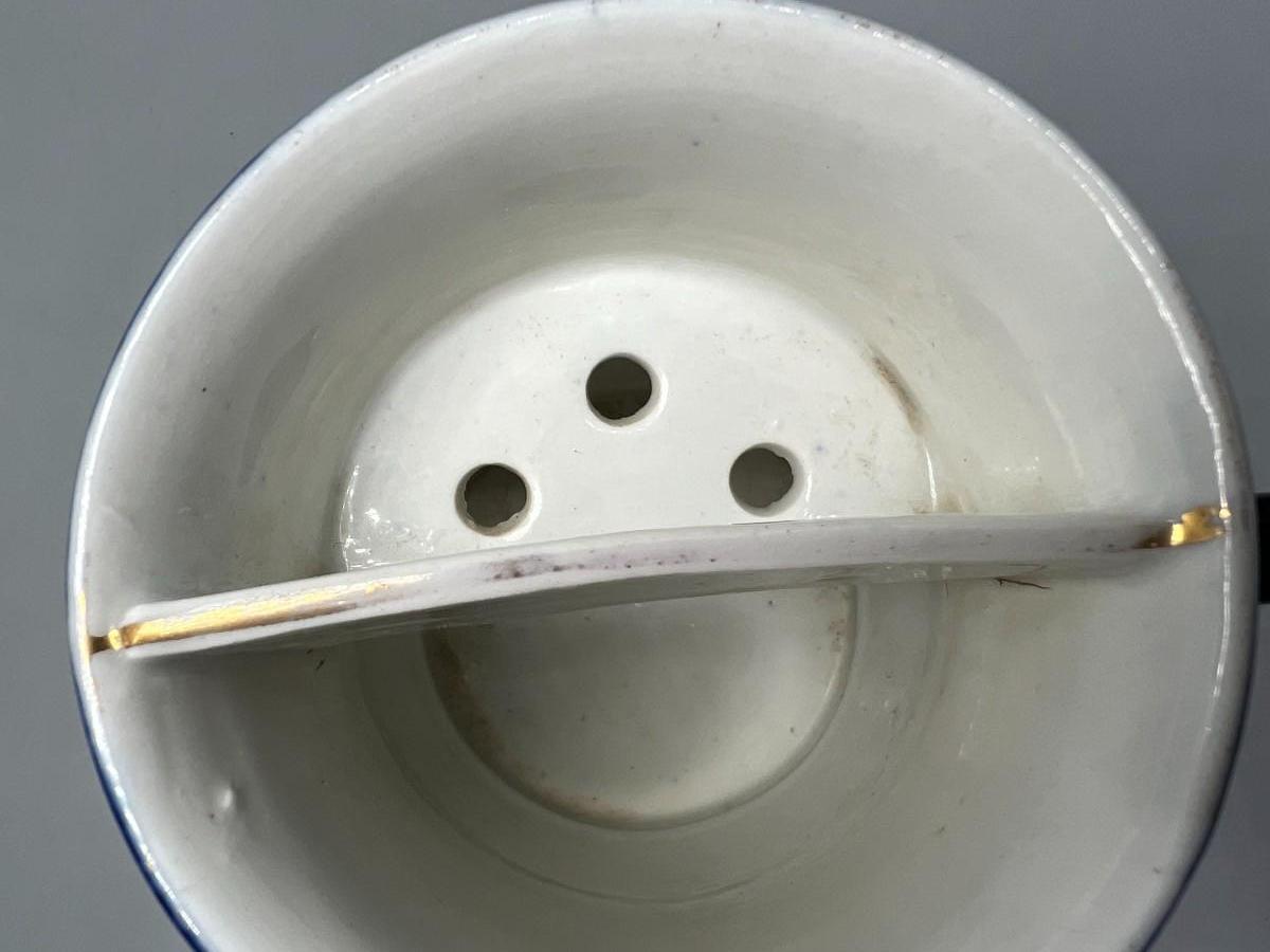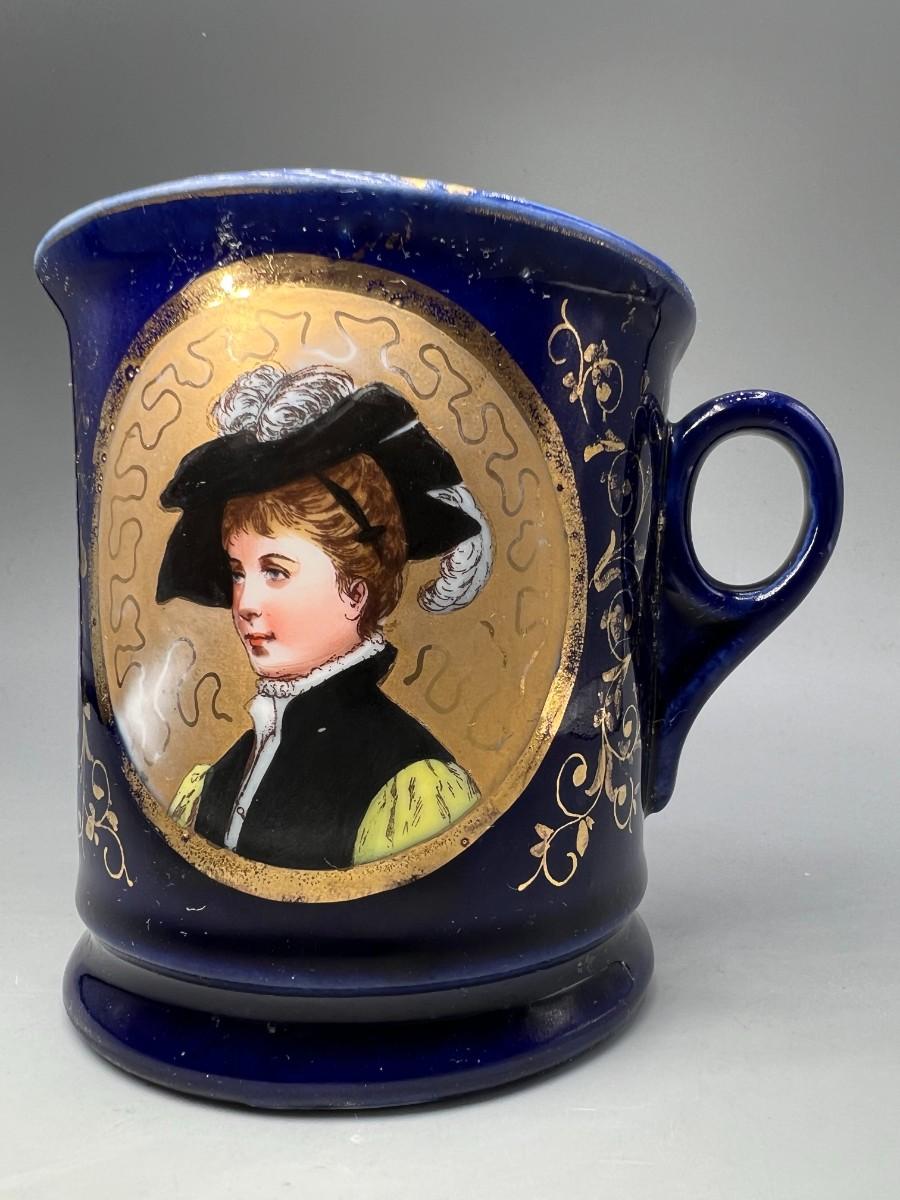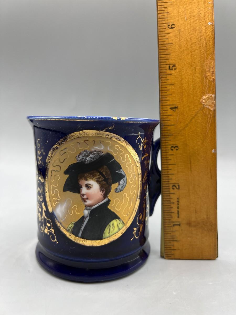 Vintage Hand Painted Porcelain Portrait Woman Hat Plume Gilt Shaving Mug