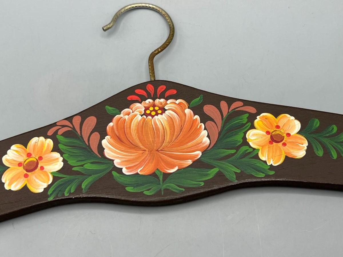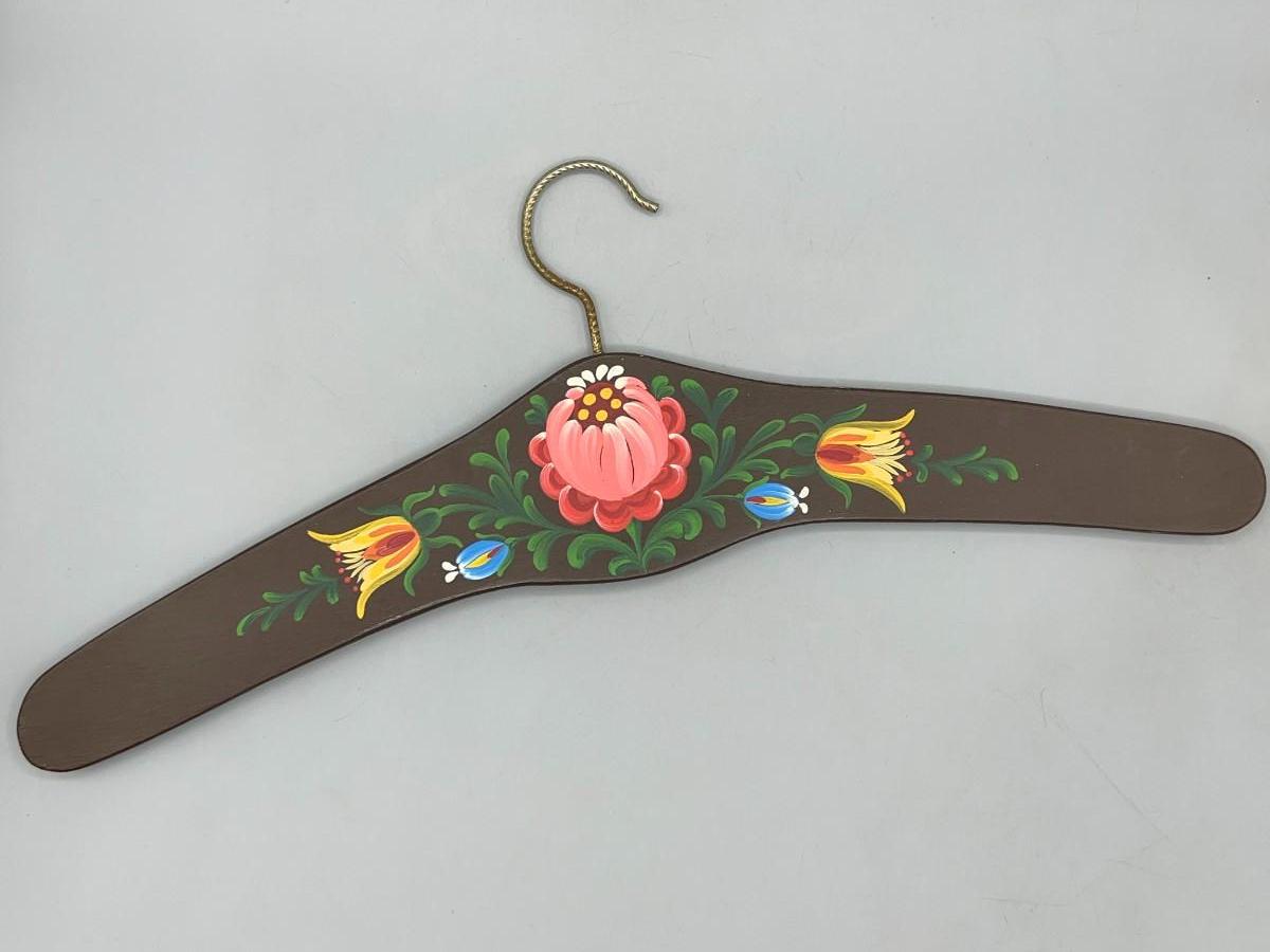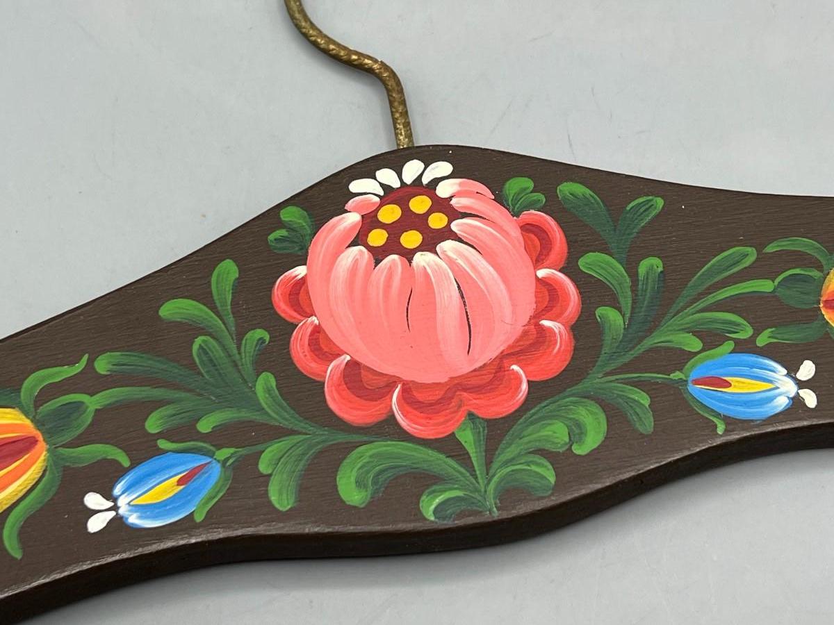 Vintage Hand Painted Fantasy Style Cottagecore Floral Motif Wooden Coat Hanger