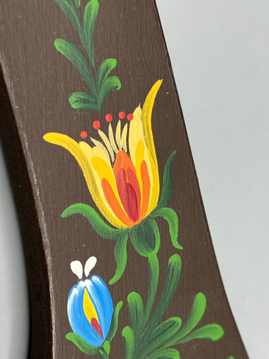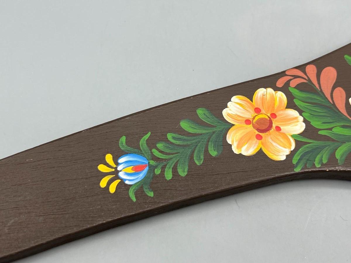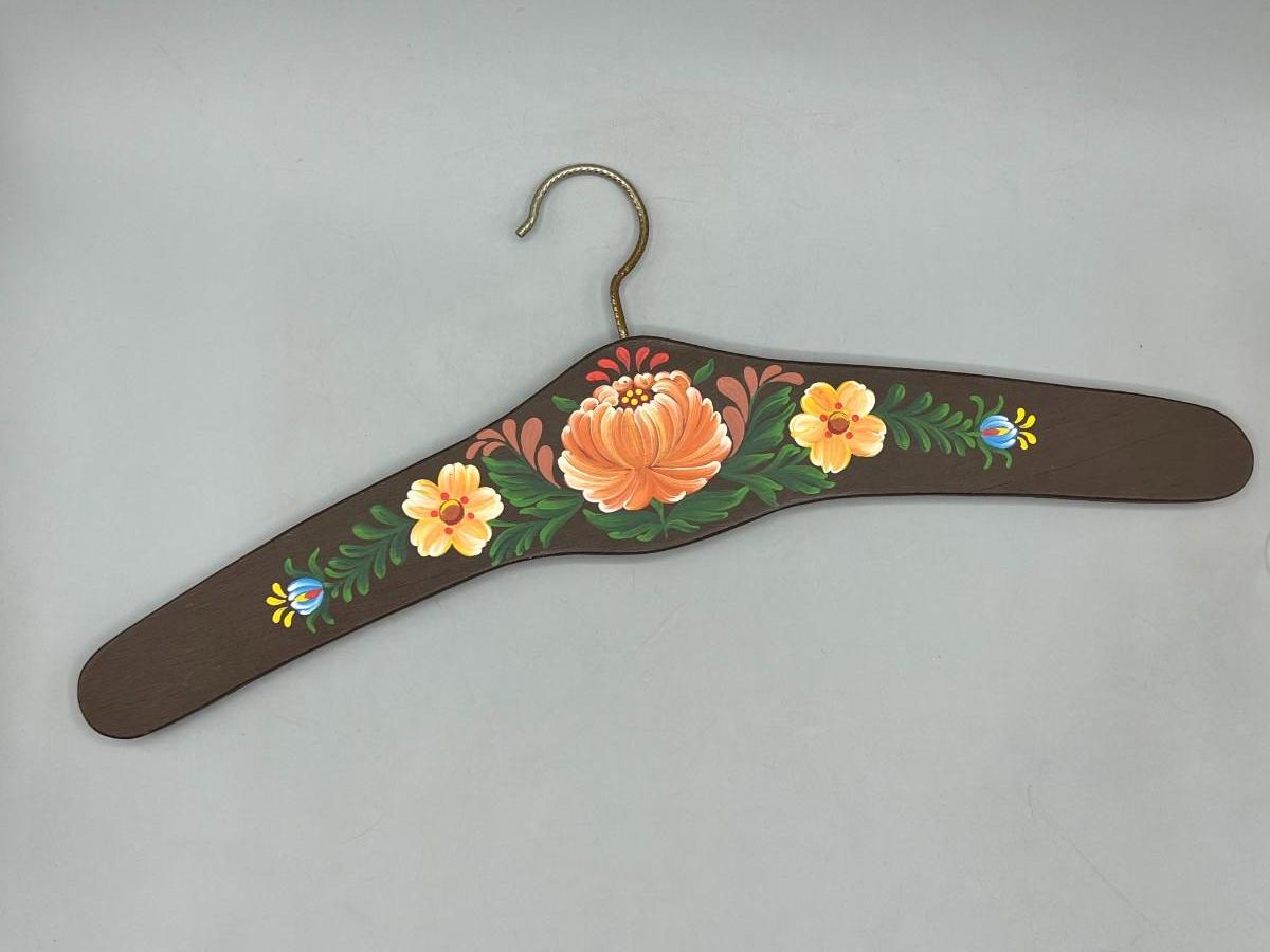 Vintage Hand Painted Fantasy Style Cottagecore Floral Motif Wooden Coat Hanger
