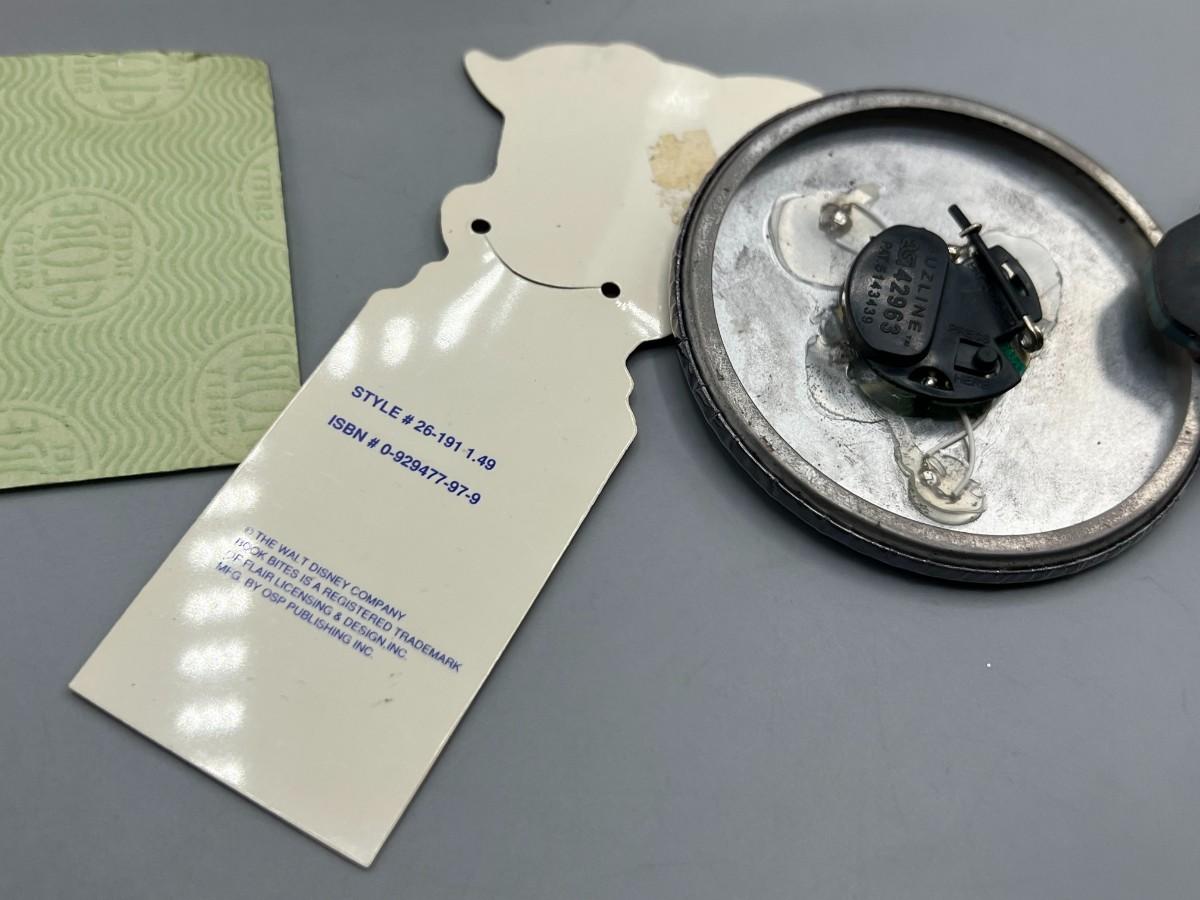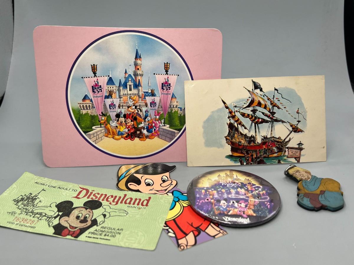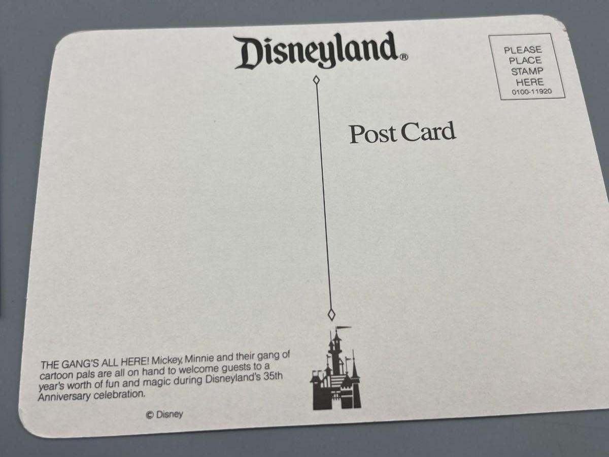There is some of yellowing from age, but no significant damage. The Chicken of the Sea postcard has been written on and is from Disneyland's opening day according to the note on it naming 3 people who snuck into the park. The light up pin does not work, check pictures for more details and for sizing.