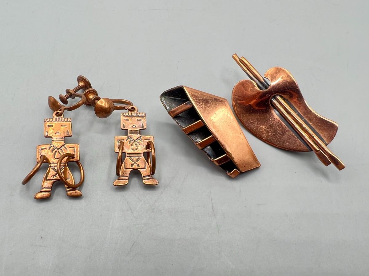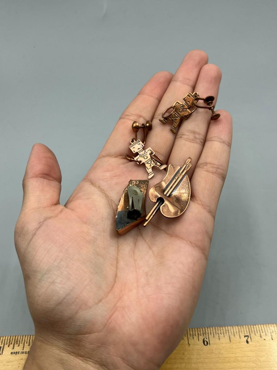 Vintage Southwest Kachina Doll Figure Jewelry Earrings & Italian Abstract Musical Earrings