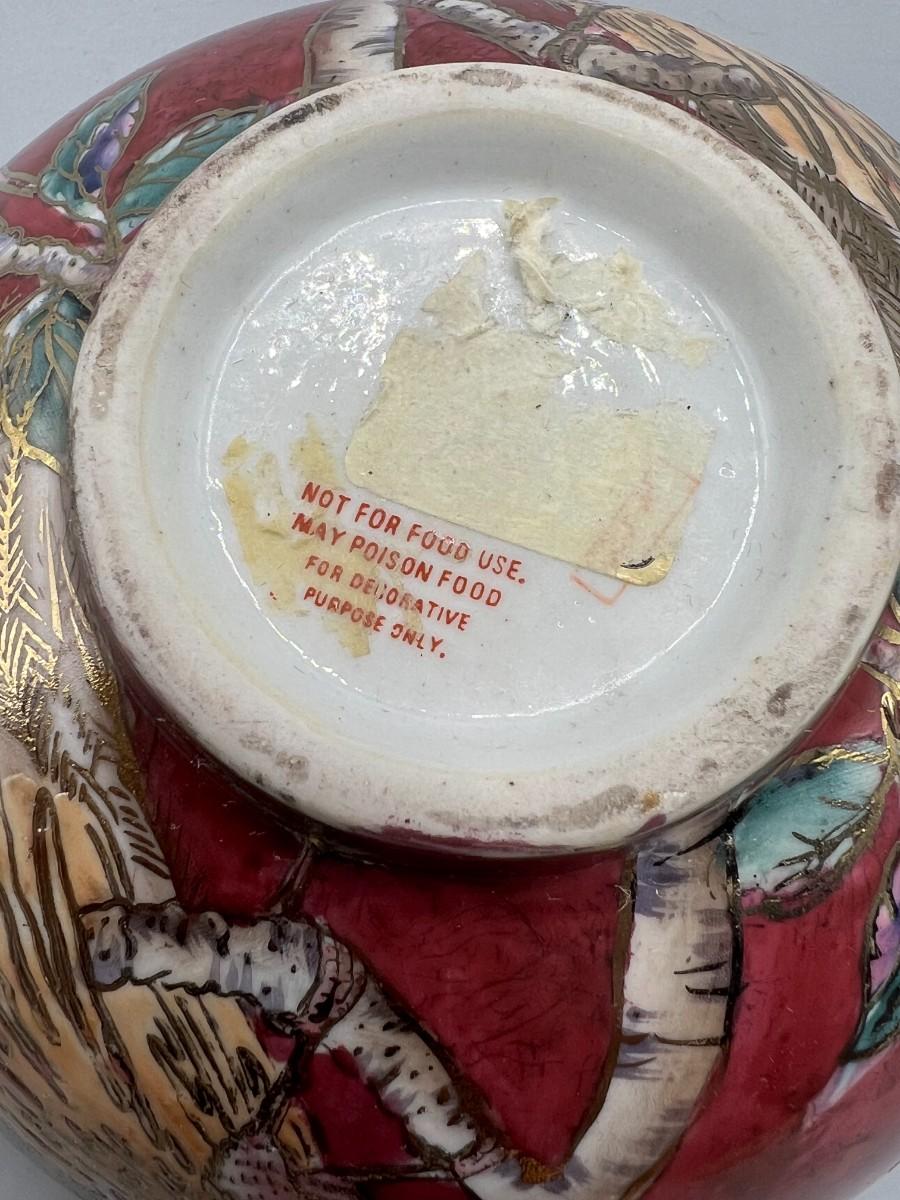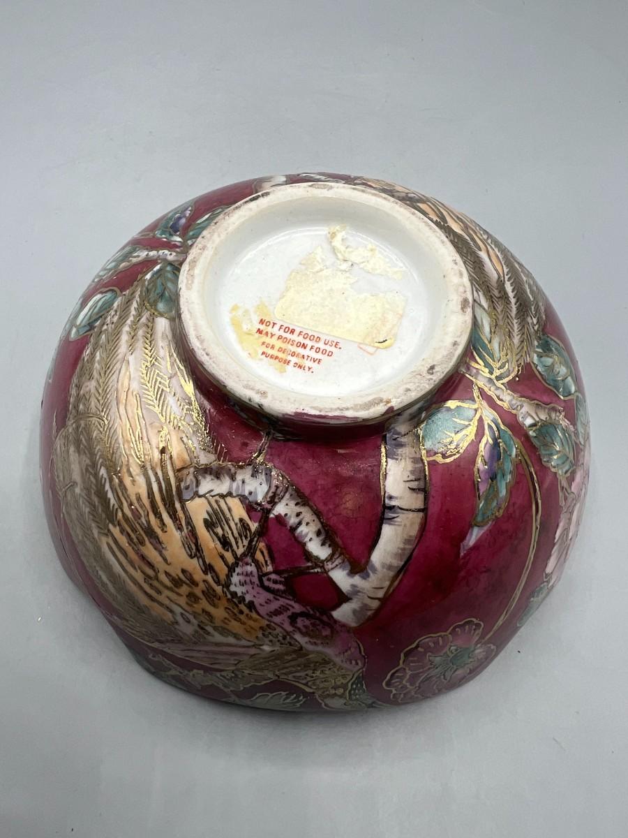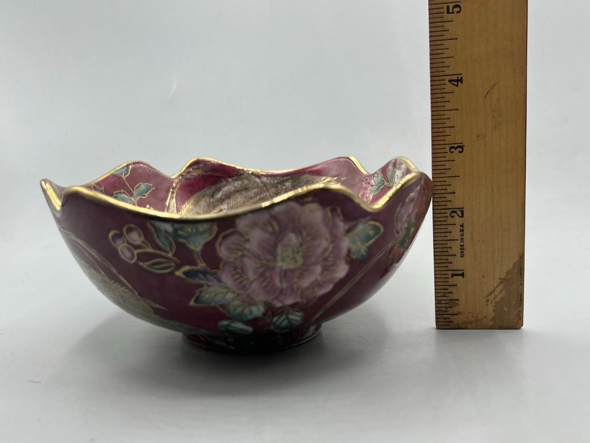 Vintage Porcelain Pottery Art Oriental Gold Trim Decorative bowl