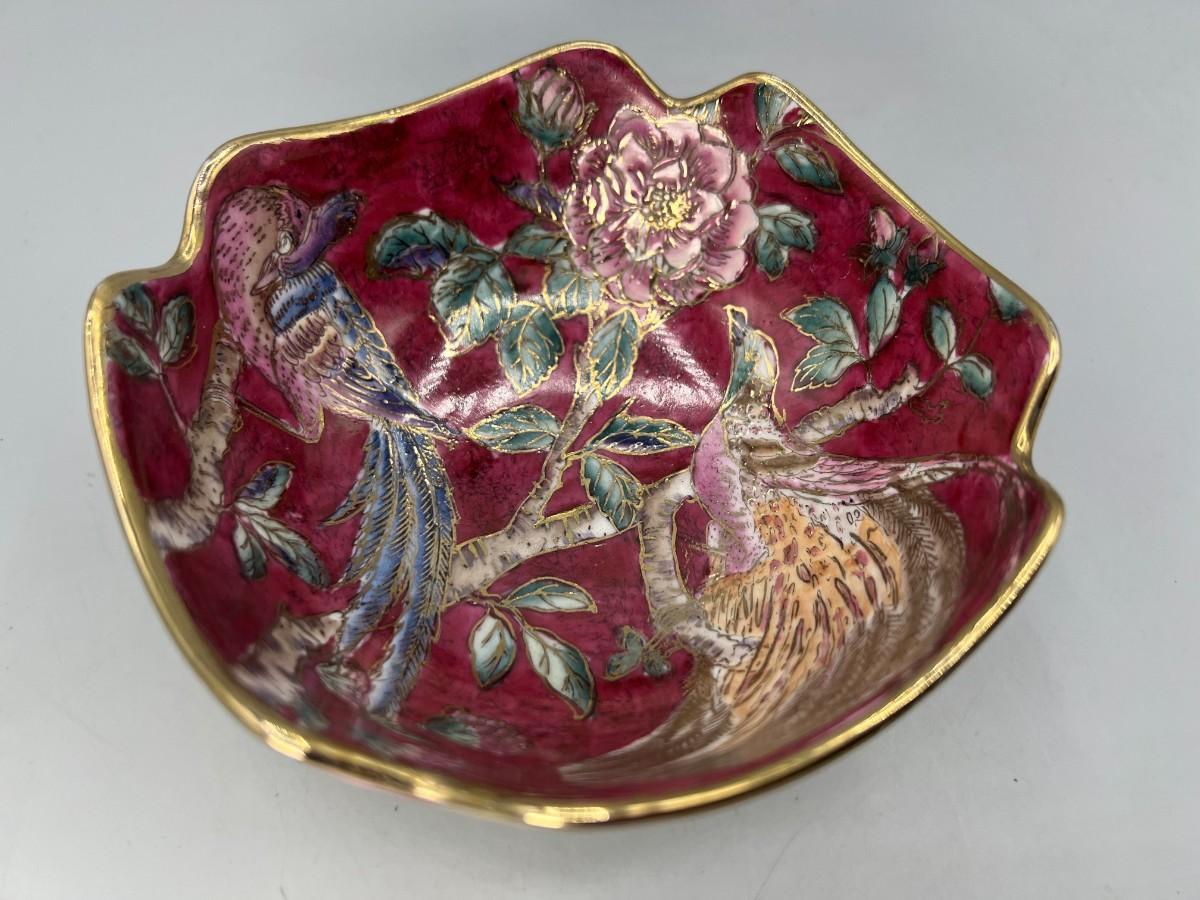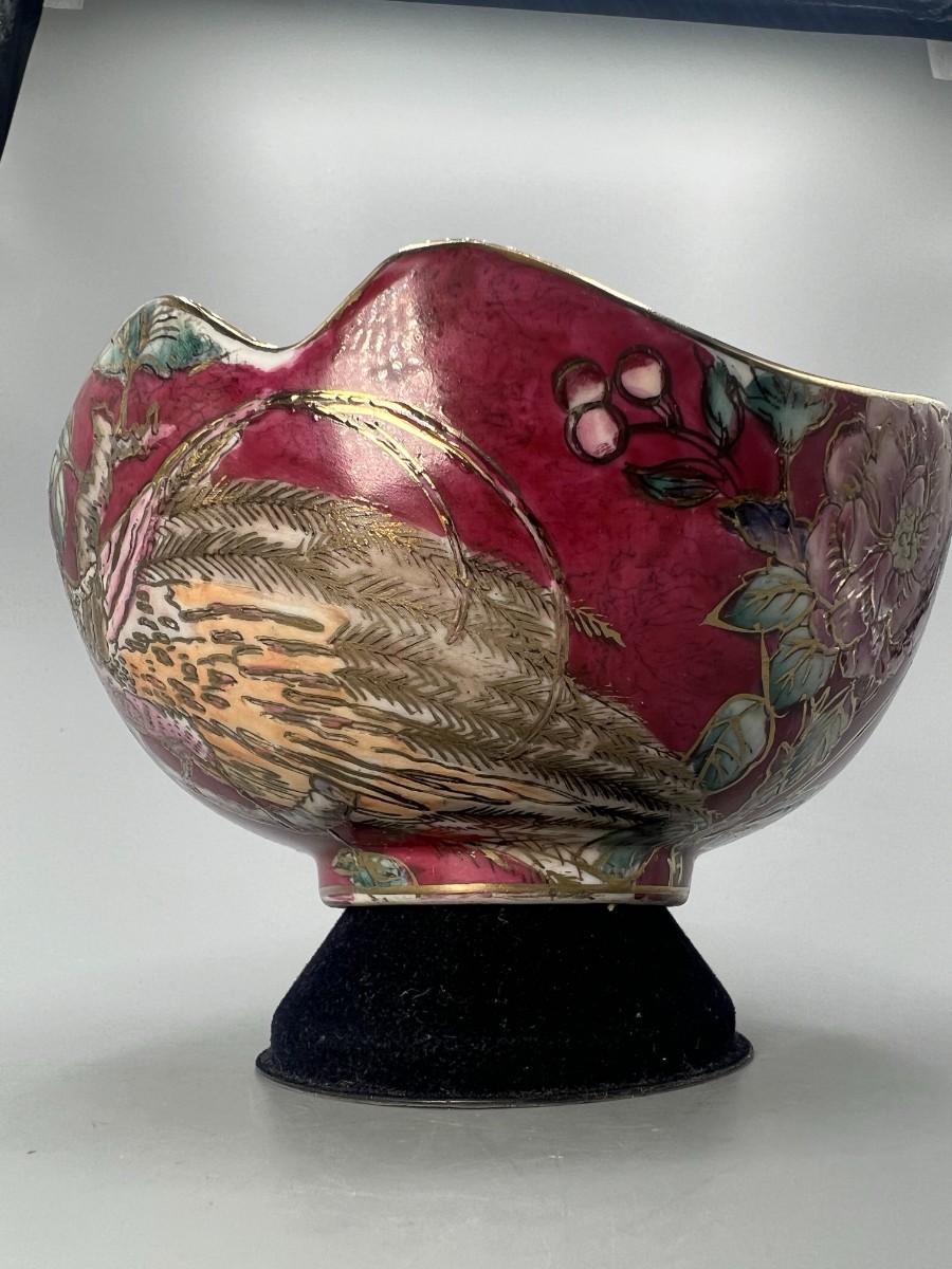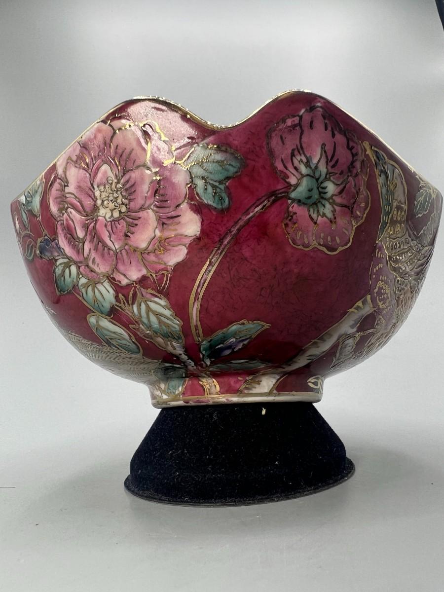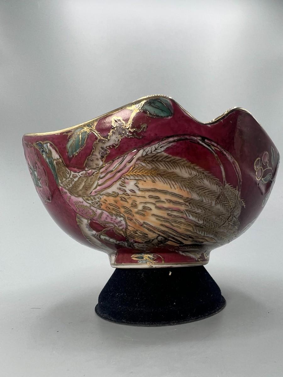 Vintage Porcelain Pottery Art Oriental Gold Trim Decorative bowl