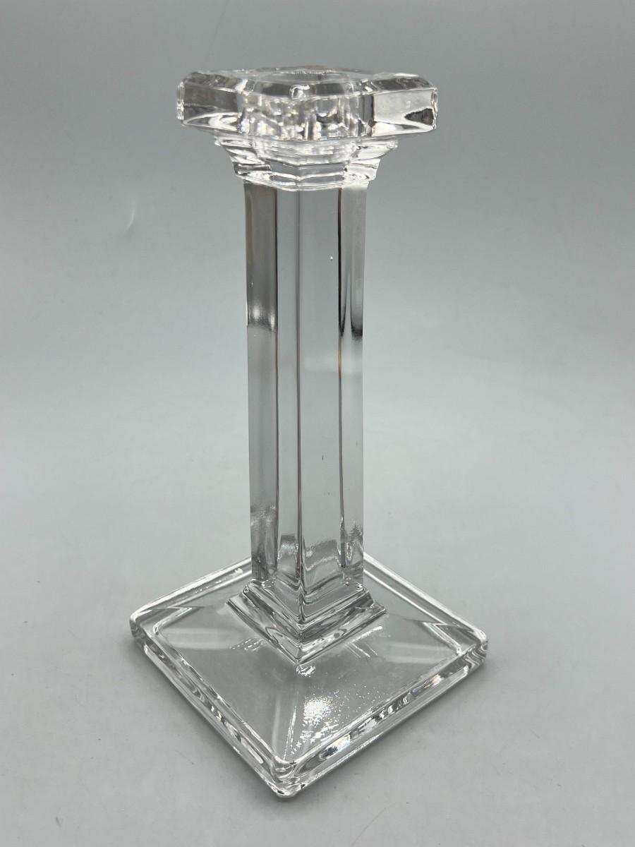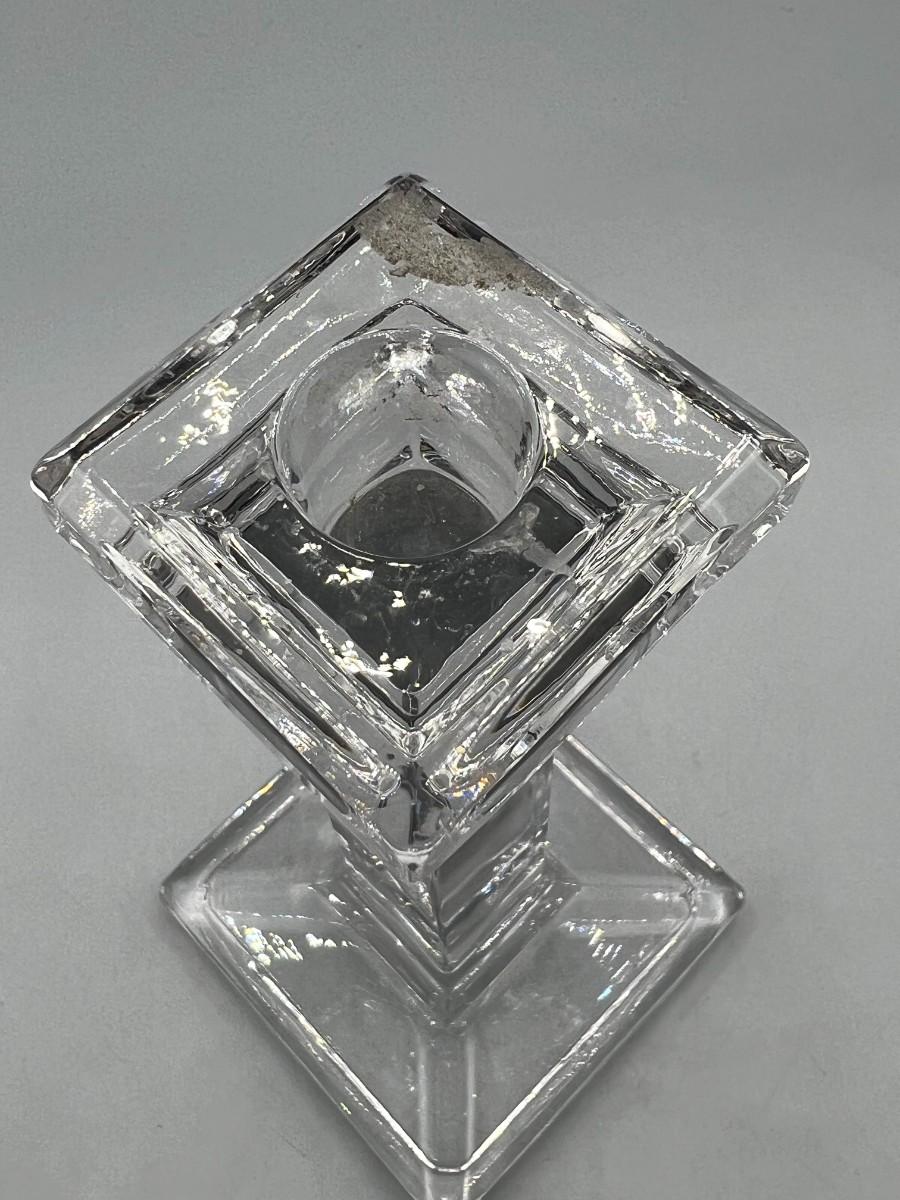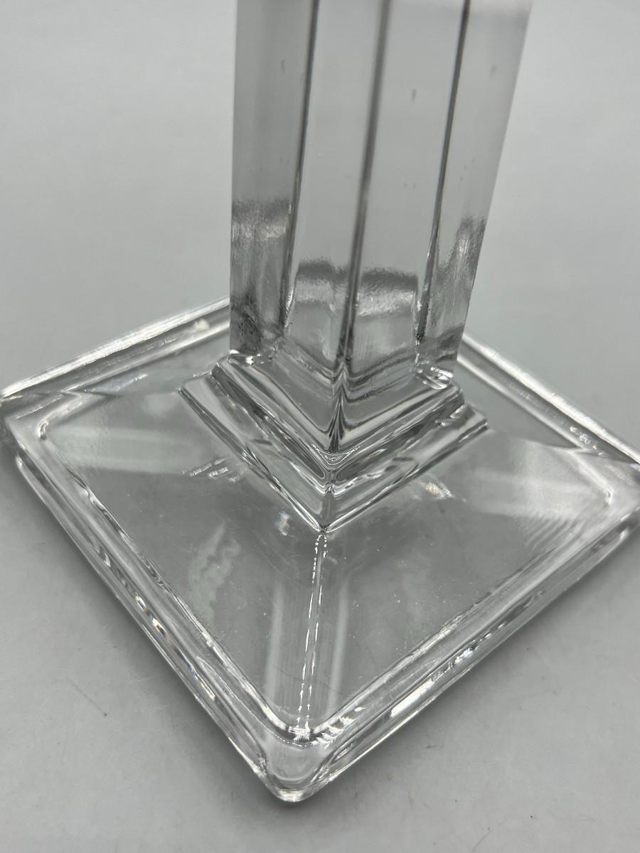 Retro Glass Art Deco Clear Mid Century Squared Off Single Candle Stick Holder