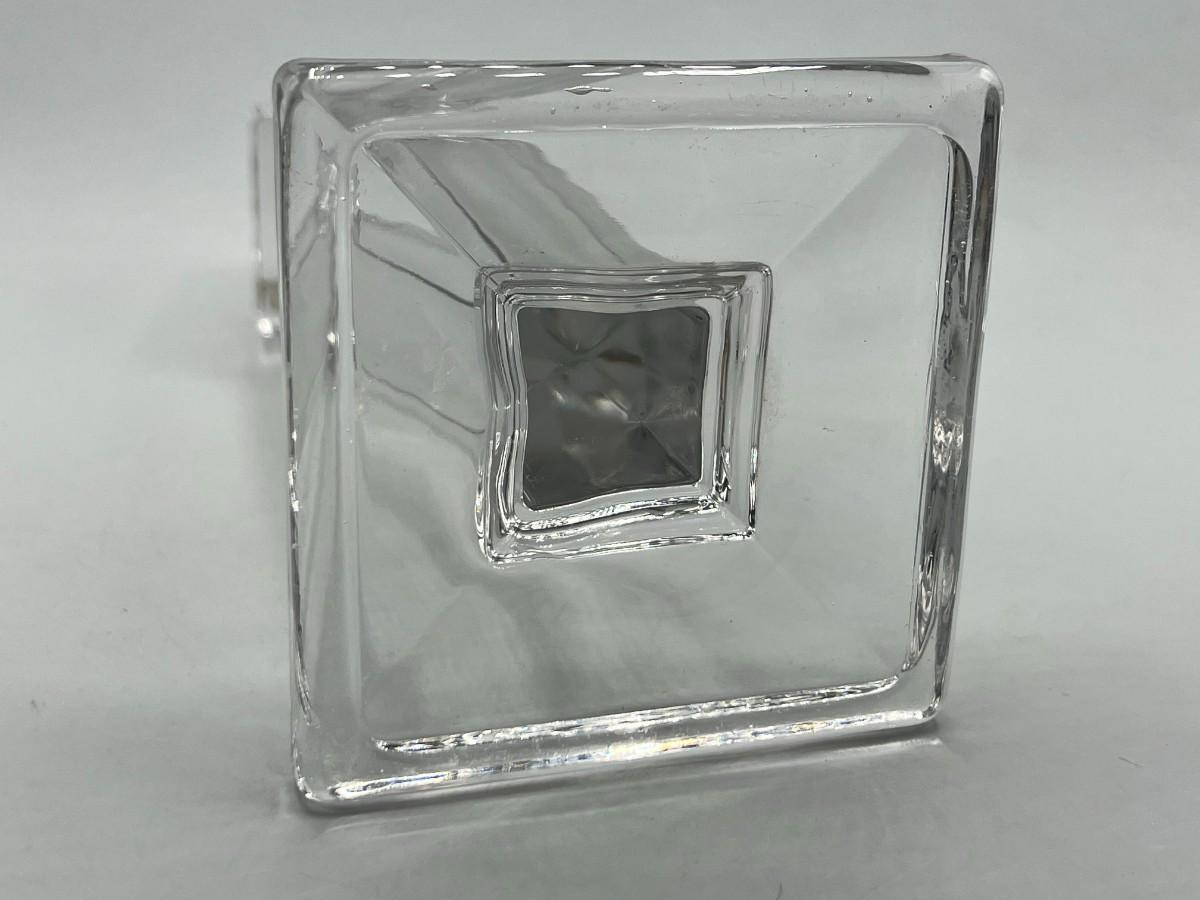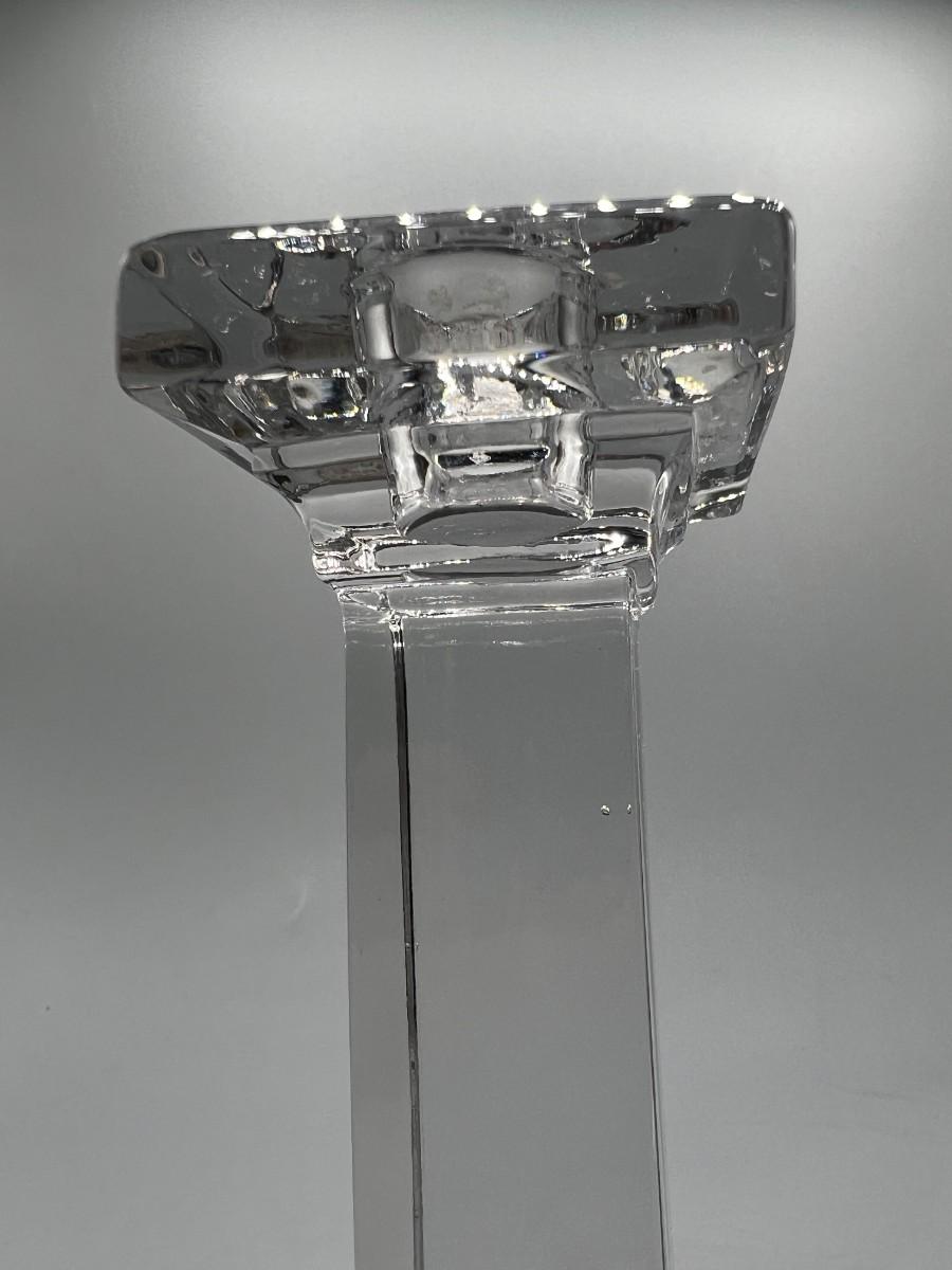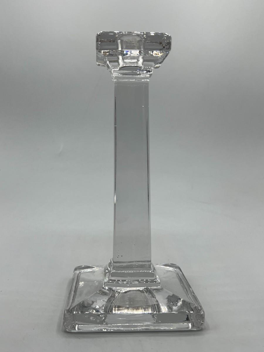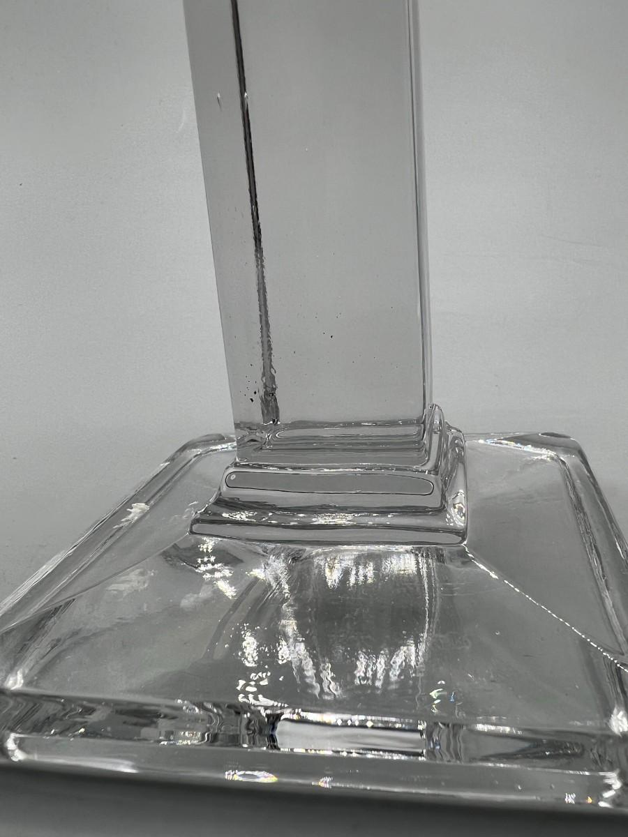 Retro Glass Art Deco Clear Mid Century Squared Off Single Candle Stick Holder