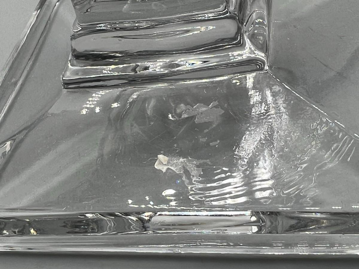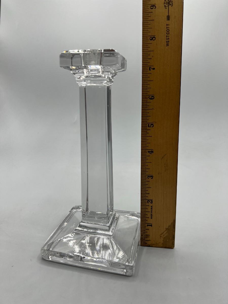 There is no significant damage to the glass and is in overall good collectible or displayable condition. The glass candlestick has some good weight to it. Check pictures for more details and for sizing.