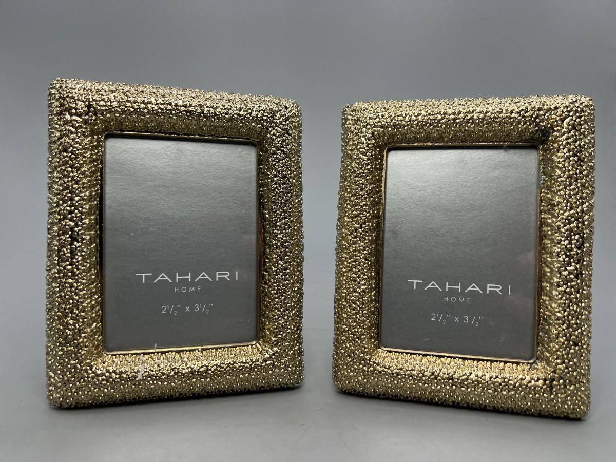 Pair of Small Tahari Home Modern Decor Gold Picture Frames