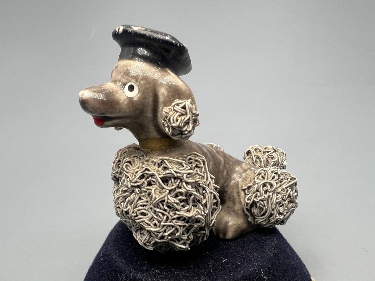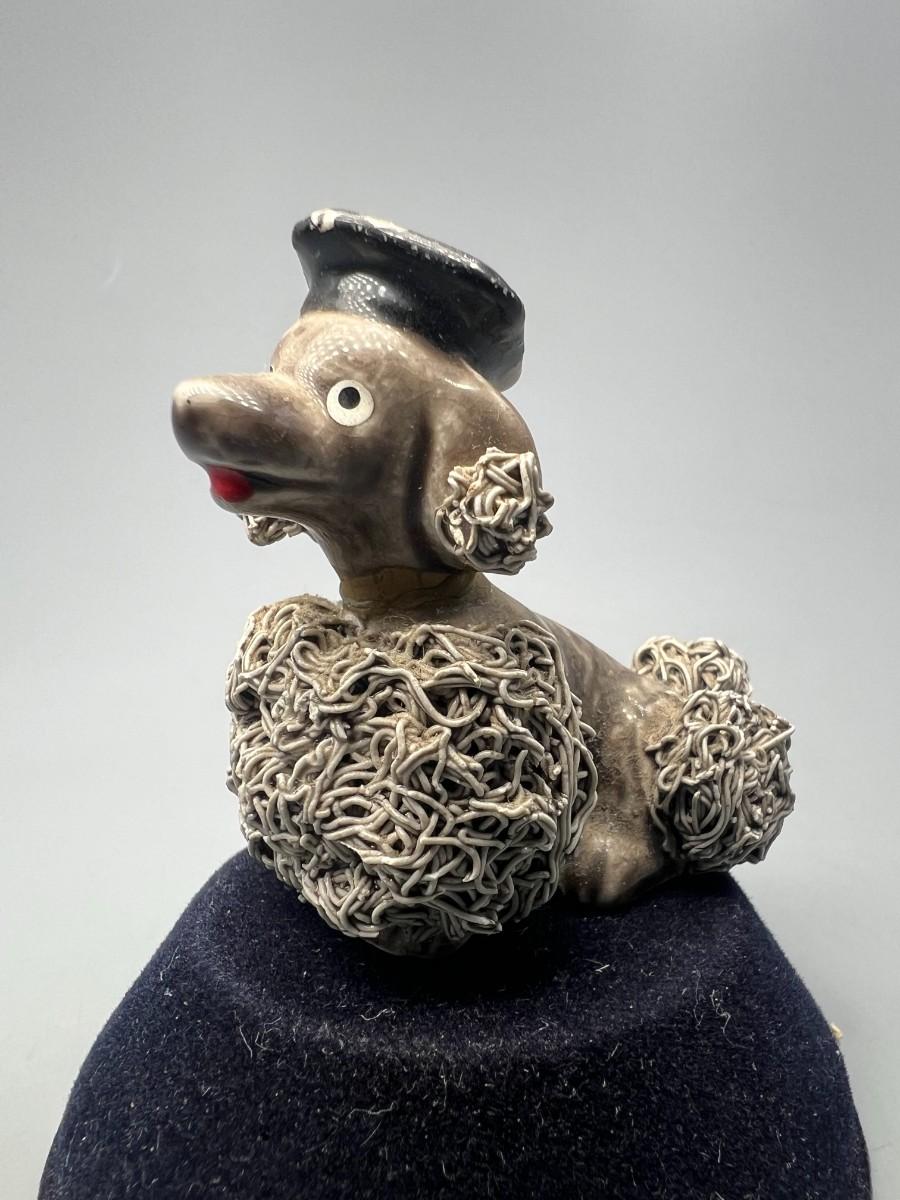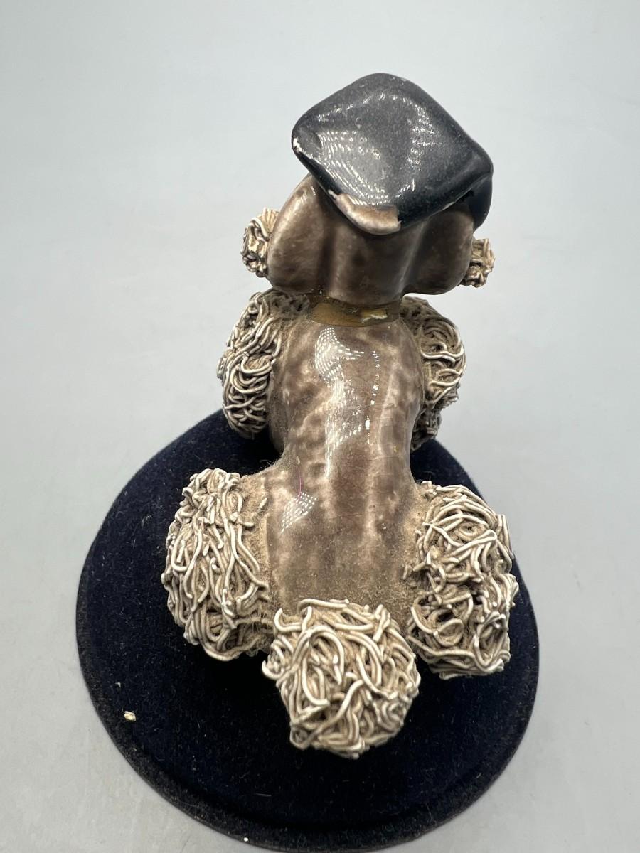 Small Vintage Ceramic Art Spaghetti Textured Beret Wearing Dog Figurine