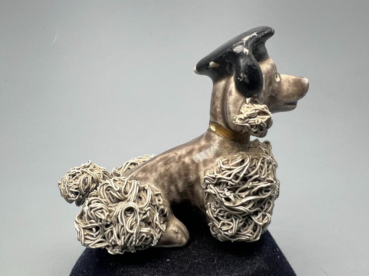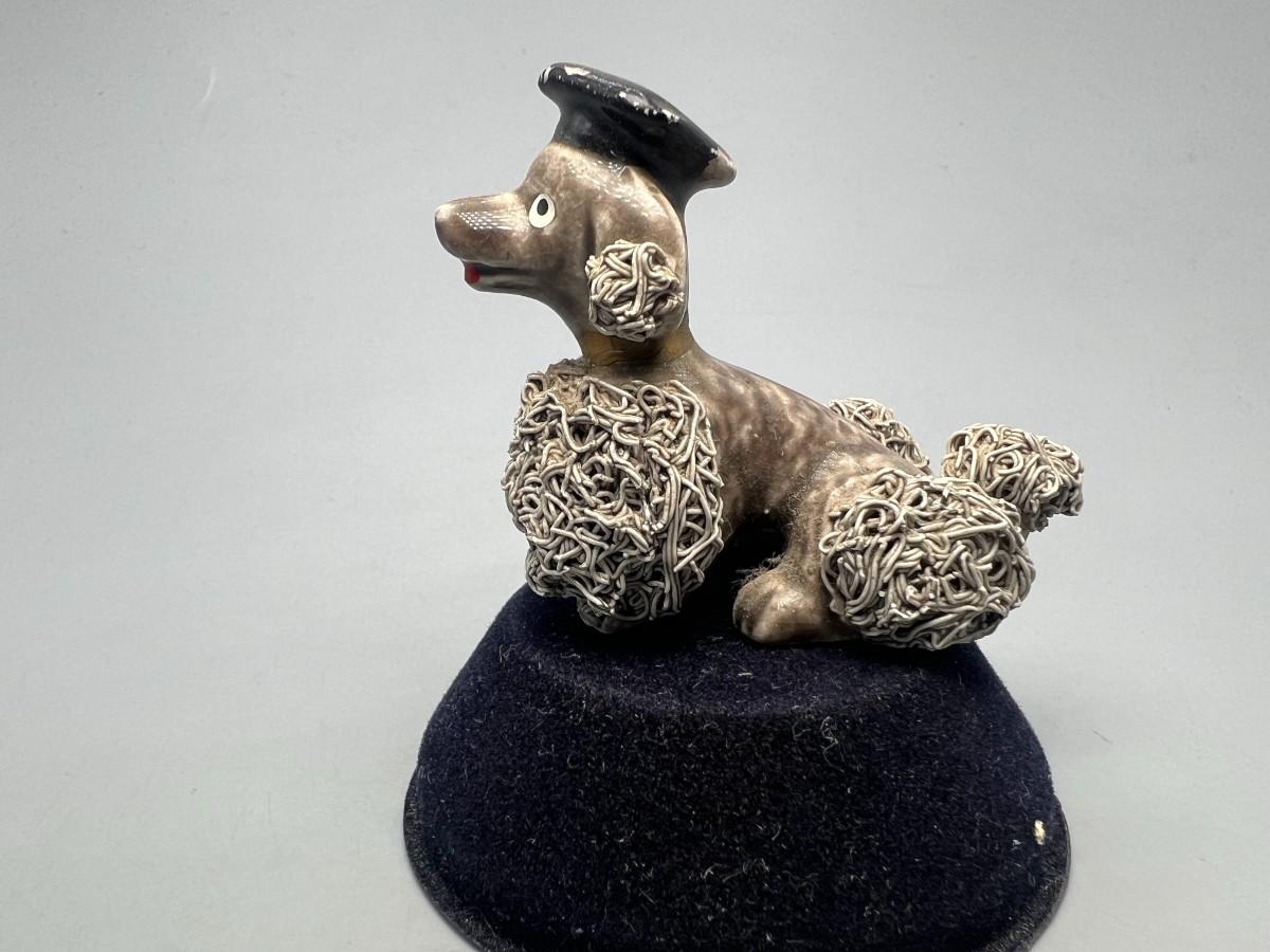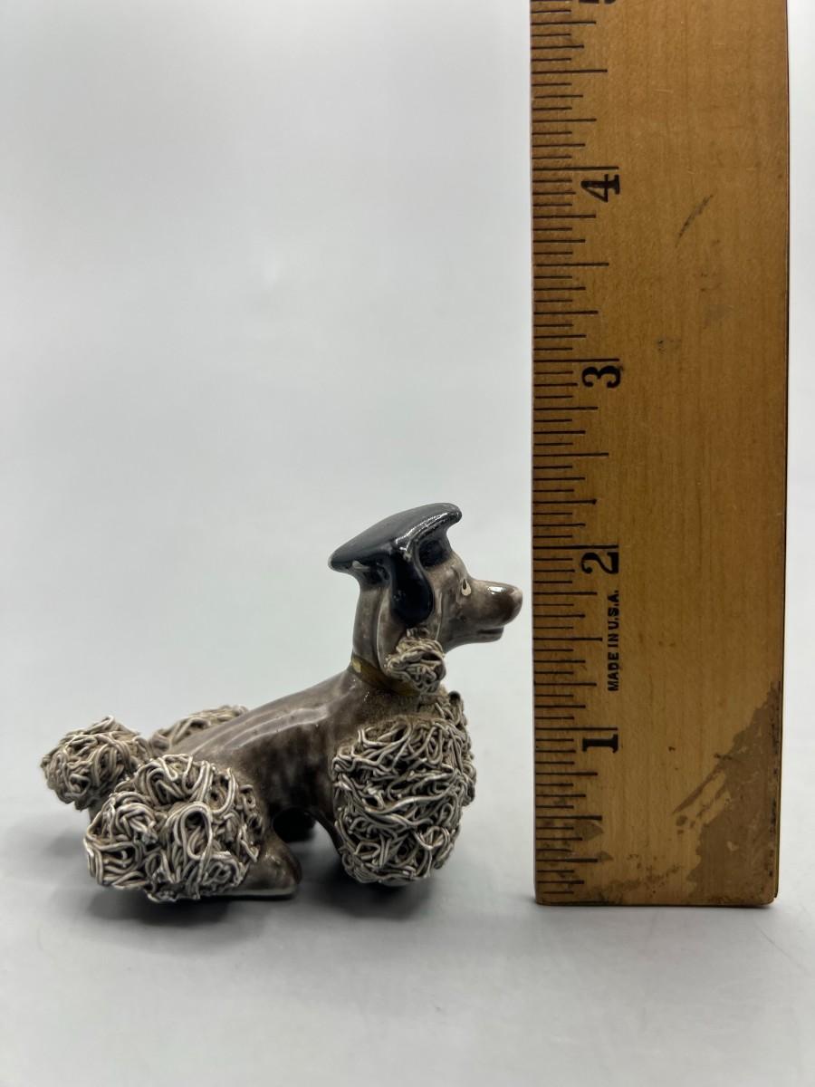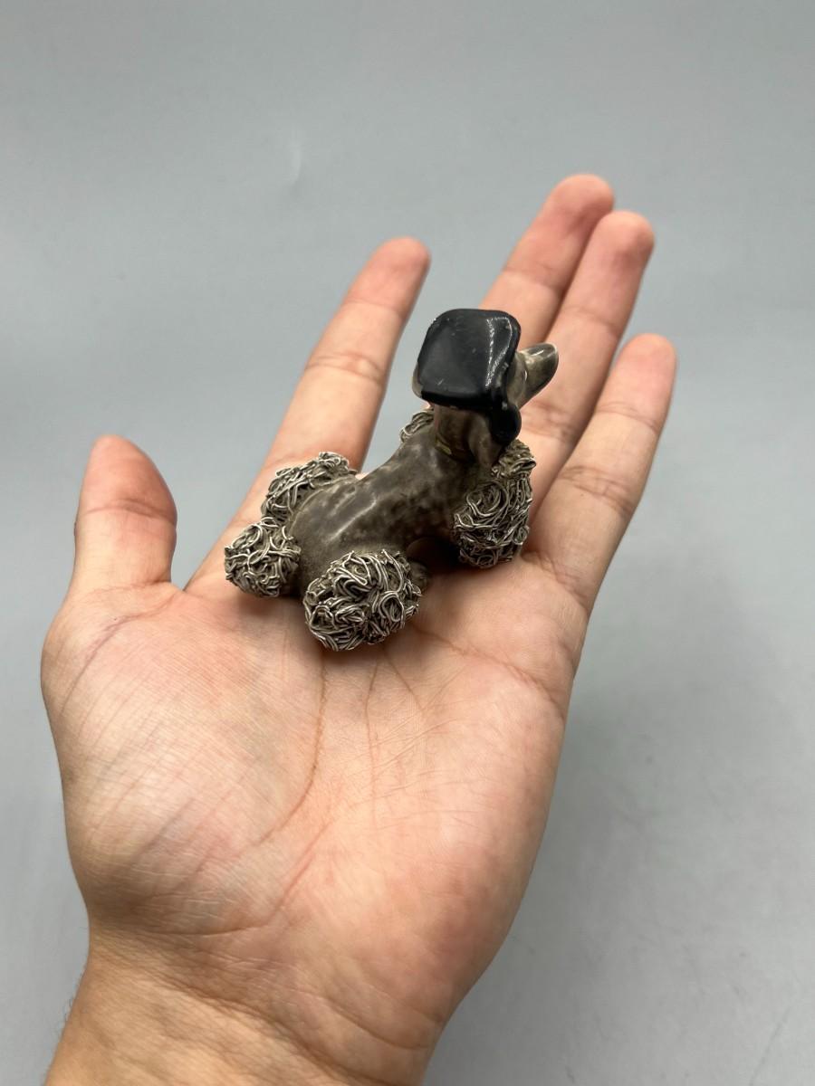 Small Vintage Ceramic Art Spaghetti Textured Beret Wearing Dog Figurine