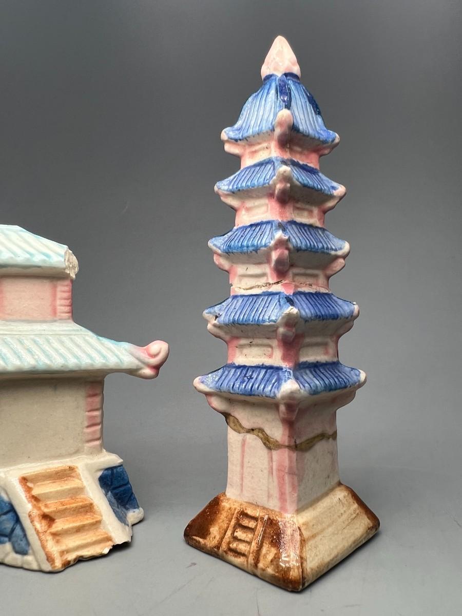 Small Vintage Trinket Japanese Pagoda Structure Buildings Figurines