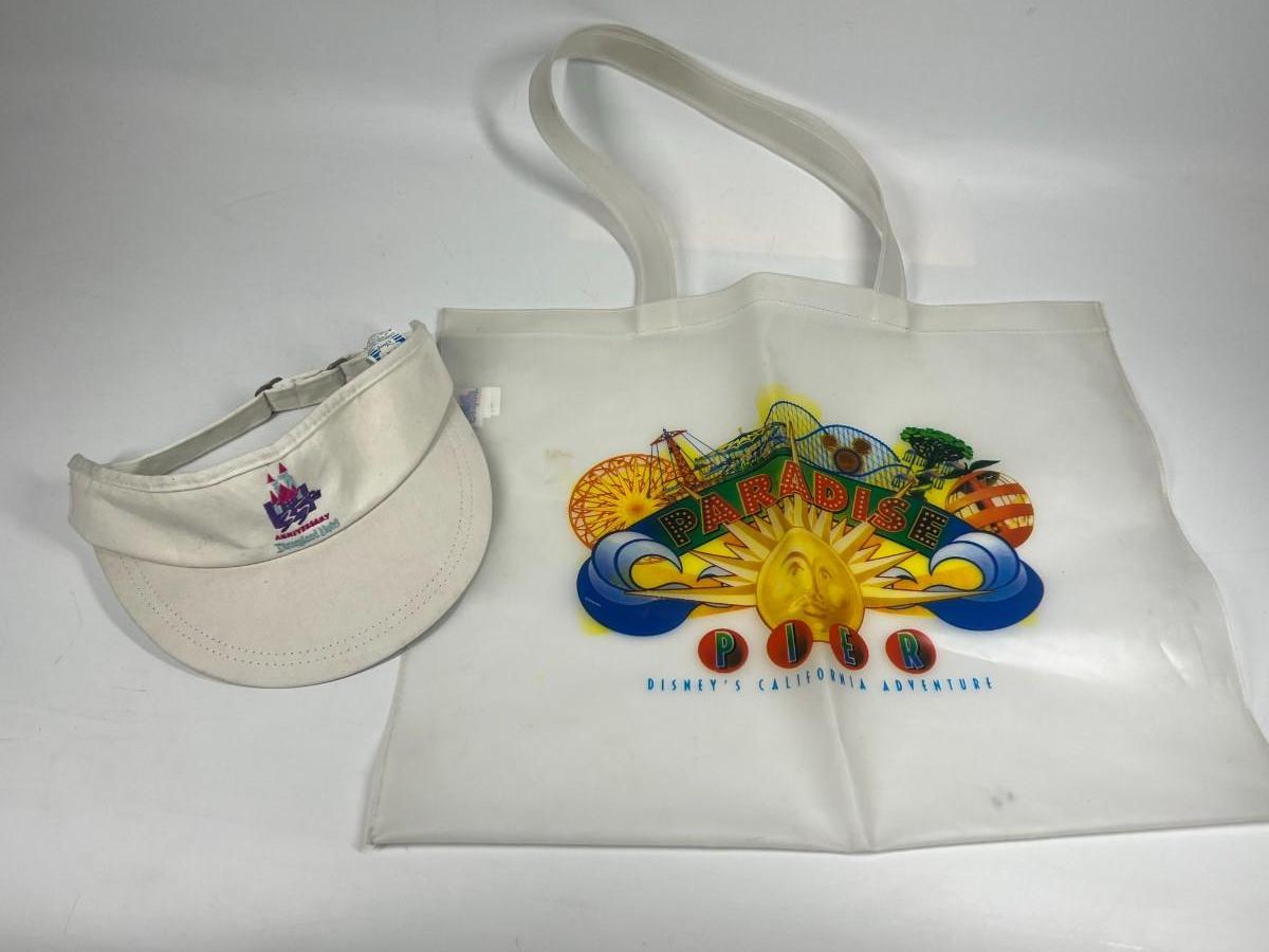 Retro Anniversary Disneyland Hotel Cap Visor & California Adventure Paradise Pier Plastic Rubber Waterproof Bag