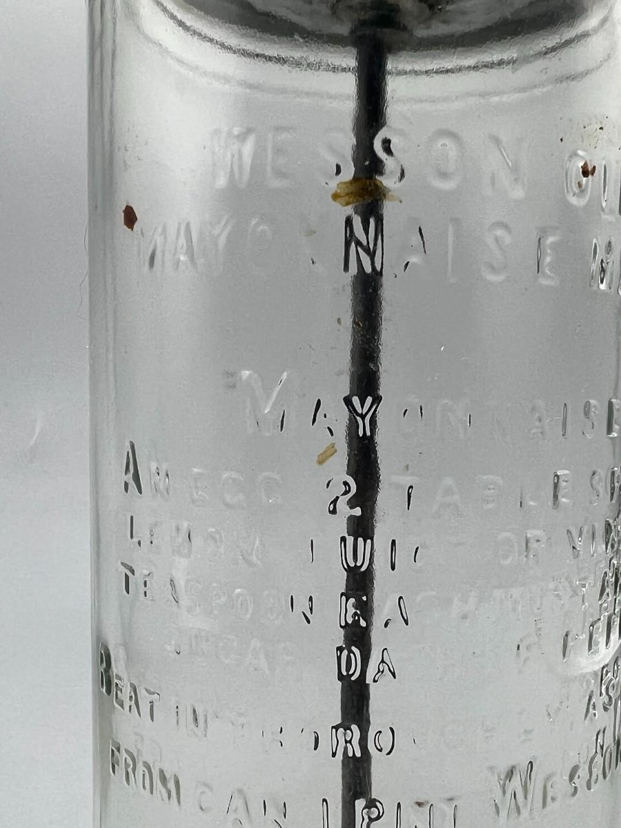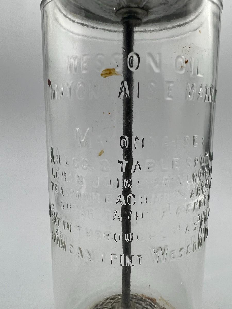 Vintage Wesson Oil Company Glass Mayonnaise Embossed Recipe Plunging Making Jar