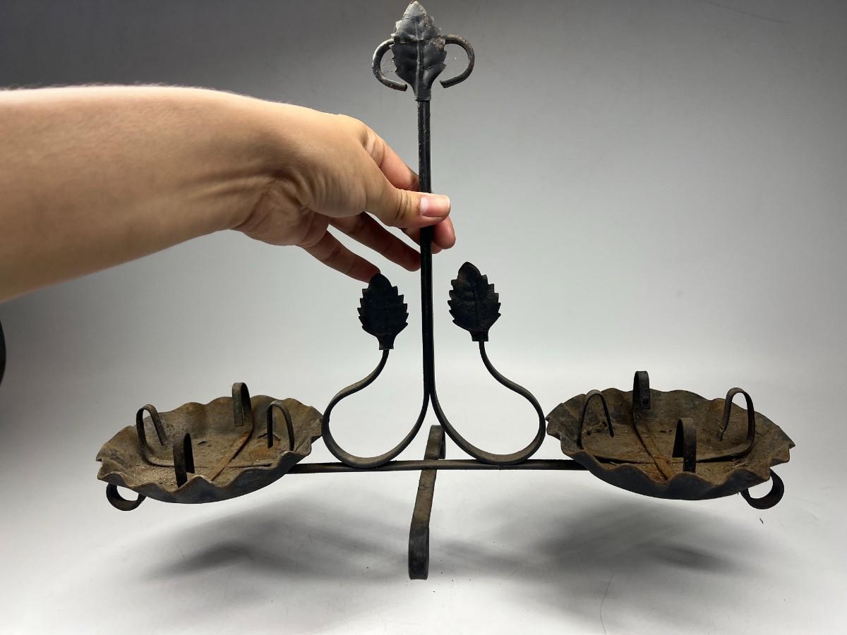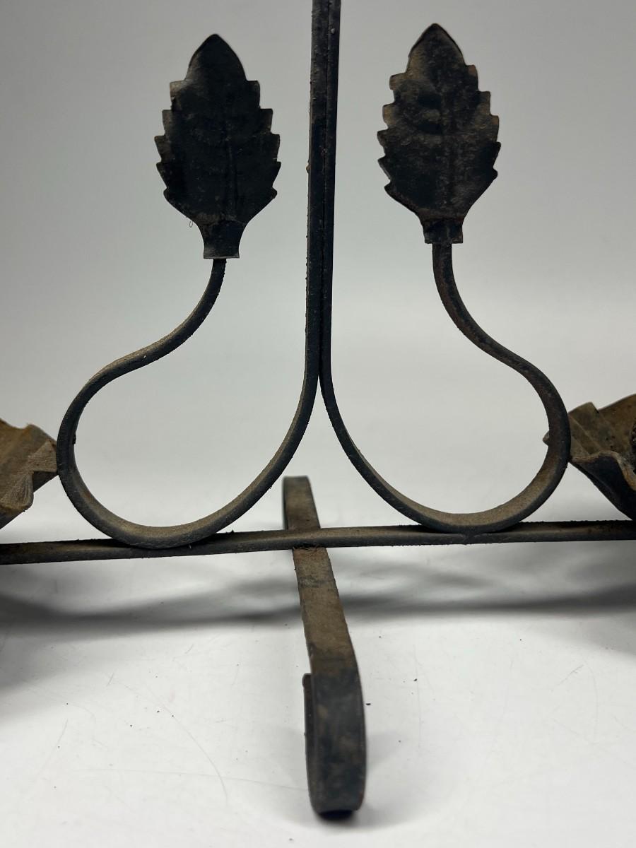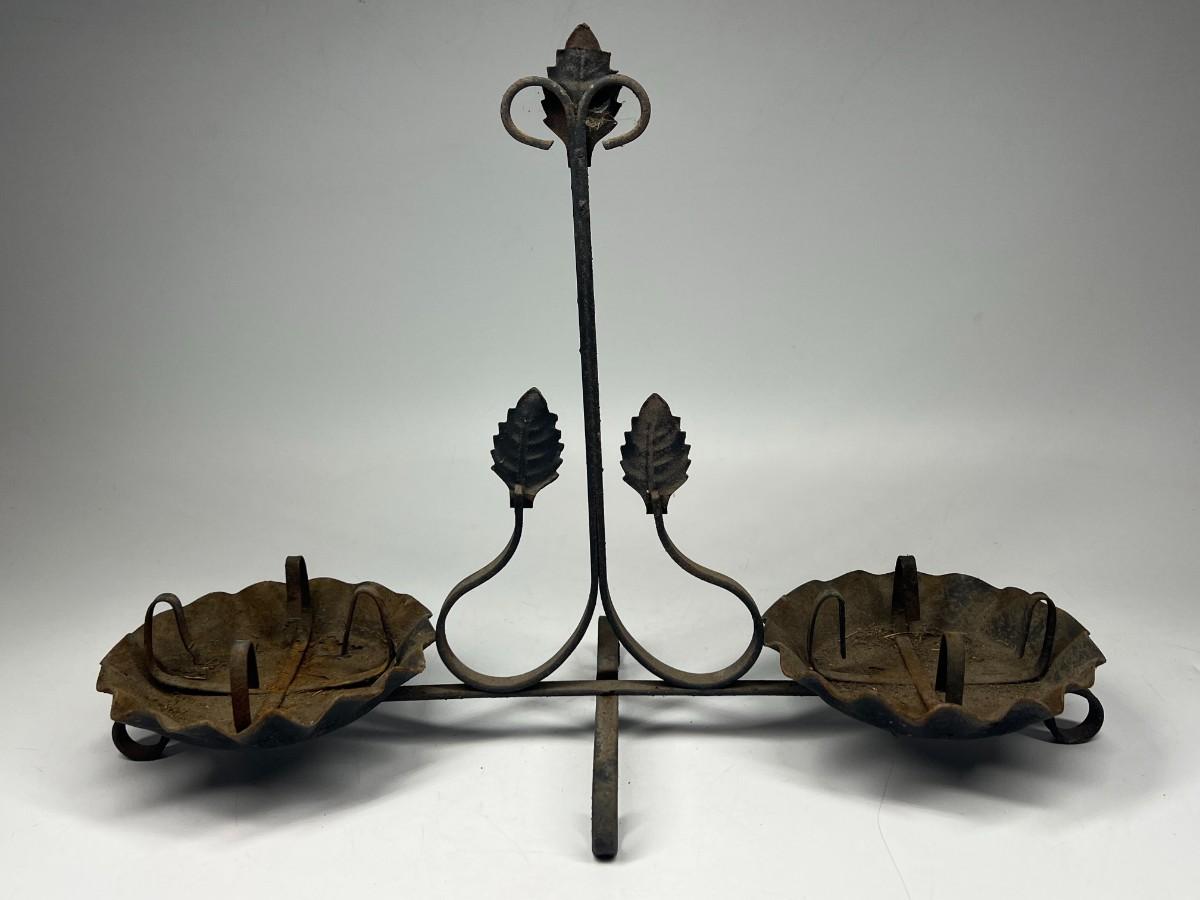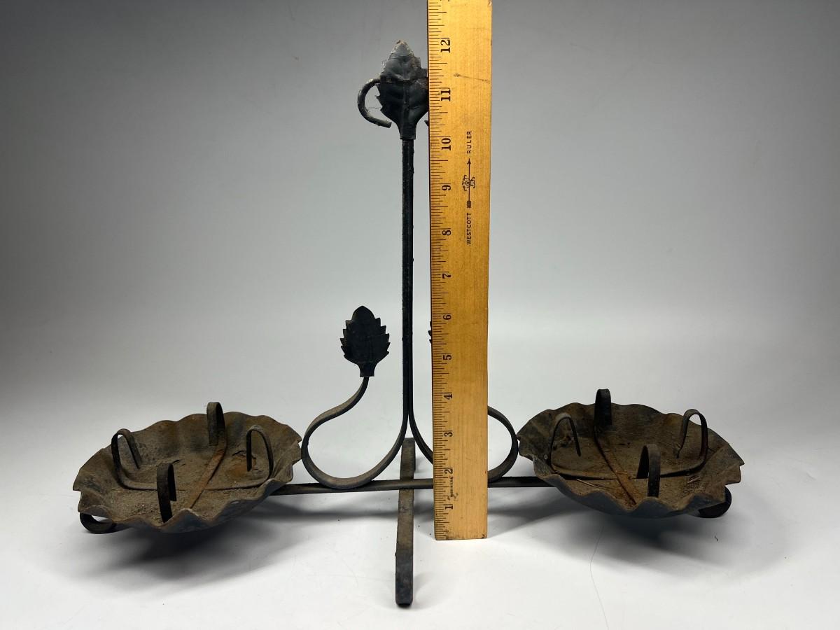 Vintage Metal Iron Gothic Leaf Motif Double Candle Holder