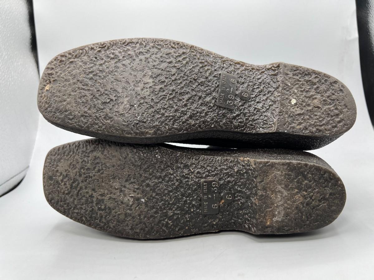 There are signs of use to the shoes, but there is no significant damage and can be worn. Check pictures for size of shoes located at the bottom.