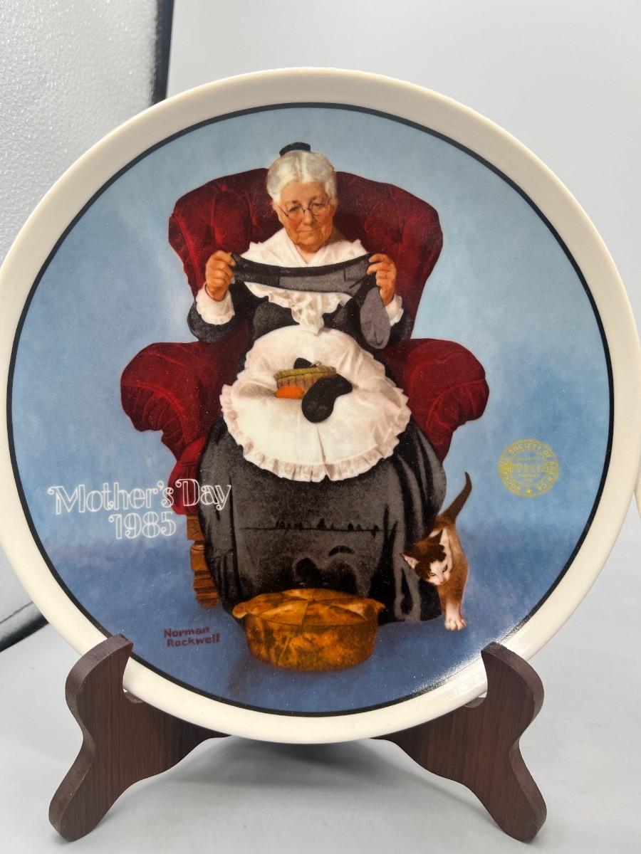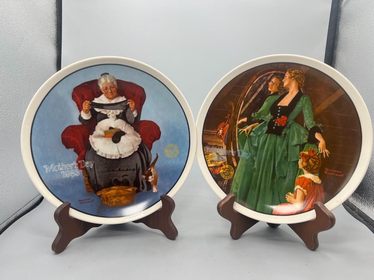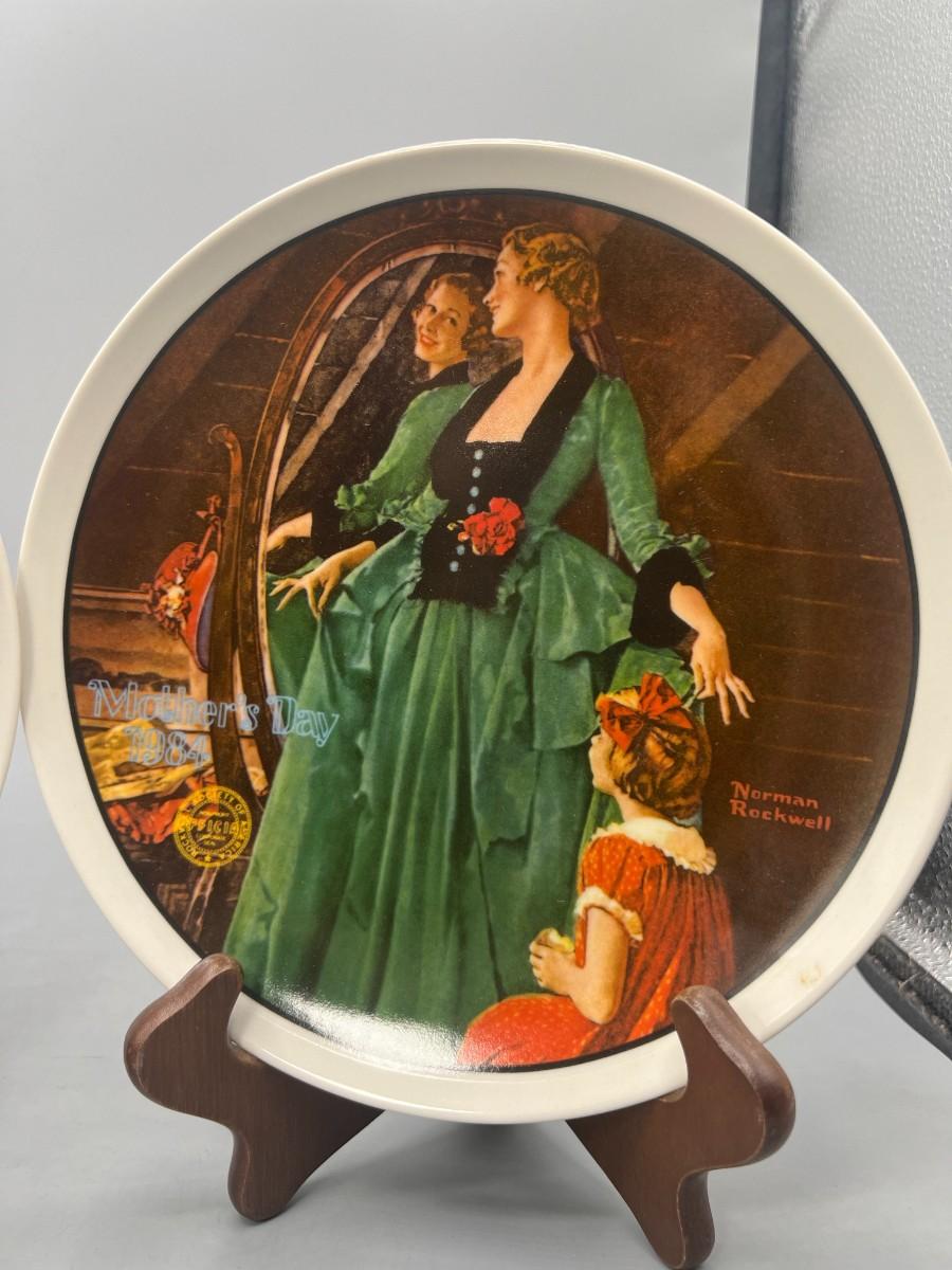 Pair of Mother's Day Norman Rockwell Collectors Plates Grandma's Courting Dress & Mending Time