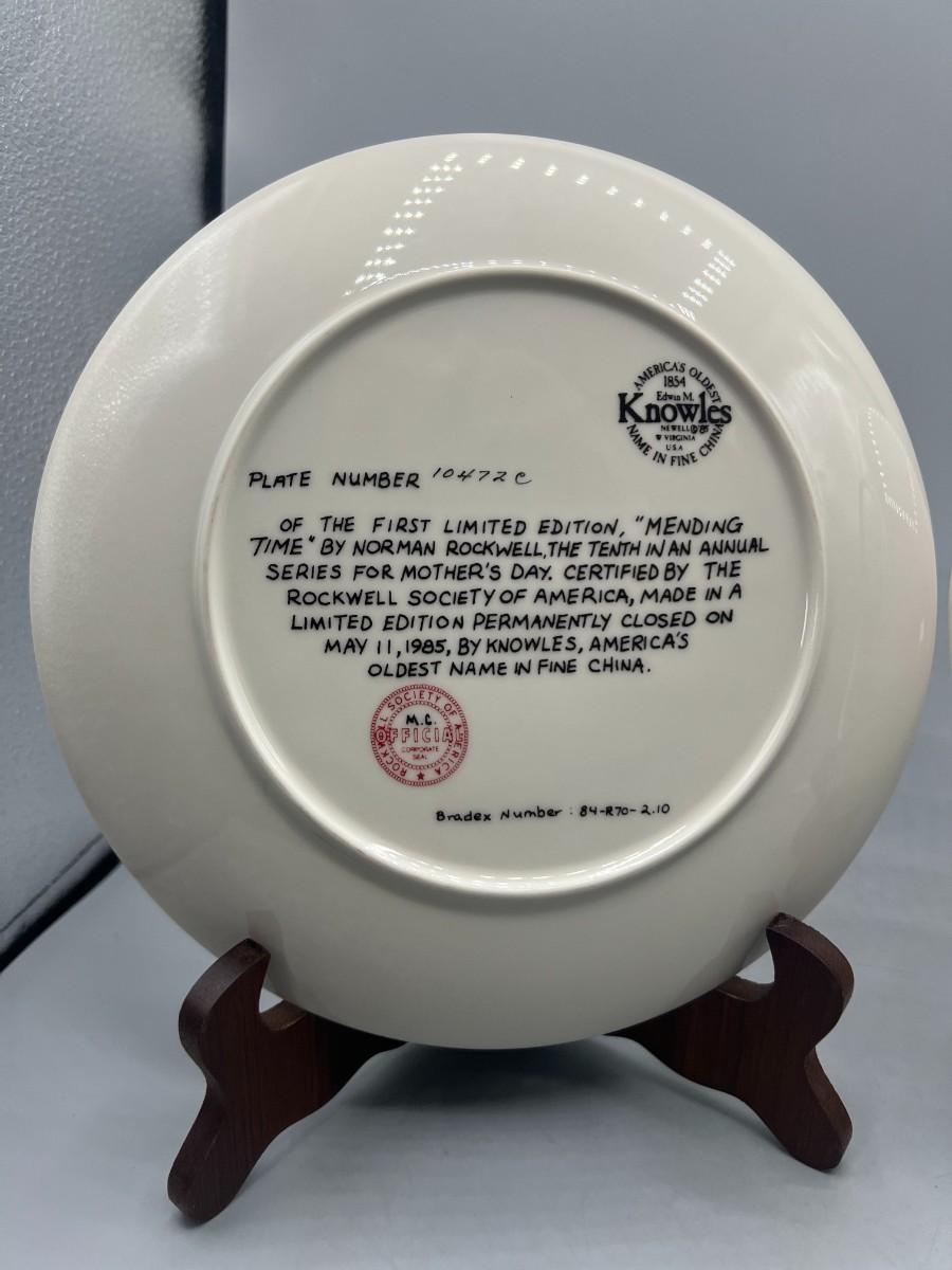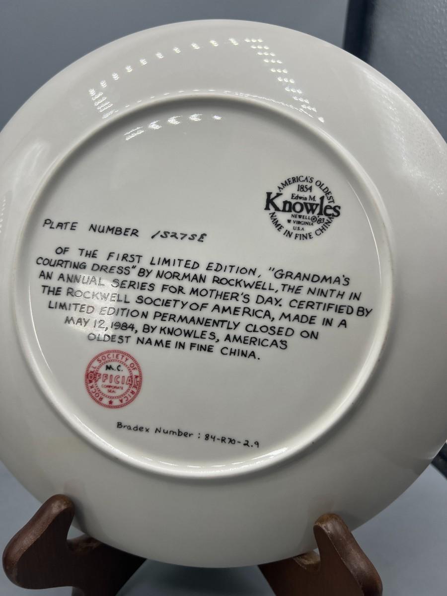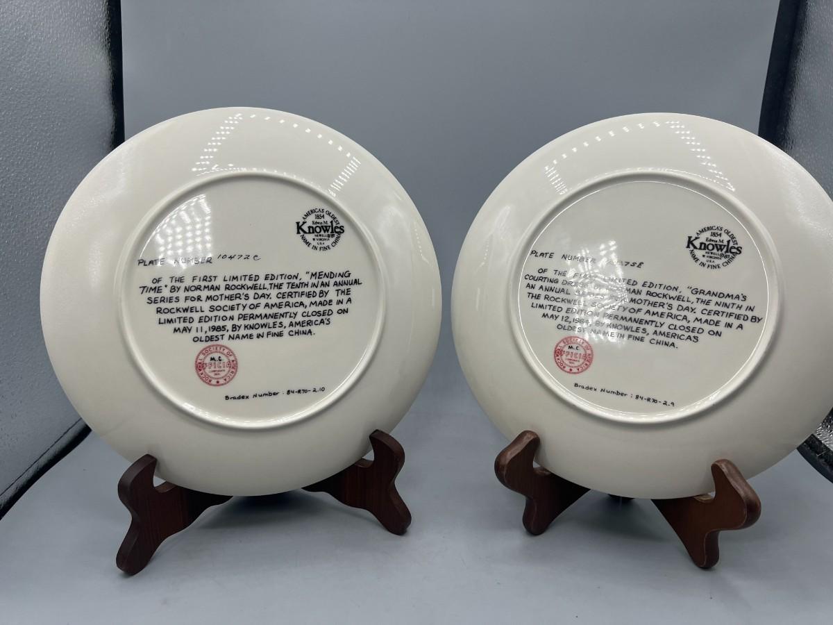 Pair of Mother's Day Norman Rockwell Collectors Plates Grandma's Courting Dress & Mending Time