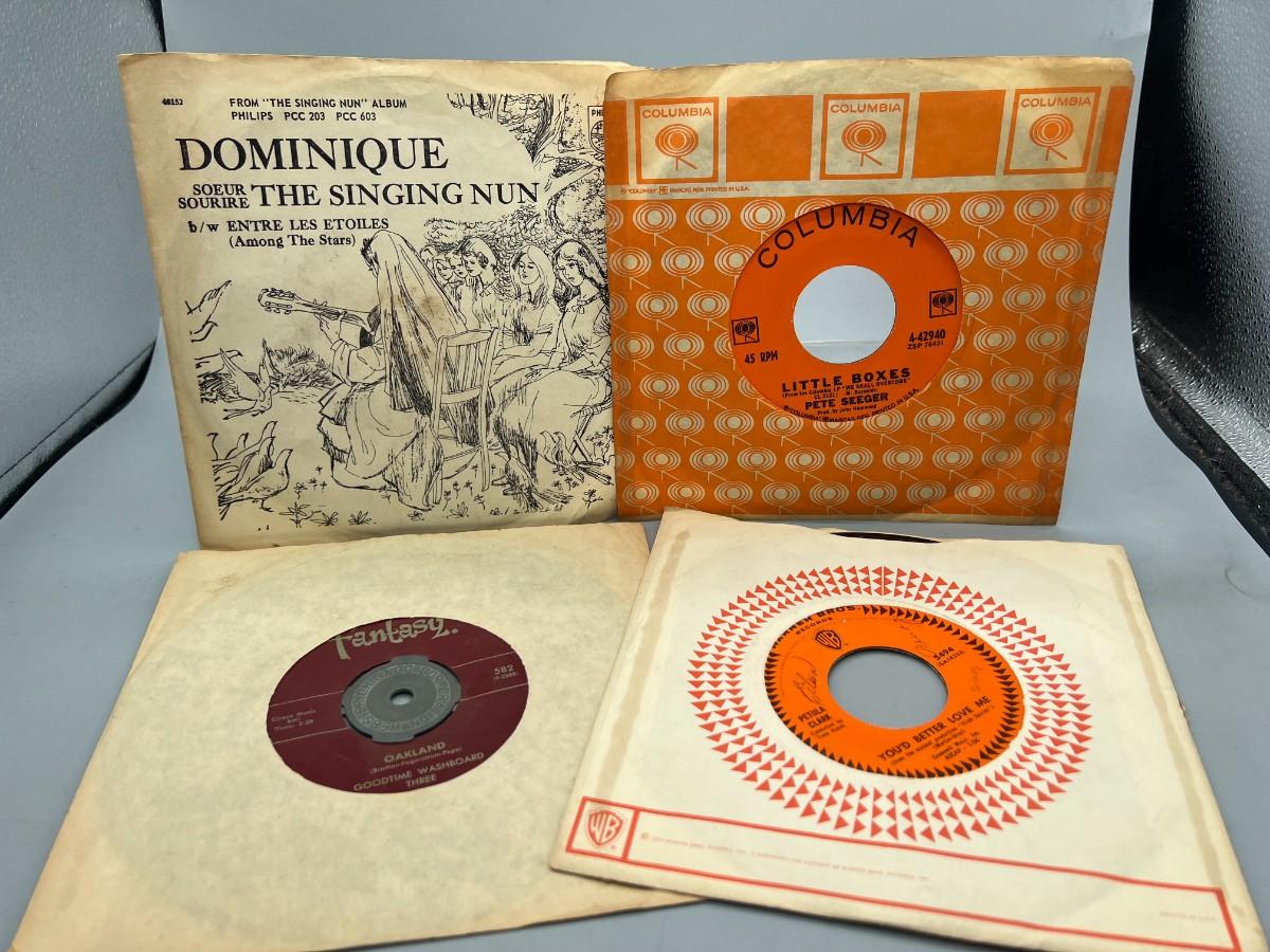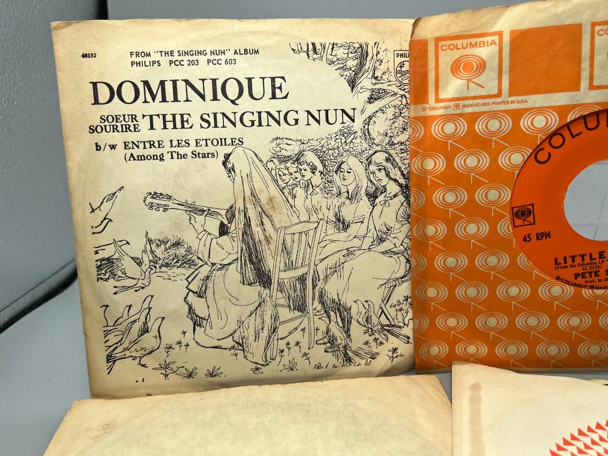 Vintage 45's Vinyl Records The Singing Nun Dominique, Pete Seeger, & More
