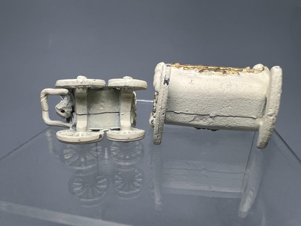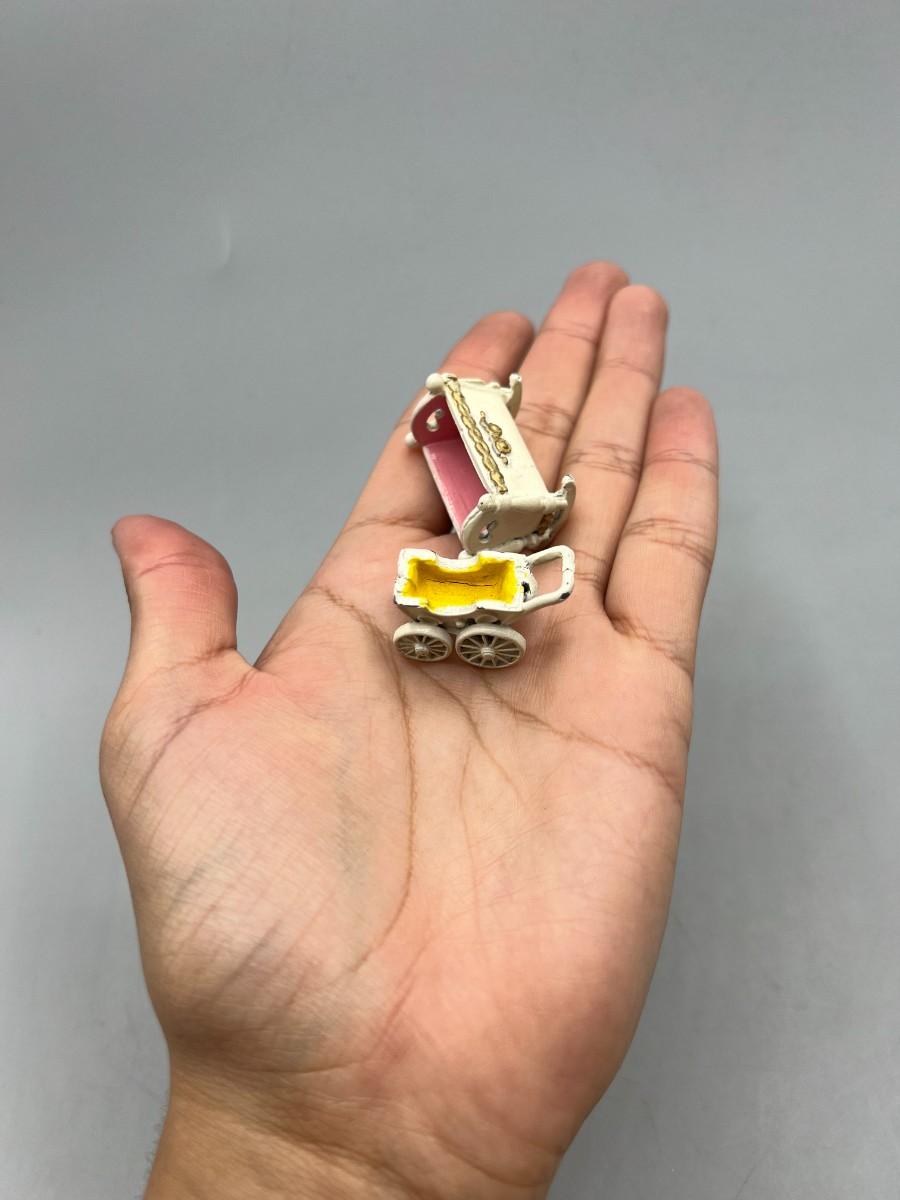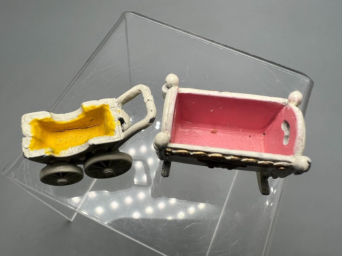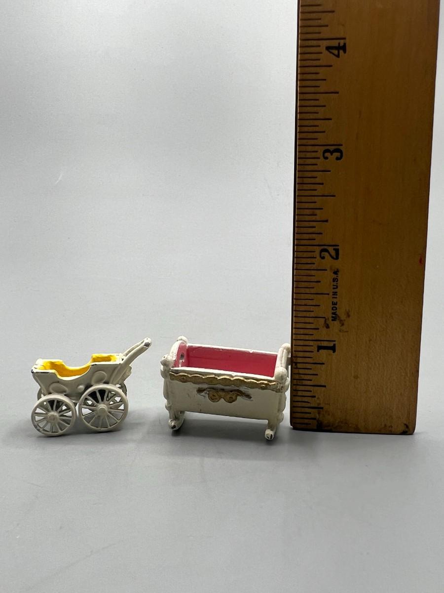Small Vintage Painted Metal Iron Trinket Figurines Baby Carriage & Crib Rocker Dollhouse furniture