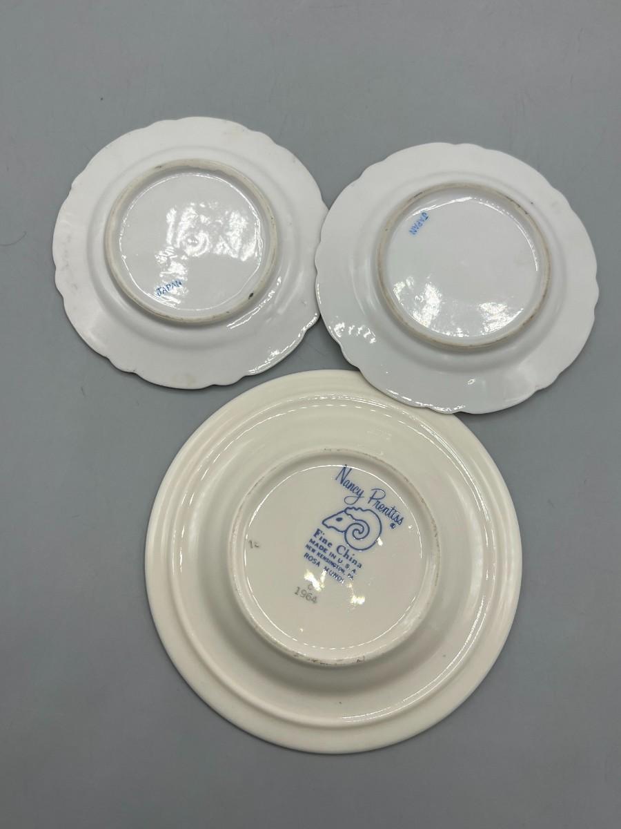 Vintage Pair of Japanese Flower Small Plates & Nancy Prentiss Fine China Rosa Mundi Plate