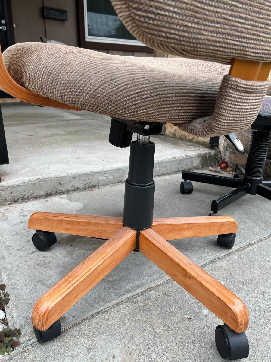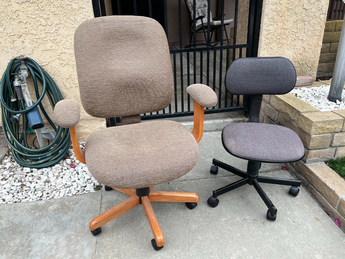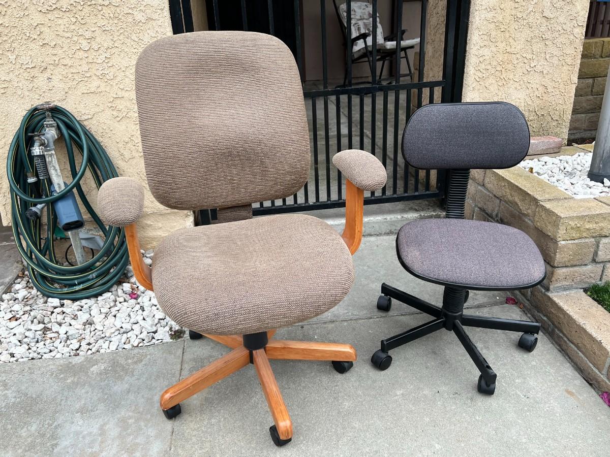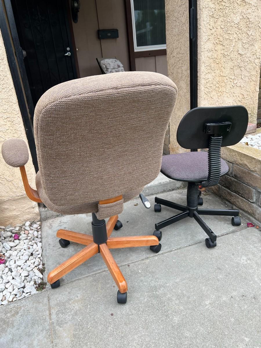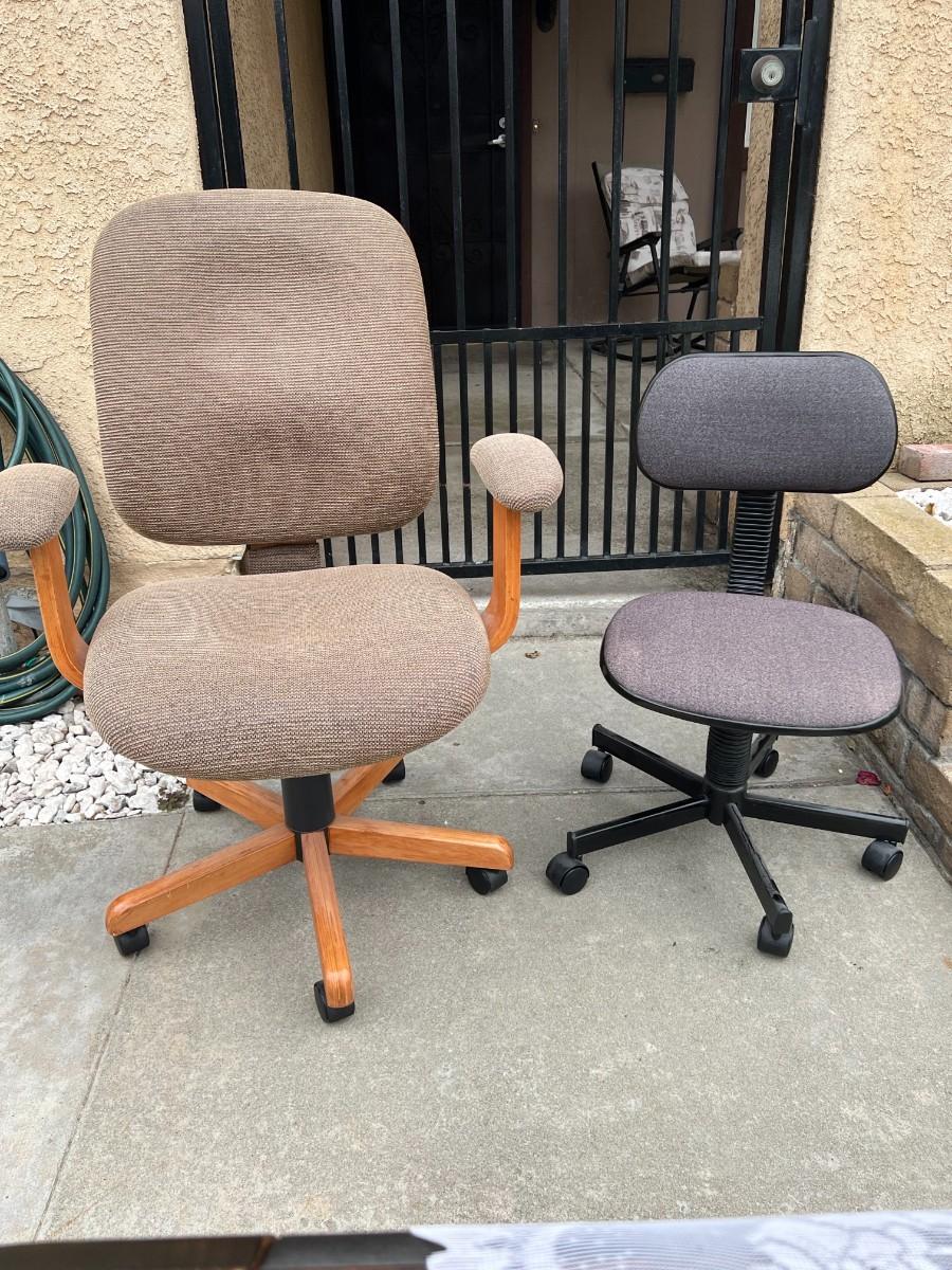 Pair of Cushioned Wheeled Office Desk Chairs. In good previously used condition.