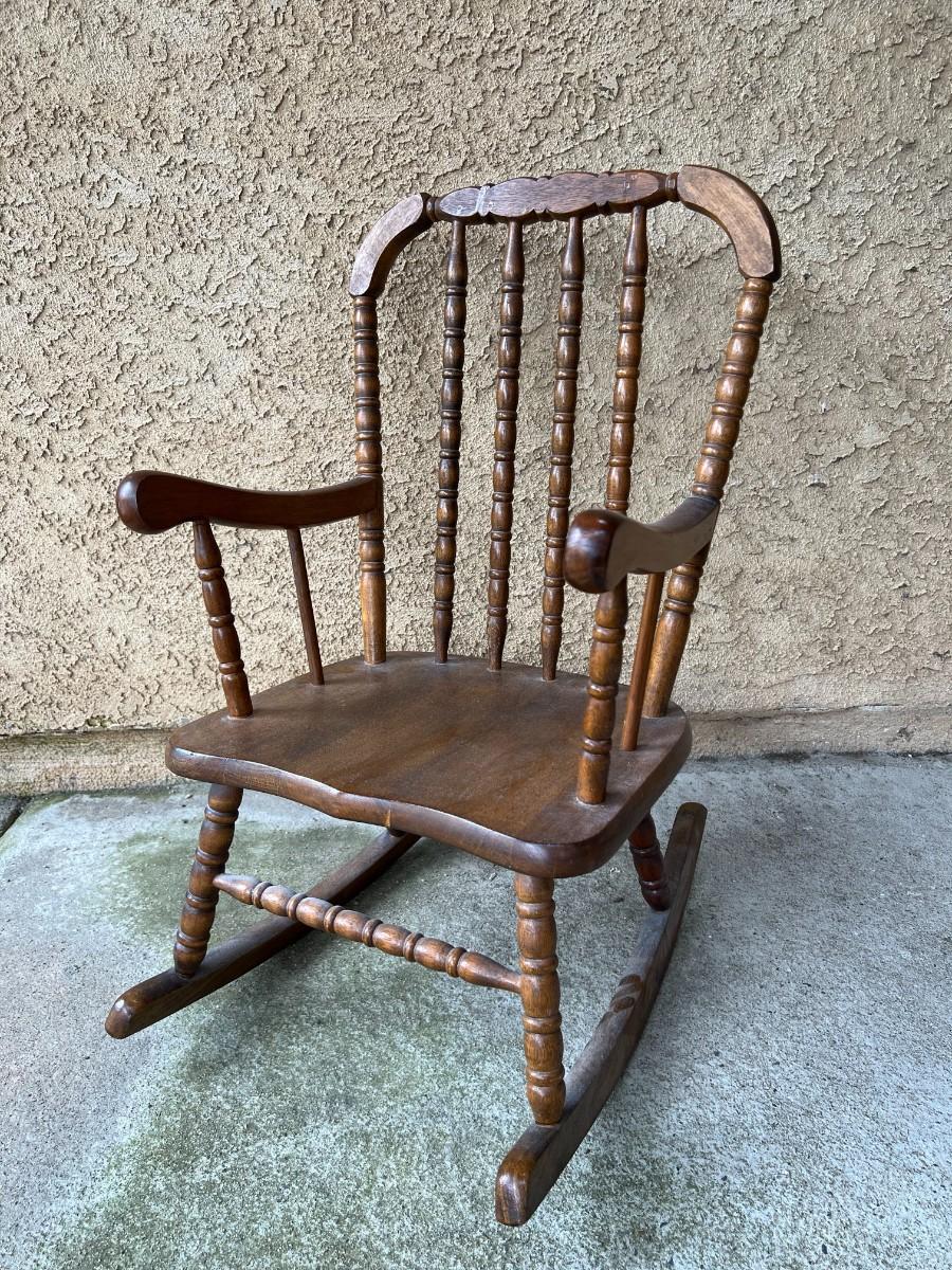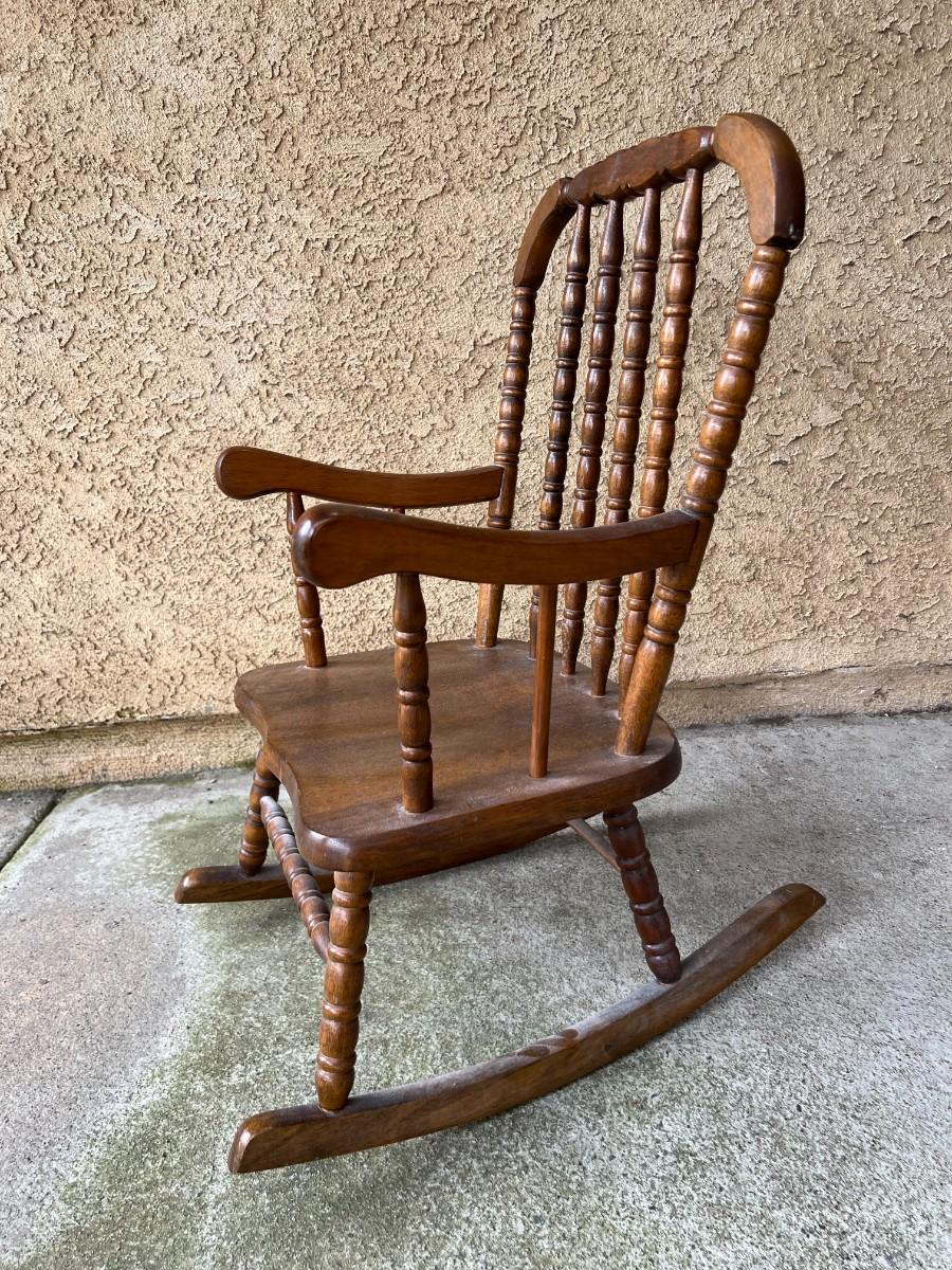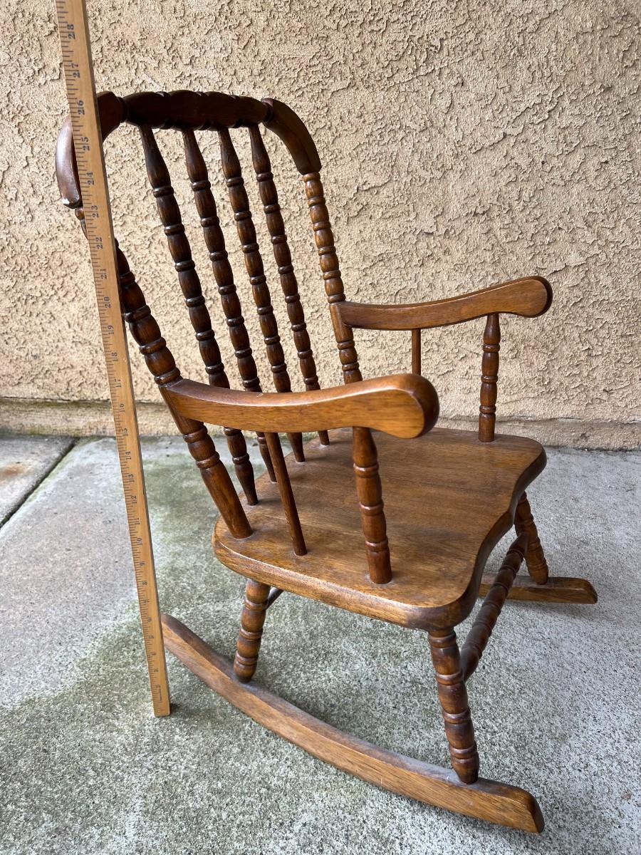 Vintage Spindel Back Wood Child's Sized Rocking Chair. In good vintage condition. Under 27" tall.