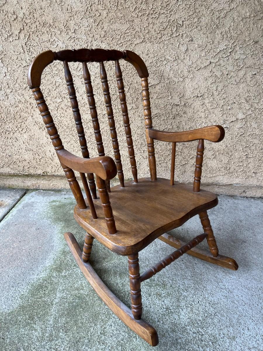 Vintage Spindel Back Wood Child's Sized Rocking Chair