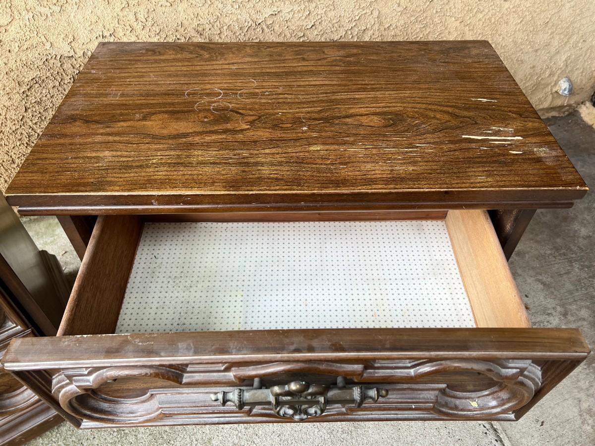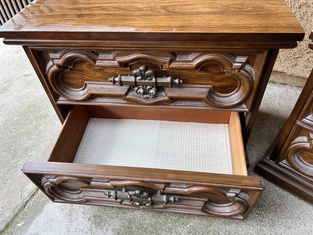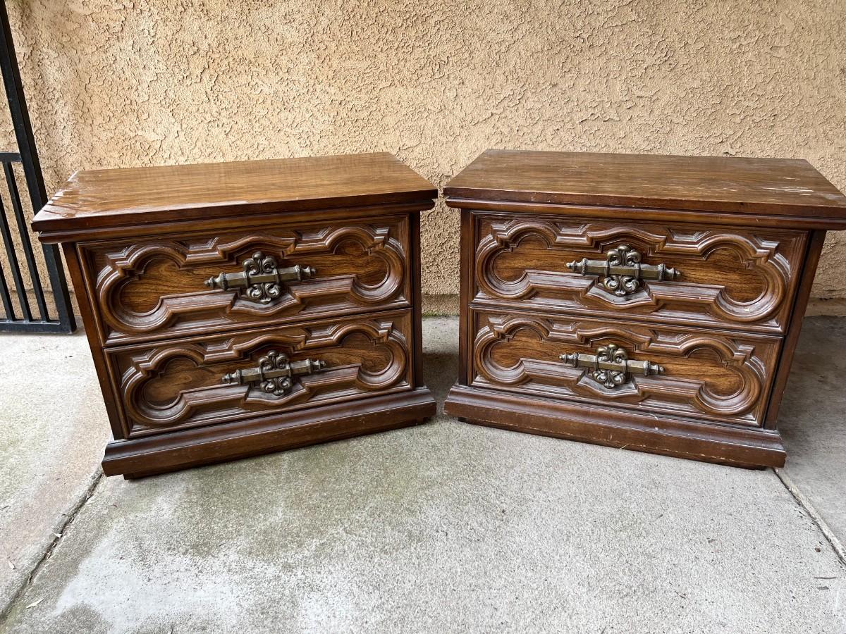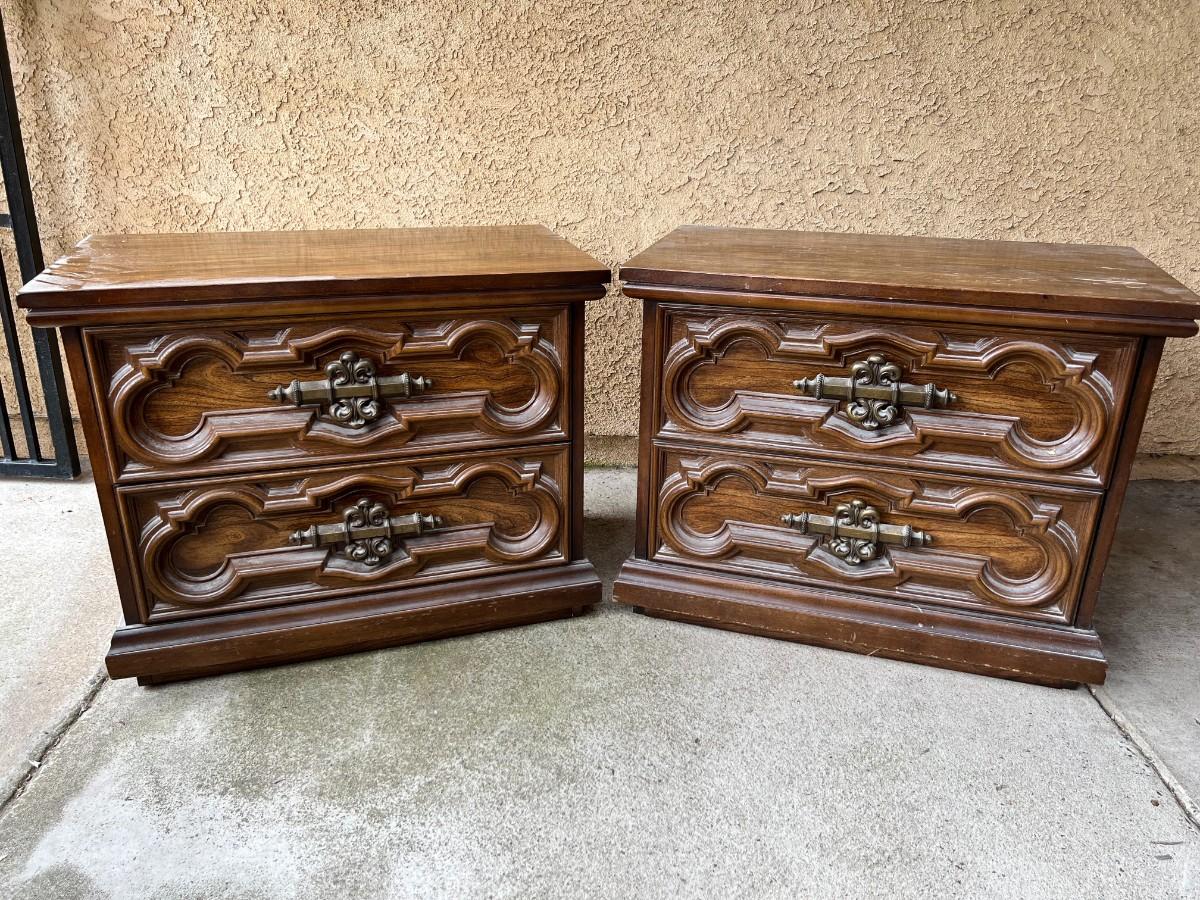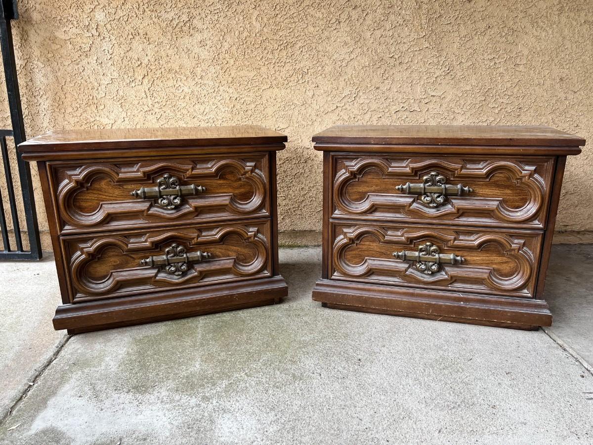 Pair of Darkwood Midcentury Regal Victorian Style Gothic Nightstand Two Drawer Dressers Barwick Furniture