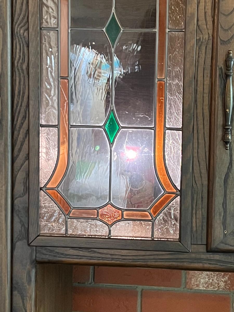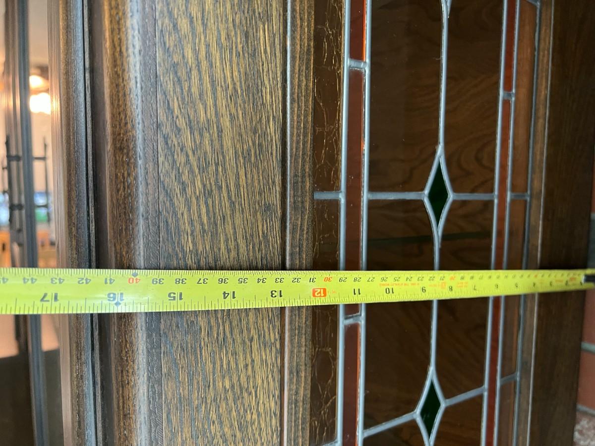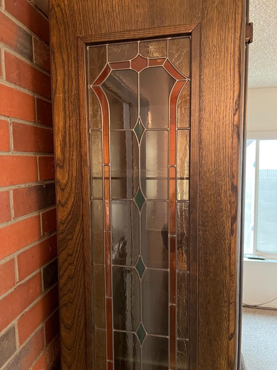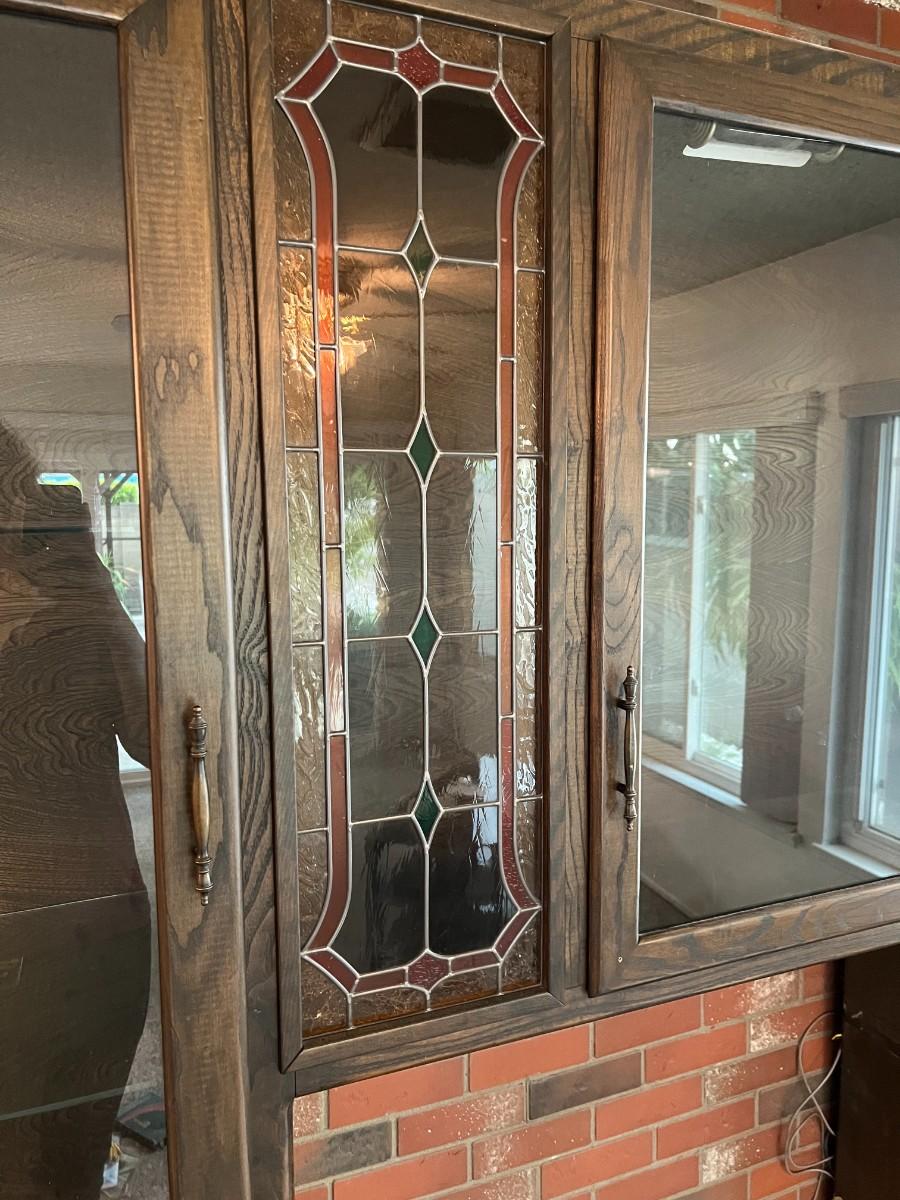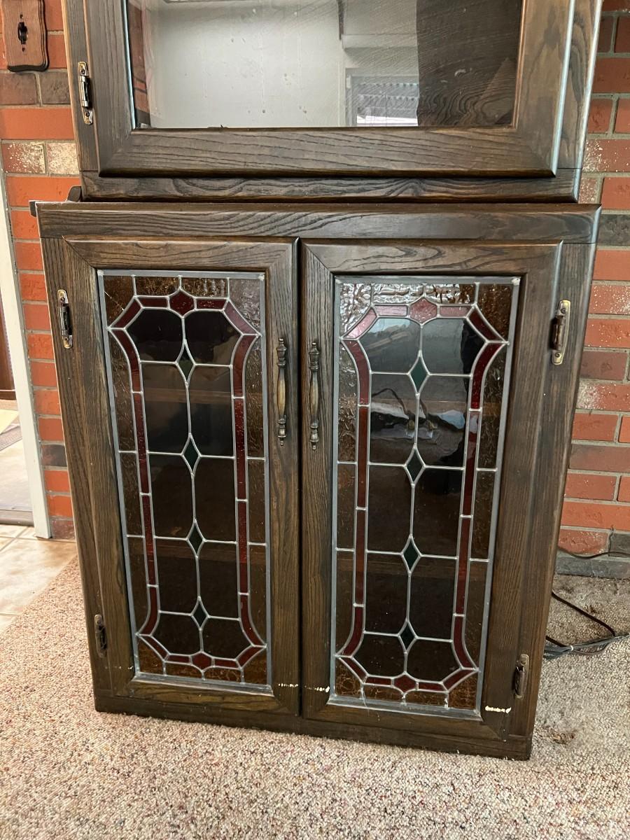 Large Dark Wood Leaded Stained-Glass Door Panels Lit Entertainment Display Cabinet