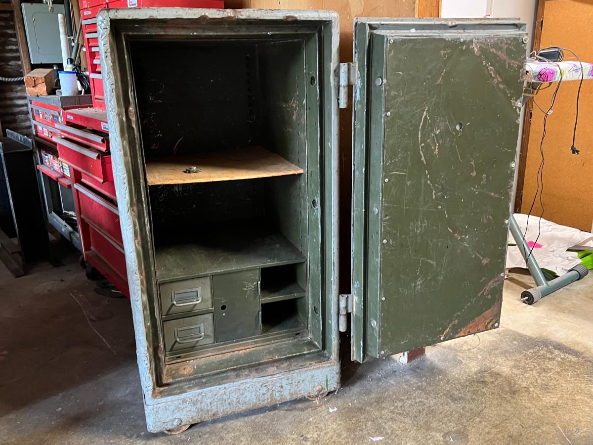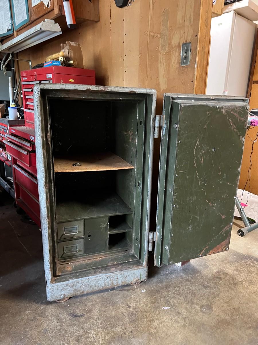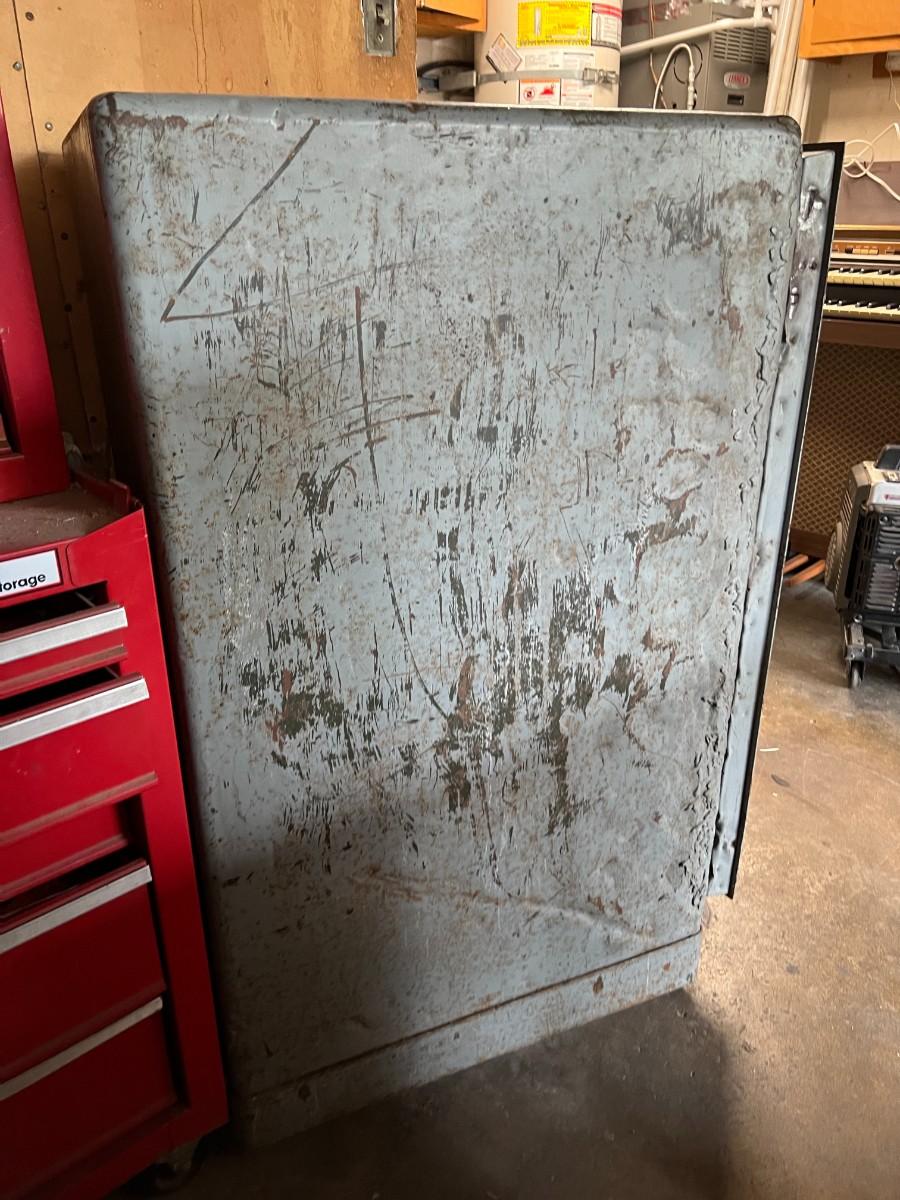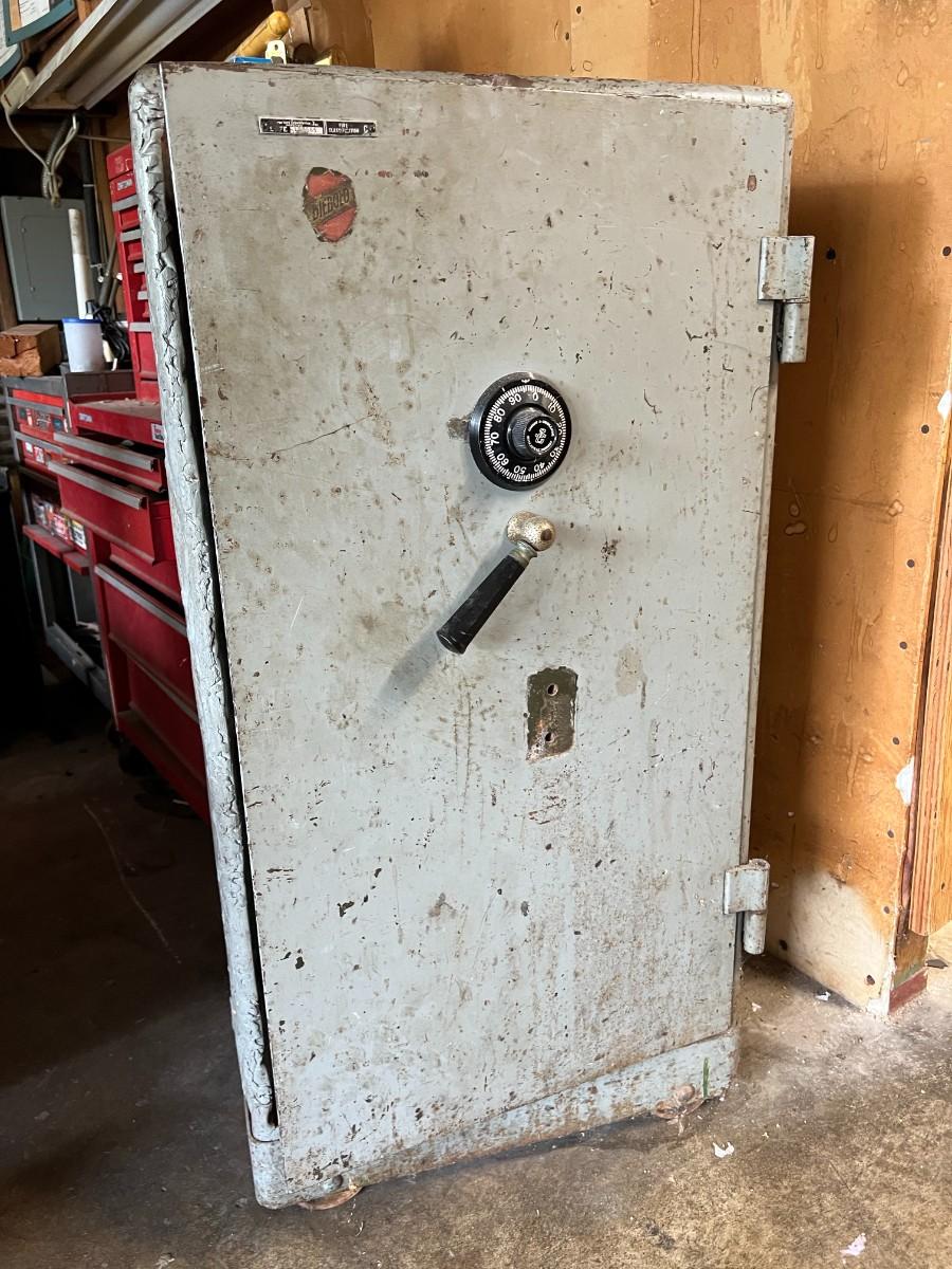 Large Vintage Antique Diabold Standing Safe Fire Rated C. In used condition. Has been stored/used in garage. About 41" tall.