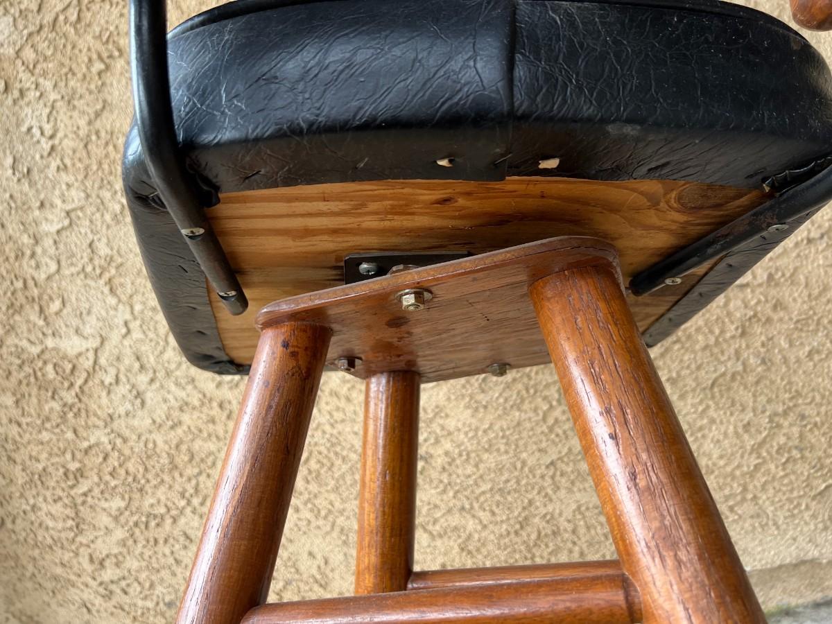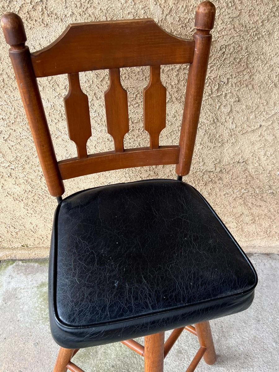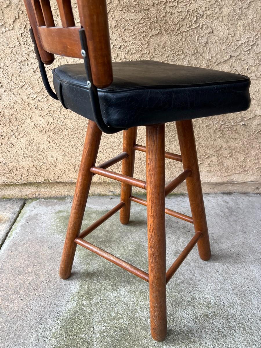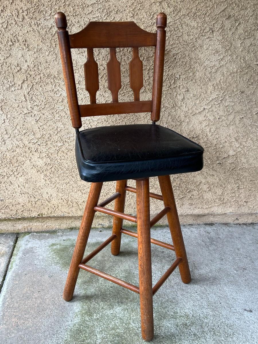 Vintage Wood Swivel Barstool with Cushioned Seat. In good condition.
