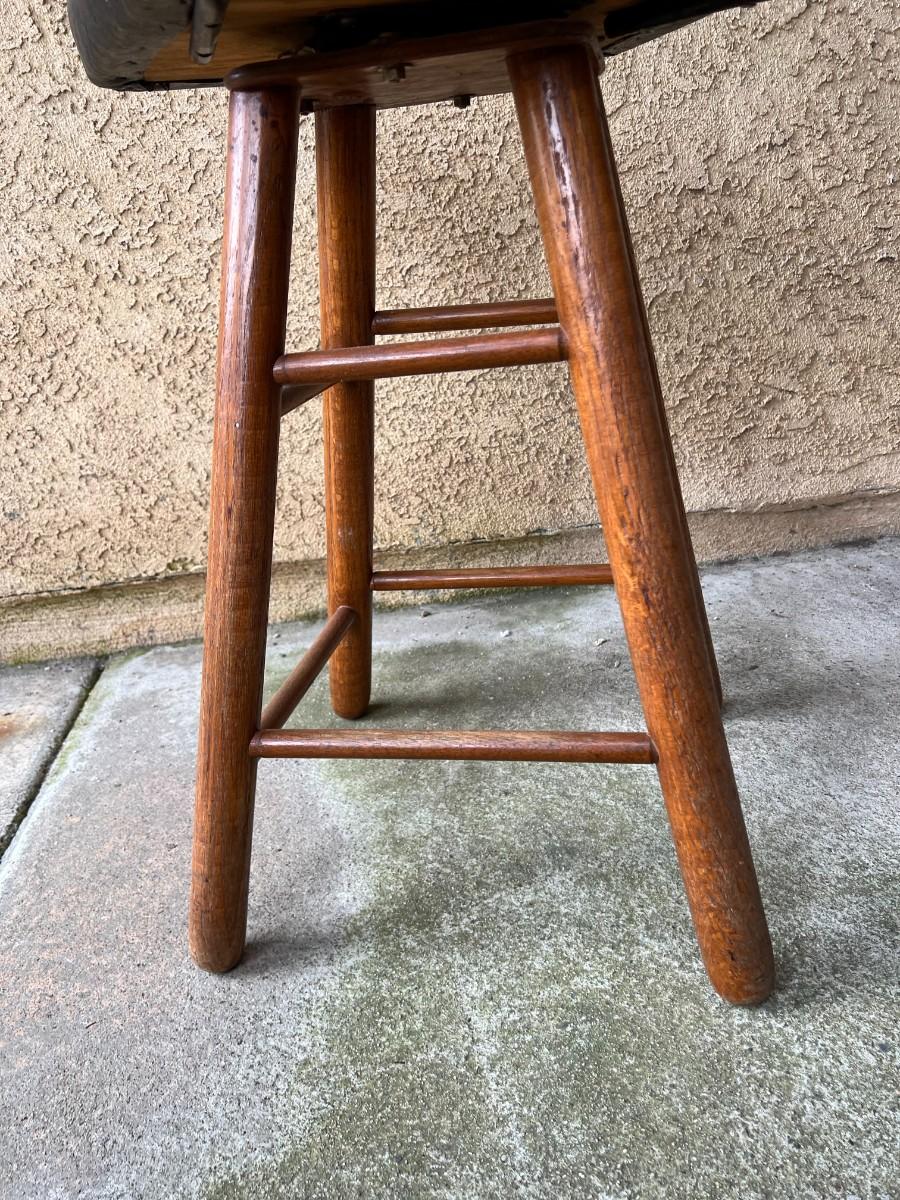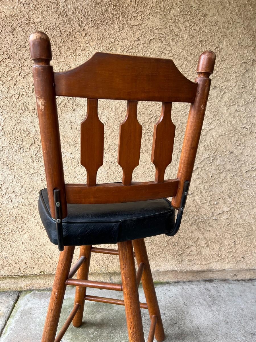 Vintage Wood Swivel Barstool with Cushioned Seat